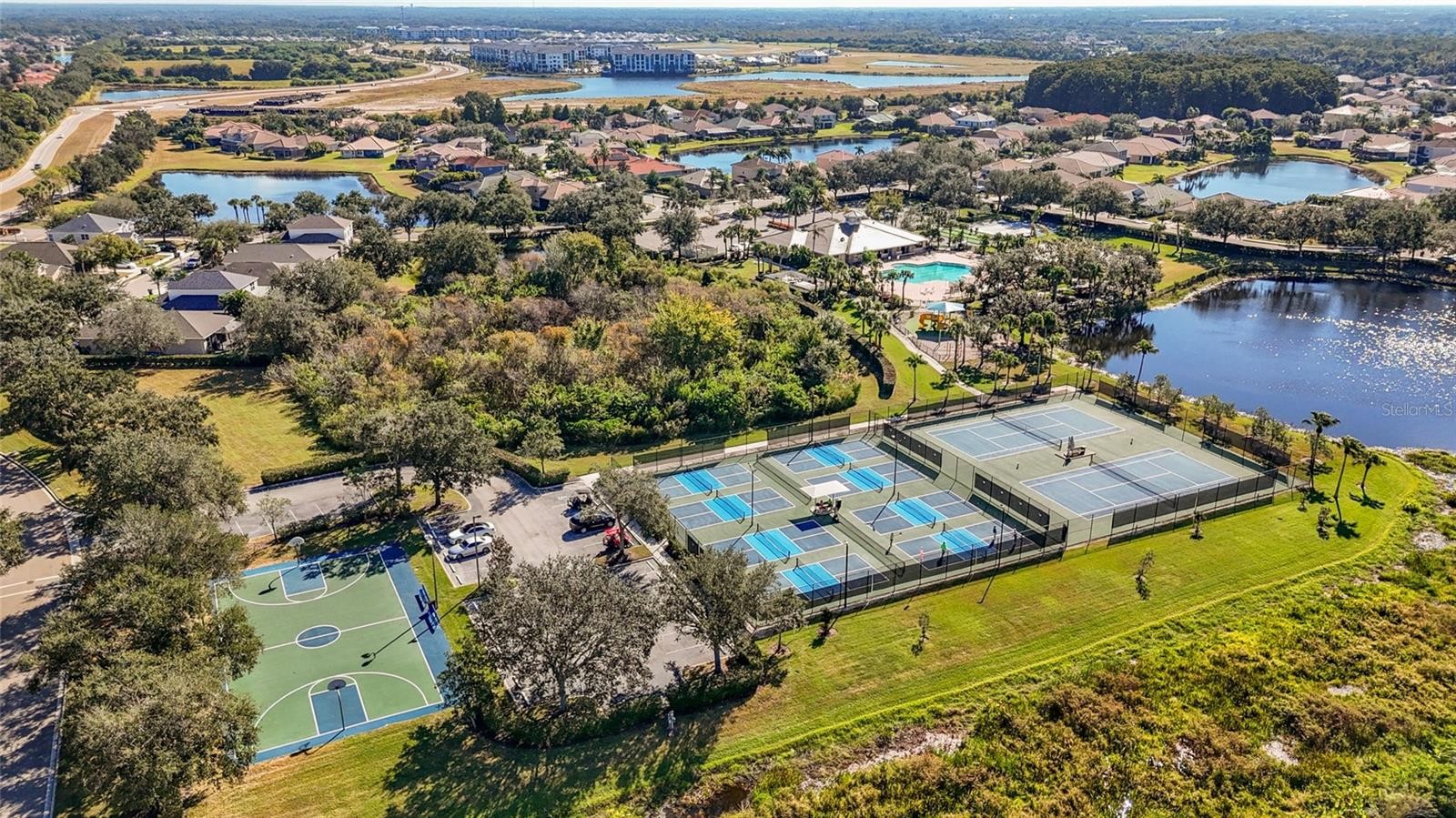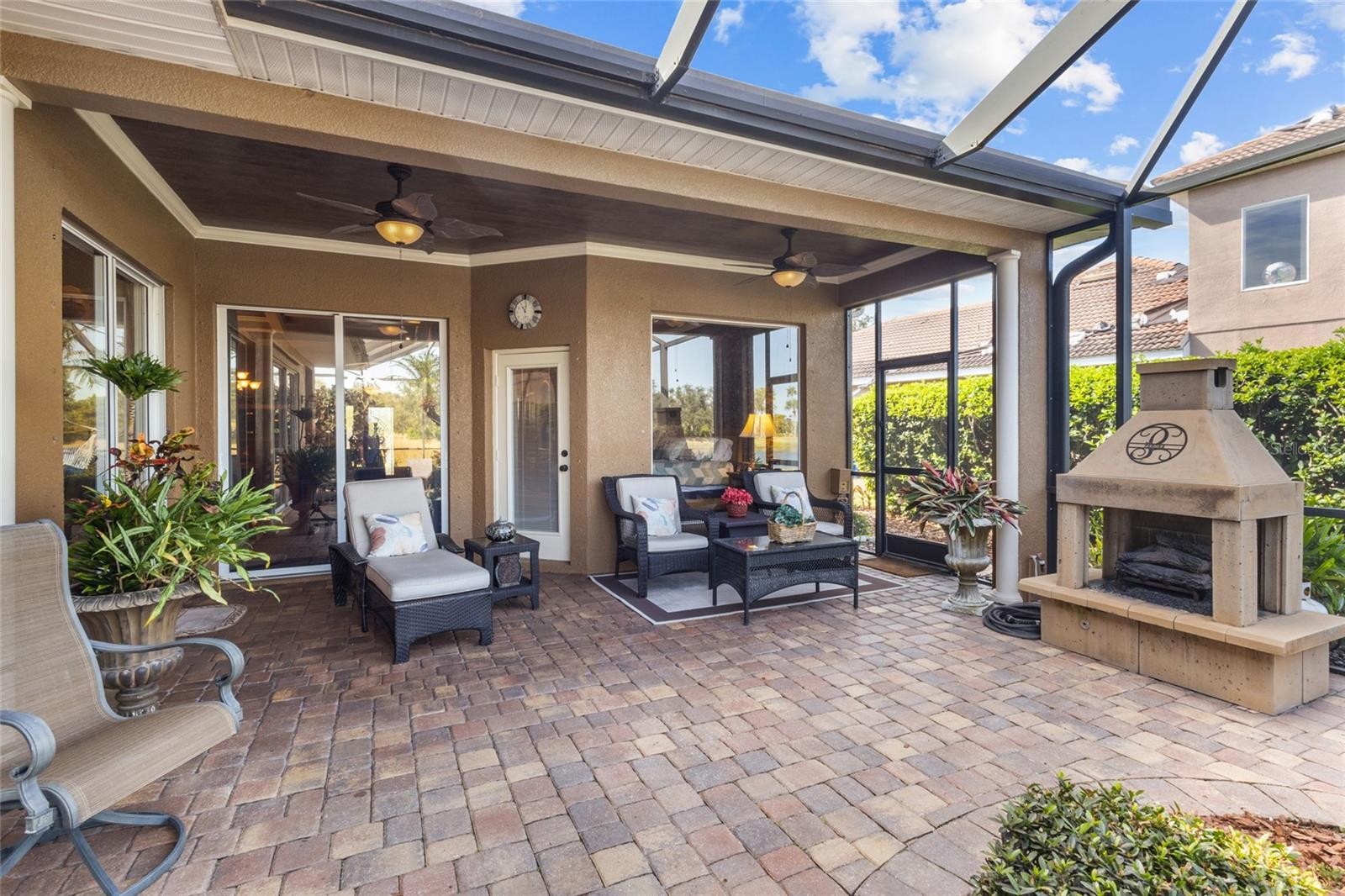 Enjoy the charm of this Italian villa–inspired, beautifully maintained home in the desirable gated community of Stoneybrook at Heritage Harbour. Perfectly situated on a lakefront lot, this home offers serene water views from both the family room and the primary suite. This immaculate 4-bedroom, 3-bath residence features a tiled roof, spacious living and dining areas, a separate family room, and a 3-car garage. Elegant touches include crown molding throughout, beautiful decorative stone accent walls add texture and elegance to the interior. Custom closets, wood tray ceilings, and tile flooring. The gourmet kitchen boasts granite countertops, newer stainless steel appliances, and plenty of workspace—ideal for the home chef. The large primary suite offers his-and-hers closets, and the luxurious bath features dual sinks, a soaking tub, and a walk-in shower. Three additional bedrooms and two full baths provide comfort and space for family or guests. Step outside to the custom pavered lanai with a gas fireplace, a charming water fountain adds a soothing, spa-like ambiance, to the covered outdoor kitchen with granite counters—perfect for entertaining or relaxing. The three-car garage provides ample room for vehicles, storage, or even a golf cart. Recently painted inside and out, this home is truly move-in ready. Residents of Stoneybrook enjoy resort-style amenities including a recreation center with fitness facility, community pool and spa, tennis courts, dog park, playground, basketball and volleyball courts, inline skating rink, walking and biking trails, and the Cal Ripken baseball complex. The community also features an 18-hole golf course and clubhouse with restaurant—golf membership is optional.