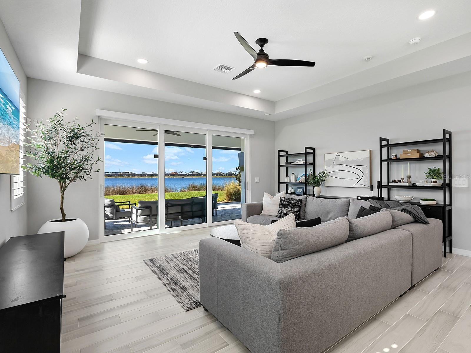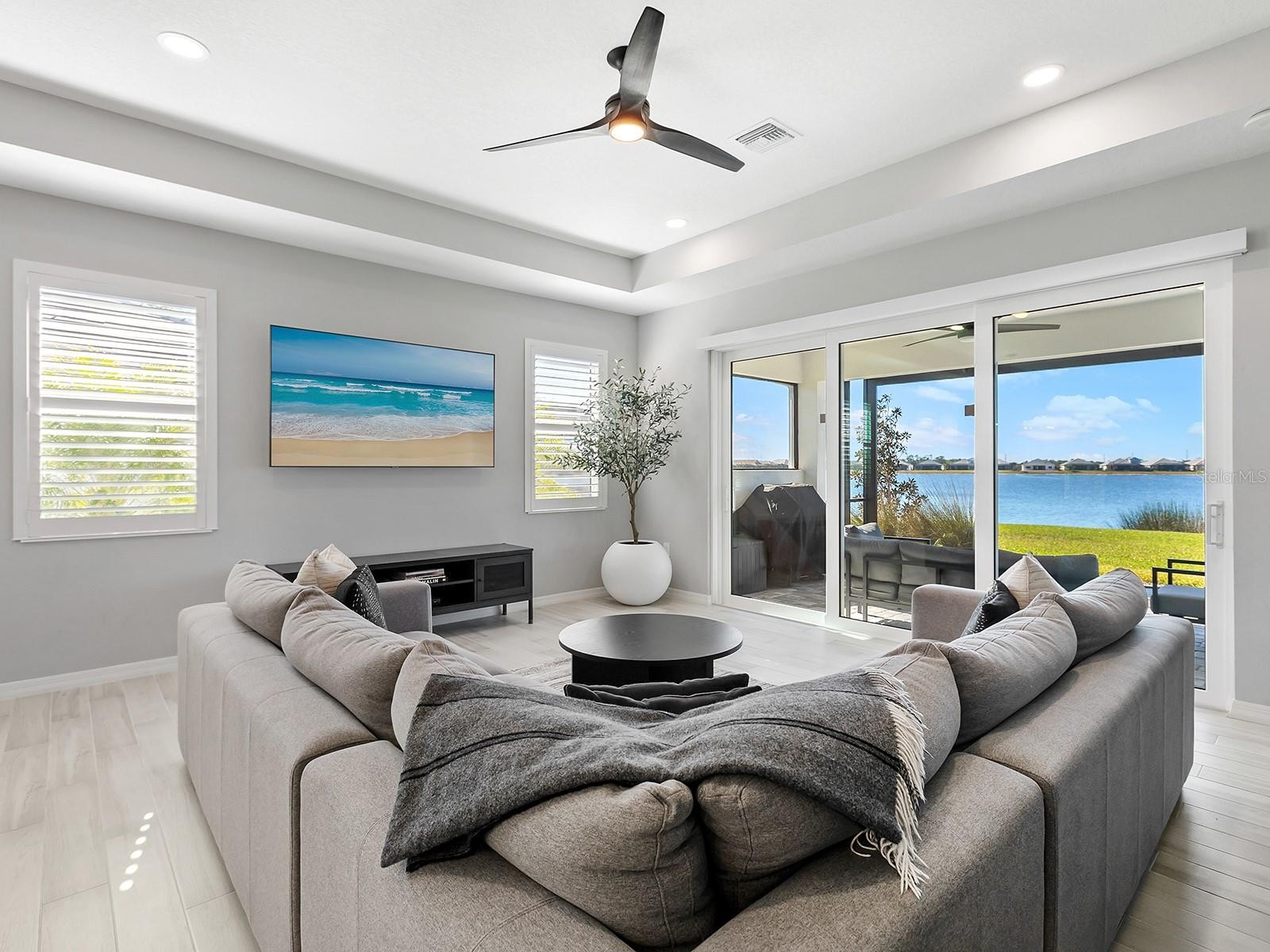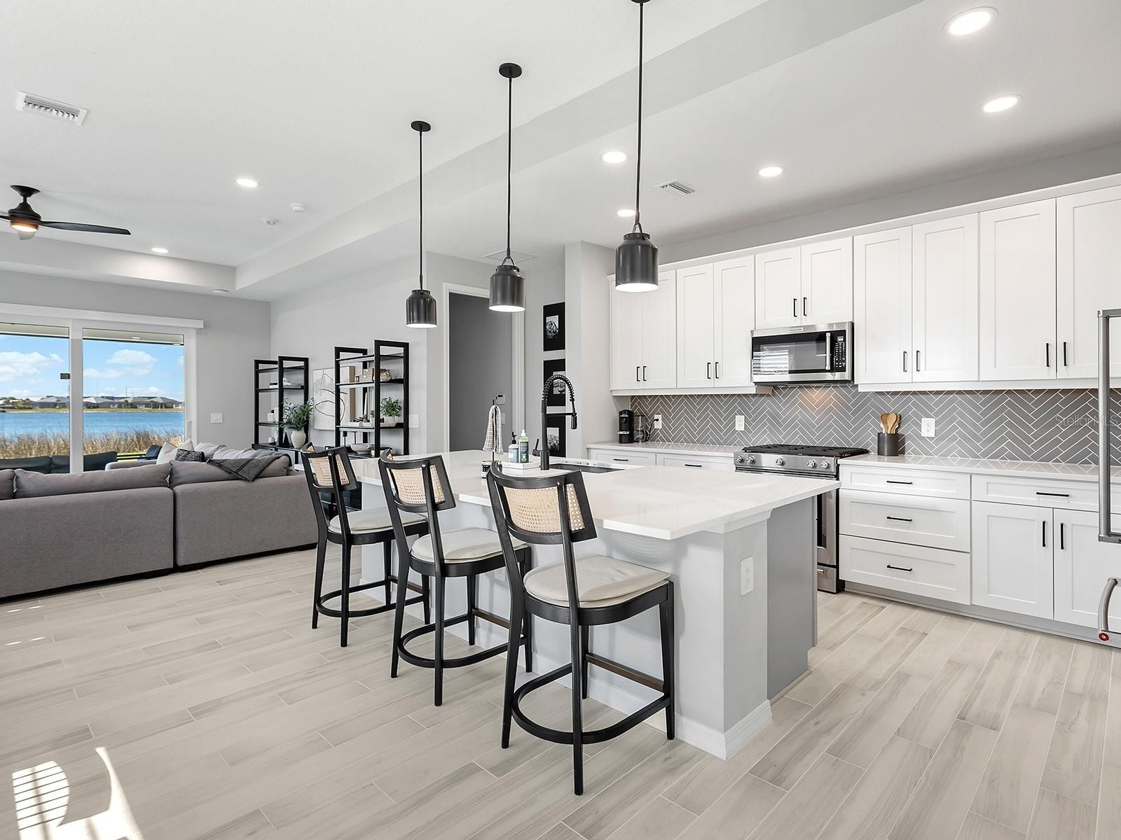 Experience elevated waterfront living in Lakehouse Cove at Waterside, one of the sought-after luxury enclaves in Lakewood Ranch. Positioned on a private southwest-facing lake-view lot along Lake Ibis, this exceptional coastal-contemporary residence captures sweeping water views and breathtaking sunsets in a serene natural setting. Completed in 2023 by Homes by Towne, the popular Skiff floor plan offers 2,157 square feet of thoughtfully designed living space with an open-concept layout that seamlessly connects elegant interiors to stunning outdoor scenery. The home features three bedrooms, two full baths, a dedicated den/office with custom doors, and expansive living areas ideal for comfort and entertaining. Refined craftsmanship and upscale finishes shine throughout. Impact windows, sliders, and doors provide peace of mind and energy efficiency, while tray ceilings, plantation shutters, custom upgrades and a hard-wired security system reflect exceptional attention to detail. The beautifully appointed kitchen anchors the home with quartz countertops, soft-close cabinetry, an oversized island with seating, a herringbone backsplash, and premium KitchenAid stainless steel appliances. A built-in dining banquette with shiplap detailing adds charm and hidden storage. The spacious great room opens to an extended screened lanai where panoramic lake and wildlife views create a setting for morning coffee or evening cocktails. An outdoor kitchen rough-in offers future entertaining potential. The owner’s suite is a tranquil waterfront retreat with lake views, a generous walk-in closet, and a spa-inspired bath featuring dual quartz vanities and a floor-to-ceiling tiled walk-in shower. Two additional bedrooms provide comfort and ample closet space, while the secondary bath mirrors the home’s elevated style. The laundry room includes custom cabinetry and a utility sink, and the two-car garage offers abundant storage. Lakehouse Cove residents enjoy a resort-style pool and spa, fitness center, clubhouse, kayak launches, pickleball courts, dog parks and a vibrant social calendar. Nearby Waterside Place offers lakefront dining, shopping, farmers markets and outdoor concerts. Lakewood Ranch Main Street, UTC Mall, Sarasota’s arts and dining, and Gulf Coast beaches including Siesta Key, Lido Beach, and Anna Maria Island are all within easy reach, along with Sarasota-Bradenton International Airport. More than a home, this is a lifestyle defined by waterfront beauty, modern luxury and convenience. Sellers are open to a sale-leaseback through September 2026. Schedule your private tour today.