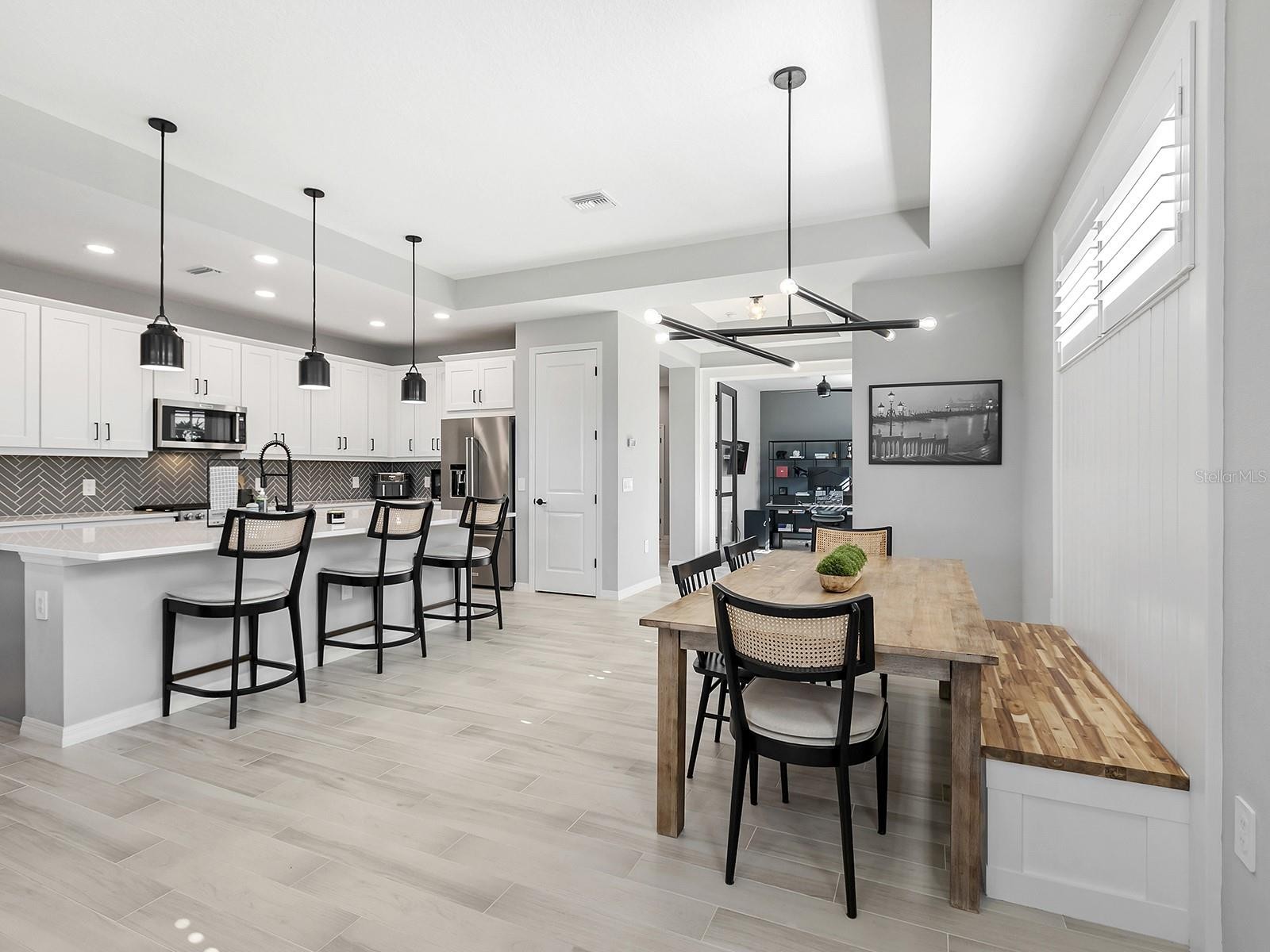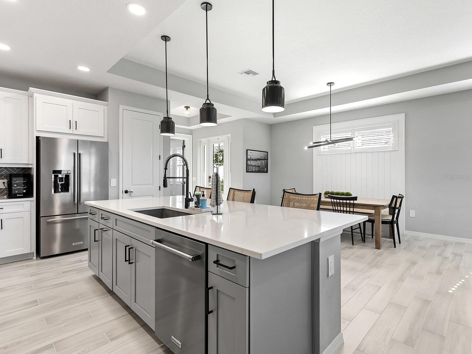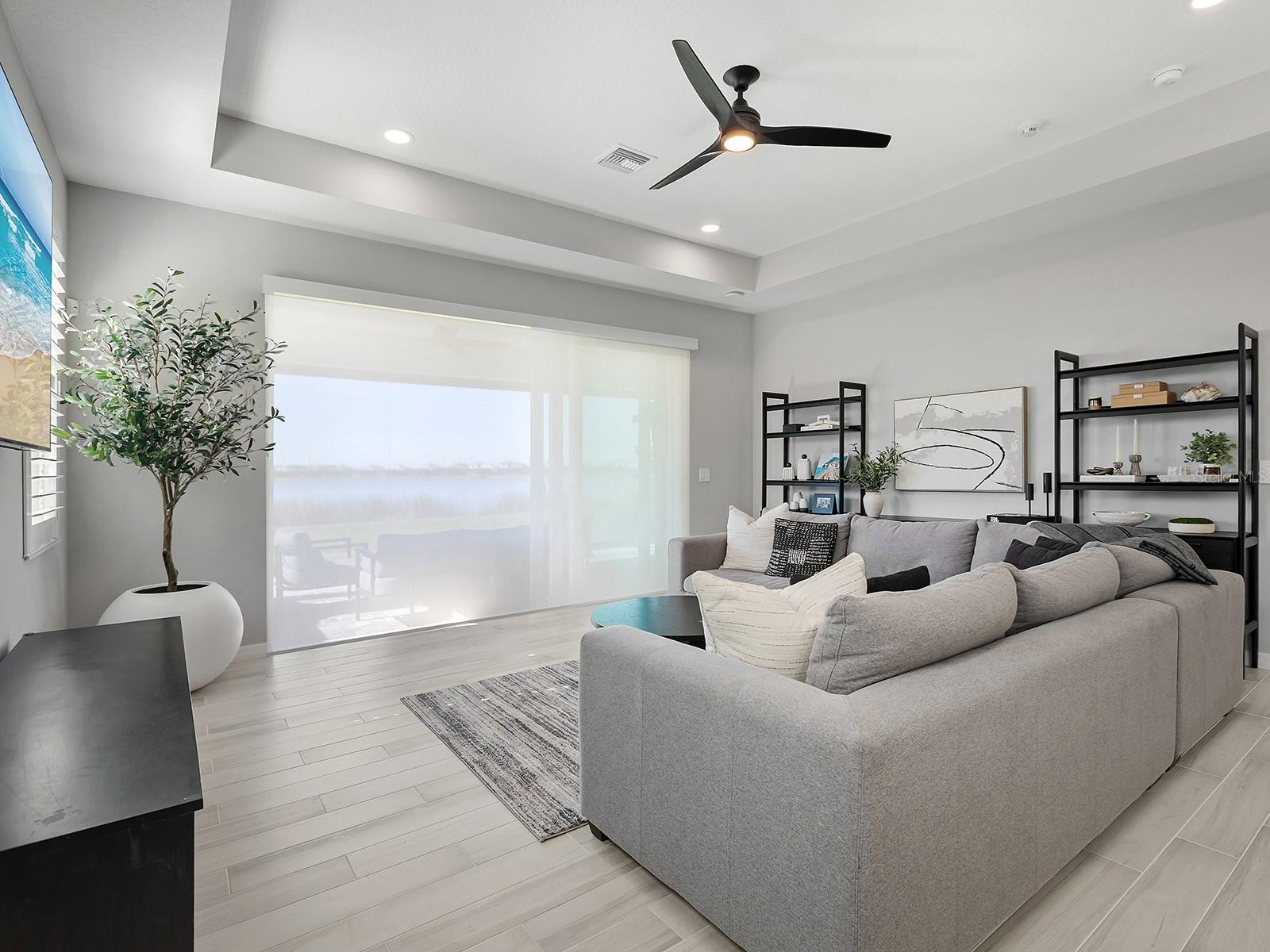 Experience elevated waterfront living in Lakehouse Cove at Waterside, one of the sought-after luxury enclaves in Lakewood Ranch. Positioned on a private southwest-facing lake-view lot along Lake Ibis, this exceptional coastal-contemporary residence captures sweeping water views and breathtaking sunsets in a serene natural setting. Completed in 2023 by Homes by Towne, the popular Skiff floor plan offers 2,157 square feet of thoughtfully designed living space with an open-concept layout that seamlessly connects elegant interiors to stunning outdoor scenery. The home features three bedrooms, two full baths, a dedicated den/office with custom doors, and expansive living areas ideal for comfort and entertaining. Refined craftsmanship and upscale finishes shine throughout. Impact windows, sliders, and doors provide peace of mind and energy efficiency, while tray ceilings, plantation shutters, custom upgrades and a hard-wired security system reflect exceptional attention to detail. The beautifully appointed kitchen anchors the home with quartz countertops, soft-close cabinetry, an oversized island with seating, a herringbone backsplash, and premium KitchenAid stainless steel appliances. A built-in dining banquette with shiplap detailing adds charm and hidden storage. The spacious great room opens to an extended screened lanai where panoramic lake and wildlife views create a setting for morning coffee or evening cocktails. An outdoor kitchen rough-in offers future entertaining potential. The owner’s suite is a tranquil waterfront retreat with lake views, a generous walk-in closet, and a spa-inspired bath featuring dual quartz vanities and a floor-to-ceiling tiled walk-in shower. Two additional bedrooms provide comfort and ample closet space, while the secondary bath mirrors the home’s elevated style. The laundry room includes custom cabinetry and a utility sink, and the two-car garage offers abundant storage. Lakehouse Cove residents enjoy a resort-style pool and spa, fitness center, clubhouse, kayak launches, pickleball courts, dog parks and a vibrant social calendar. Nearby Waterside Place offers lakefront dining, shopping, farmers markets and outdoor concerts. Lakewood Ranch Main Street, UTC Mall, Sarasota’s arts and dining, and Gulf Coast beaches including Siesta Key, Lido Beach, and Anna Maria Island are all within easy reach, along with Sarasota-Bradenton International Airport. More than a home, this is a lifestyle defined by waterfront beauty, modern luxury and convenience. Sellers are open to a sale-leaseback through September 2026. Schedule your private tour today.
