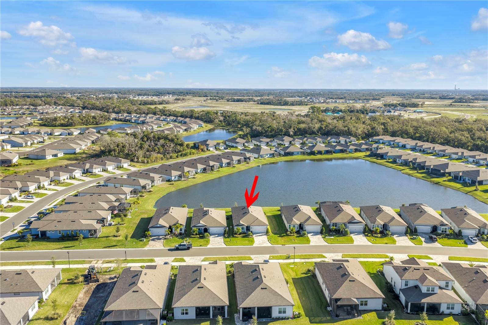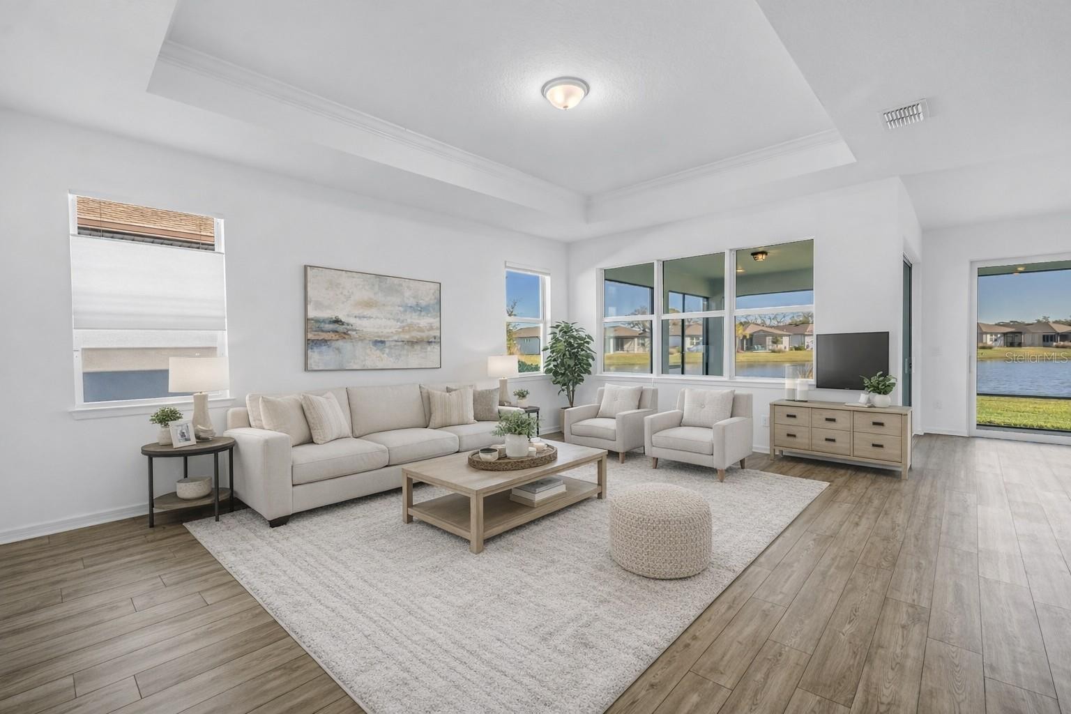 One or more photo(s) has been virtually staged. SELLER OFFERING $5,000.00 to BUYER at CLOSING!! CHANCE TO OWN BEAUTIFUL POND VIEW!!!! Unbelievable opportunity in the highly desirable Del Webb BayView 55+ community, offering active-adult resort living just minutes from beaches, shopping, and major roadways. This beautifully designed 2-bedroom, 2-bath home with a dedicated office/den features an open floorplan with abundant natural light, expansive gathering spaces, and a spectacular water/pond view from the extended screened lanai—perfect for morning coffee or sunset gatherings. Highlights include a well-appointed gourmet kitchen with center island, premium cabinetry, quartz counters, stainless appliances, and generous pantry space; a primary suite with walk-in closet and spa-style bath; a private guest suite; and a separate office/den ideal for remote work or hobby space. The oversized tandem 2-car garage provides space for vehicles, golf cart, and storage with room for workbench or shelving. Residents enjoy the full suite of resort-style amenities in this gated 55+ community, including a clubhouse, fitness center, resort pool & spa, pickleball and tennis courts, bocce ball, walking trails, social clubs and activities, and much more. Maintenance-free living allows you to spend time doing what you love. This rare offering with exceptional water views won’t last.