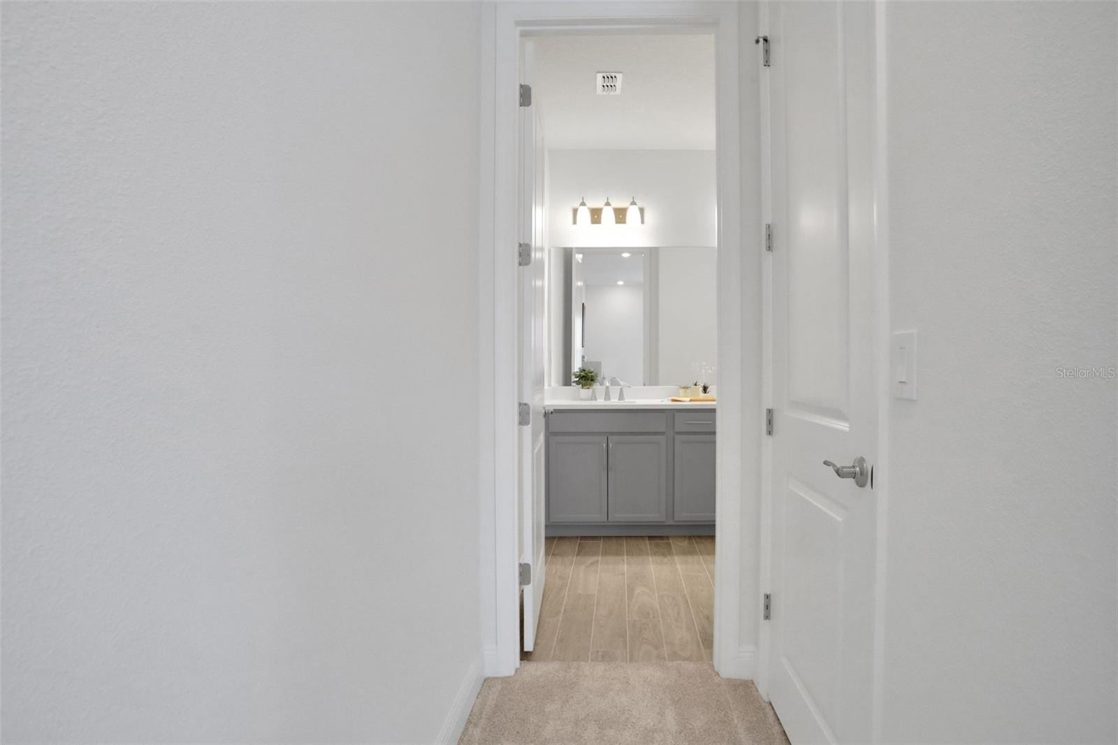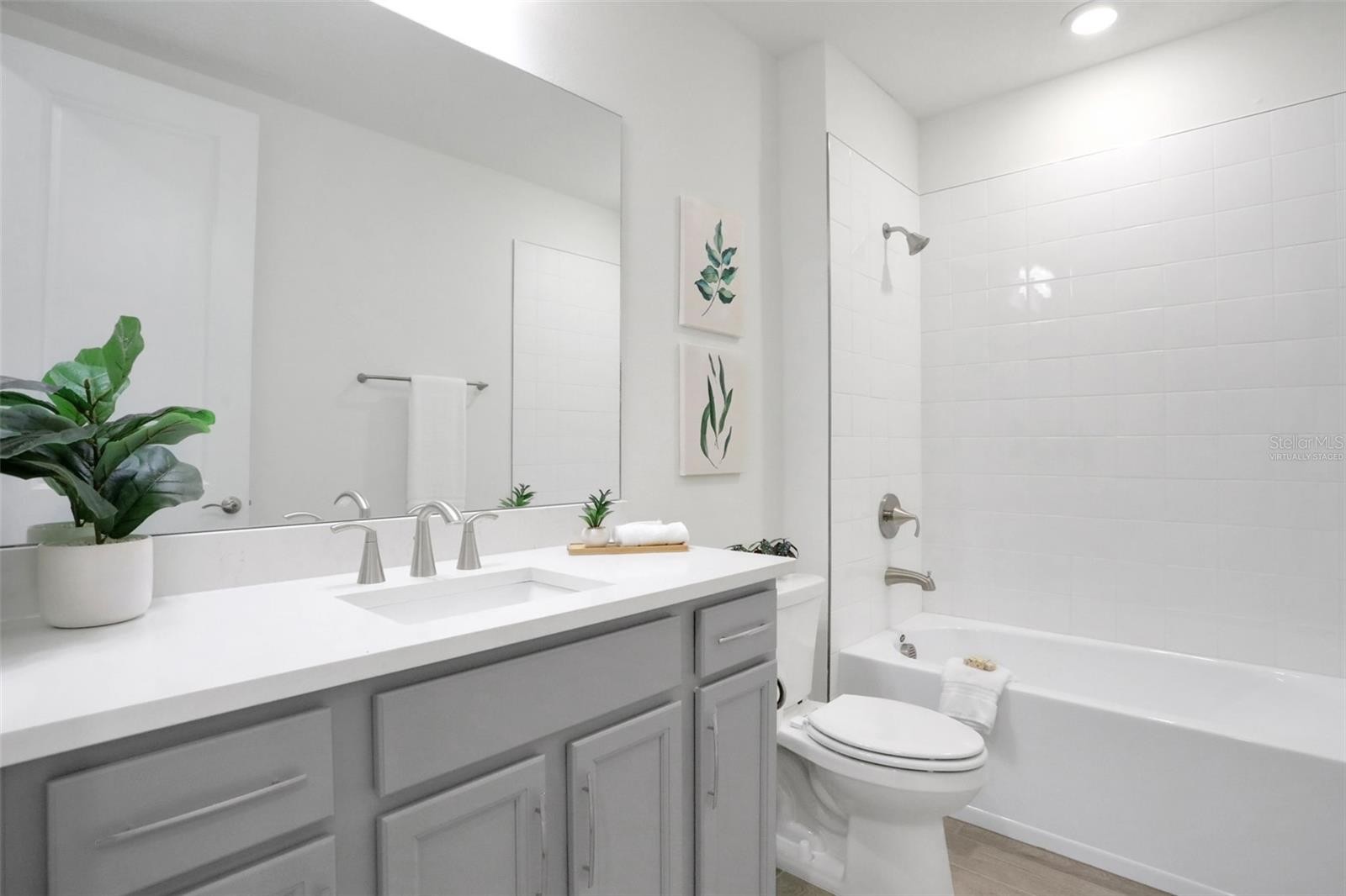 One or more photo(s) has been virtually staged. Under Construction. Discover the Pearl Plan, a beautifully designed and spacious two-story home located in the heart of Waterside at Lakewood Ranch. This thoughtfully crafted four-bedroom layout offers exceptional versatility with two bedrooms on the main level and two bedrooms upstairs, along with a generous loft that provides the perfect space for family, guests, or a home office setup. The first-floor common areas feature elegant gray-toned plank tile flooring that creates a warm, cohesive flow throughout. The kitchen serves as the true centerpiece of the home, showcasing 3cm quartz countertops with soft gray veining, striking 42-inch gray upper cabinets, and a timeless white tile backsplash, all enhanced by modern fixtures. Additional features include impact-resistant windows, wooden stair treads, and a pre-plumbed laundry tub for added convenience. Located in a natural gas community, this home offers the efficiency and performance of gas appliances—an exceptional benefit in Waterside. Whether entertaining, working from home, or simply relaxing, the Pearl Plan delivers comfort, style, and thoughtful design in every detail. The sample photos included are of the model home and are meant to showcase the craftsmanship and design quality.