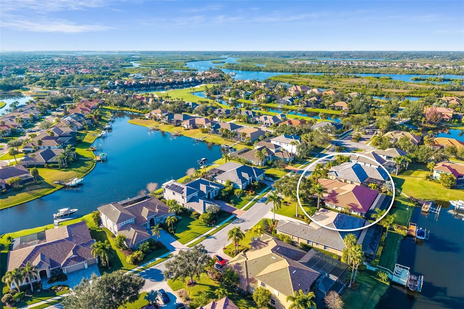 Waterfront Perfection: The Ultimate "Lefe Life" Awaits! If you demand a breathtaking view, a brand-new roof, a pristine pool deck, and your own private composite dock with an 8000lb lift, you’ve found your sanctuary in the gated Waterlefe Golf and River Club. Live worry-free with zero issues: a brand-new roof ensures peace of mind from day one. The view is truly spectacular—you must see it in person. The newly resurfaced pool and sprawling travertine deck, framed by an expansive aquarium window cage and outdoor kitchen, define Florida living at its best. Step down to your private dock (have you poles ready as the pond features world-class bass fishing!) and cruise the Manatee River to many waterfront restaurants and more. Inside, the updates shine: quartz counters in the kitchen and primary bath, newly painted cabinets with chic brushed gold hardware, and a true exhaust hood over the range. The zen-like primary suite features copper sinks, frameless glass, and an extended primary bedroom closet with natural light. This open-concept, entertainer’s dream floor plan flows from space to space, offering split bedrooms and a massive 3-car garage. The windows and lanai provide Protection with hurricane shutters for summer storms. Waterlefe is more than a home; it's a destination. The renovated River Club serves up resort amenities including a restaurant, fitness center, Tiki bar, and Junior Olympic pool. Embrace the #lefelife with daily activities and optional golf or marina access. Taxes include the CDD.