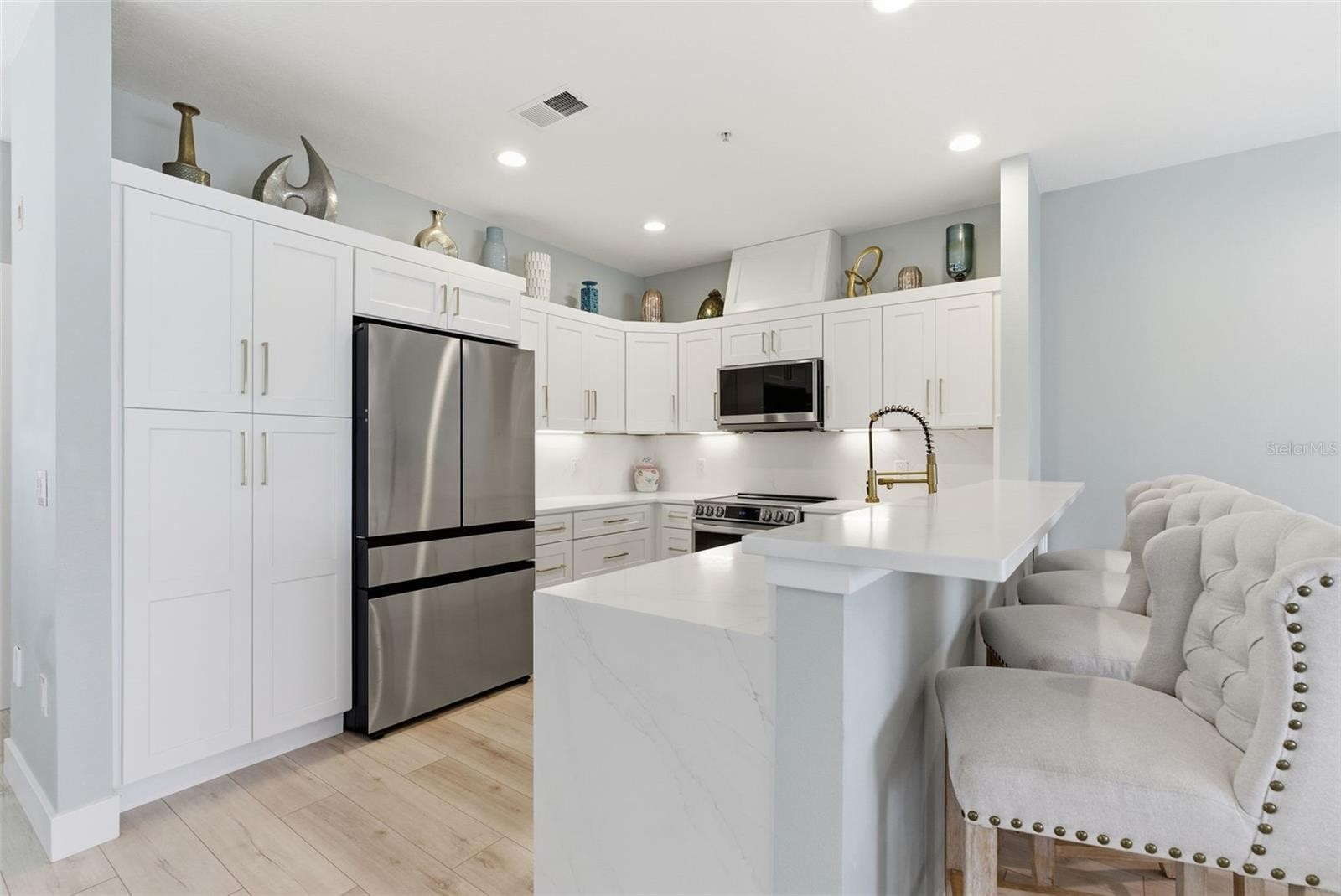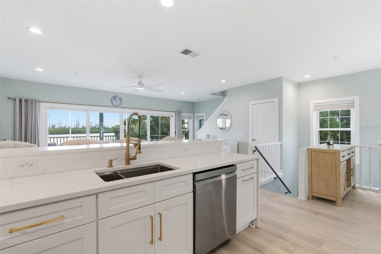 Completely remodeled in 2025, this exceptional end-unit waterfront townhome on the quiet south end of Siesta Key offers spectacular panoramic water views and breathtaking sunrises with direct access to the Intracoastal Waterway and no fixed bridges to the Gulf. Boating enthusiasts will appreciate close Gulf access through the newly reopened Midnight Pass. Located in Siesta Bayside South, an exclusive six-unit waterfront community, this is one of only two residences without a shared common wall, offering enhanced privacy. Three levels provide three distinct water perspectives — from the backyard waterfront setting, to the main living balcony, and from the private primary suite lanai — each capturing beautiful, ever-changing views of the Jim Neville Marine Preserve. The thoughtfully redesigned interior features all-new appliances including washer and dryer, upgraded lighting throughout, a whole-house water purification system, water softener (2023), central vacuum system, and spa-inspired bathrooms with rain shower heads and handheld sprays. The main living area opens to an oversized screened balcony ideal for entertaining, while the primary suite features a private 18’ x 10’ screened lanai. Boaters will appreciate the private dock with 10,000-lb lift, deep water, and new docks currently being installed. Additional amenities include a waterfront community pool and direct access from the ground-level screened lanai — perfect for grilling and relaxed waterfront living. The oversized two-car garage offers generous storage for water toys and beach gear. Most furnishings are available under separate agreement, offering the opportunity for a turnkey transition. Just ½ mile from Turtle Beach, this pet-friendly community allows 3-month minimum rentals, making it ideal as a primary residence, second home, or investment. A rare opportunity to own a fully renovated, private waterfront residence in one of Siesta Key’s most serene locations.
