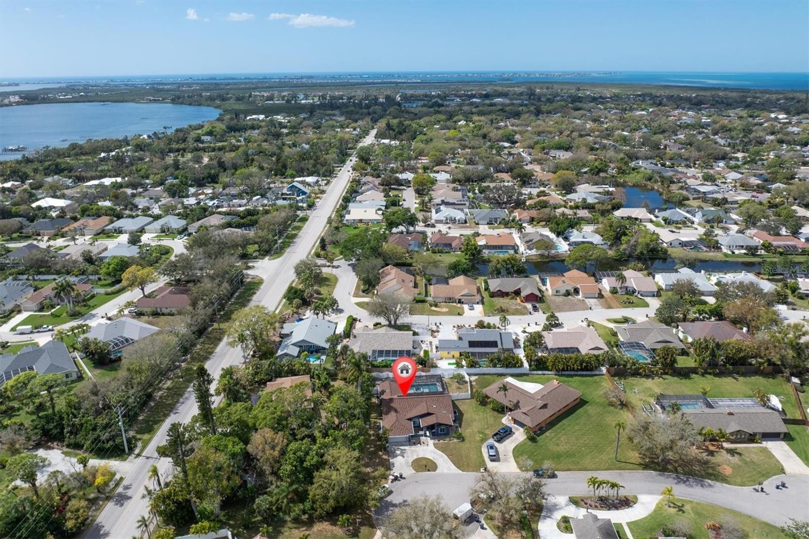 Welcome to your Coastal Comfort Oasis, where modern upgrades meet the relaxed atmosphere of Florida beach living. Nestled on a private double cul-de-sac in the sought-after Pine Meadow community, this beautifully maintained 4-bedroom, 3-bath residence offers 2,549 heated square feet designed for both comfort and entertaining. The backyard is a true highlight—featuring a large heated SALTWATER POOL and SPA (2023) with striking metallic tile, surrounded by a beautiful travertine pool deck and enclosed by a 140-mph wind-rated pool cage. The result is a private resort-style retreat perfect for relaxing evenings, weekend gatherings, or enjoying the Florida sunshine year-round. Inside, thoughtful upgrades combine style and practicality. Hurricane impact windows and doors (2023) provide security and efficiency, while plantation shutters throughout the home (2024) add timeless character. A whole-home water filtration system enhances everyday comfort, and solar panels (2019) drastically reduce energy costs. Crowning the home is an innovative zinc/aluminum alloy tile roof rated for 140 mph winds with a 50-year warranty, offering durability and long-term peace of mind. Additional features include spacious living areas ideal for entertaining including a bonus space currently used as a Game Room (pool table included with the home), and the flexibility of *NO RESTRICTIONS ON SHORT TERM RENTALS* within Pine Meadow. For added confidence, the property also includes a *3-year Choice Home Warranty Ultimate Plan* for the new owner. This home sustained NO DAMAGE from the 2024 storms. NO FLOOD INSURANCE REQUIRED.