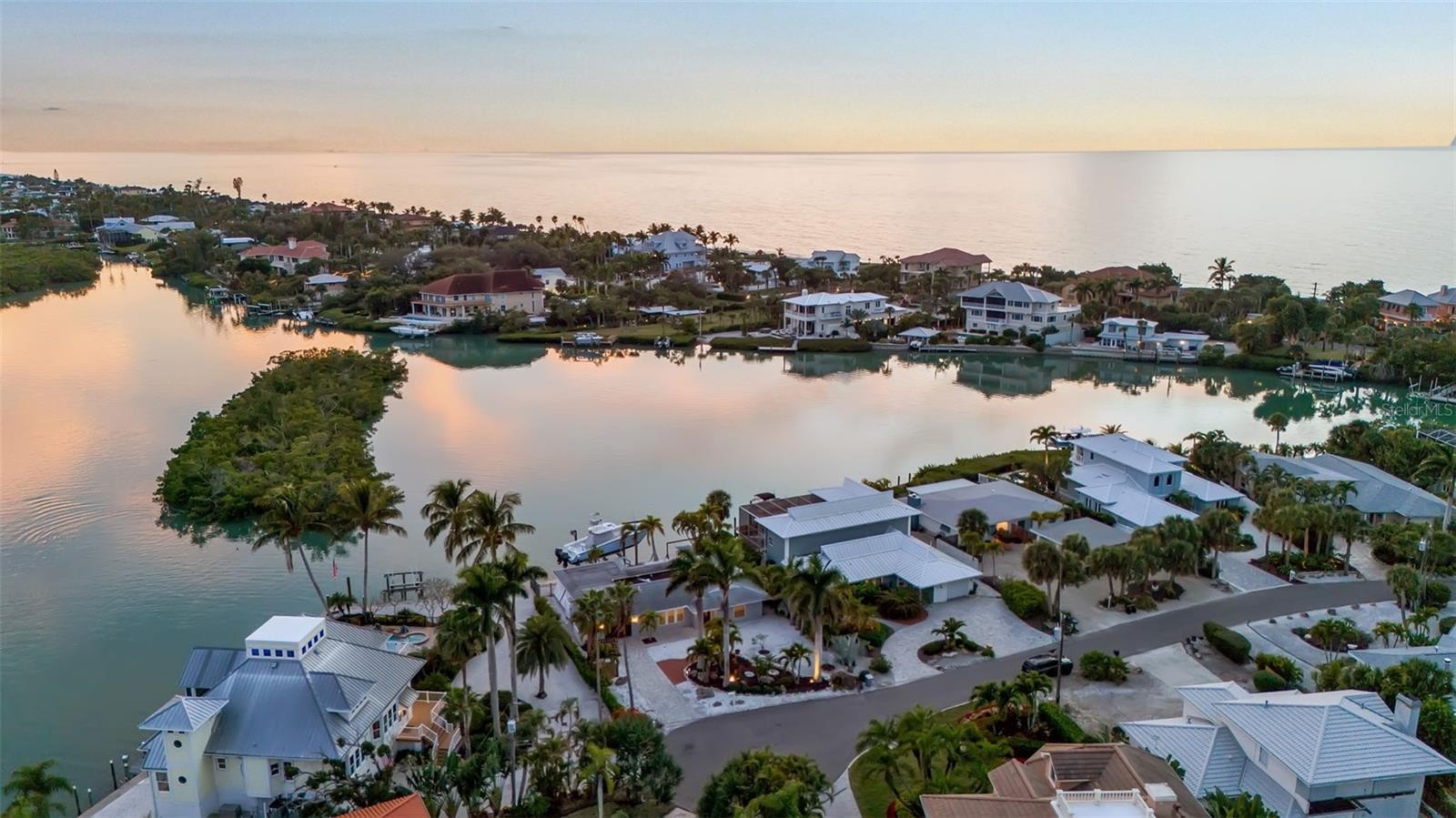 One or more photo(s) has been virtually staged. Vintage Waterfront Cottage on Casey Key. Quietly set on Casey Cove Drive, a private cul-de-sac just off Casey Key Road, this refreshed vintage cottage offers exceptional privacy and 180-degree Intracoastal Waterway views across Blackburn Bay. Located within a protected, minimal-wake cove, the setting is serene and timeless—where coastal breezes, open water views, and abundant marine life define everyday living. Boating is the heart of this property. A brand-new private dock with a 20,000 lb boat lift provides deep sailboat water and generous width to accommodate a large vessel, making spontaneous days on the water effortless. Set along the Intracoastal, the home offers direct access to the bay and Gulf beyond, ideal for boating, cruising, and waterfront exploration. Refreshed in 2024 and offered unfurnished, the two-bedroom, two-bath residence features luxury vinyl flooring, fresh interior paint, and new KitchenAid appliances. The rear living area opens to sweeping water views, creating a relaxed and inviting coastal atmosphere. Outdoor living includes a heated pool, in-ground spa, and covered patio overlooking the water—perfect for unwinding as dolphins and manatees pass by. Just a short walk to Nokomis Beach and only one mile from the Albee Bridge, with convenient access to Venice Island, downtown Sarasota, dining, shopping, and the Legacy Trail, this peaceful waterfront cottage delivers a rare boating lifestyle in an outstanding Casey Key location.