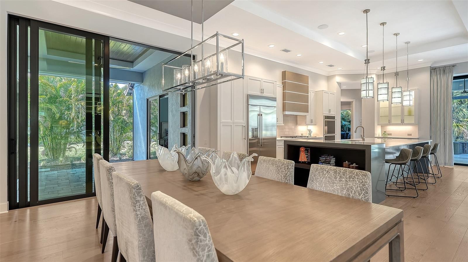 Welcome to this exceptional former model home built by one of the area’s finest luxury home builders, Arthur Rutenberg, poised on the most expansive executive homesite in all of Skye Ranch. This luxuriously upgraded masterpiece is tucked back and nestled by a stunning Florida preserve providing extra privacy and natural beauty. Enter through the grand double iron front doors with glass inlays and transom window. Inside, the great room impresses with soaring ceilings, custom warm wood detailing in the entertaining wall and gorgeous white oak engineered hardwood flooring throughout the home. Expansive hurricane impact sliders invite an effortless transition to the spacious lanai and pool area, enhancing the home's indoor-outdoor flow. The kitchen serves as the centerpiece, anchored by a massive island with seating and storage, quartz countertops and custom backsplash, premium GE Monogram stainless steel appliances including double ovens, beverage/wine refrigerator, in cabinet microwave and large premium refrigerator, plus a hidden walk-in pantry and custom all wood cabinetry. The adjoining dining area enhances the home's entertaining appeal, situated next to the kitchen area and featuring a drop-down ceiling with designer lighting. The primary suite is a private retreat showcasing designer window treatments, huge sliding glass doors to access the lanai, dual customized walk-in closets and a stunning master bath. This spa inspired bath, complete with 2 vanities, soaking tub, an oversized walk-in shower creates a serene haven. Two additional guest suites each feature private baths and share a delightful lanai area to have morning coffee or evening nightcap. The front of the home also showcases a dedicated executive office, while the rear of the home has a spacious bonus room with custom ceiling detailing and perfect for movie and game nights. Enjoy outdoor living with the stunning travertine lanai offering a full summer kitchen, gas fireplace that is perfectly positioned by the master suite, a salt-water pool and spa and cage with panoramic screening to take advantage of the natural setting. Completing this residence is a huge laundry room with extensive cabinetry, quartz countertops and newer LG washer and dryer. OTHER NOTEABLE FEATURES INCLUDE: WHOLE HOUSE GENERATOR with transferable warranty, PGT HURRICANE IMPACT WINDOWS AND DOORS/SLIDERS, NO CARPETING...thoughtful owners installed hardwood flooring throughout, NEWER POOL PUMP, FILTER, SALT CELL in 2024, NEWER WINDOW TREATMENTS with remote control, REFRESHED LANDSCAPING, LEAF FILTER GUTTER PROTECTION installed WITH TRANSFERABLE WARRANTY, and to top it off...THE CDD HAS BEEN PAID IN FULL! Residents of Cassia at Skye Ranch have exclusive access to an impressive array of amenities at The HUB, including a resort-style pool and spa, Junior Olympic pool, splash pad, locker rooms, fitness and movement studios, a full, indoor basketball court, rock climbing wall, demonstration kitchen, and café. Outdoor recreation abounds with nature trails, dog parks, playgrounds, sports fields, sand volleyball, tennis, pickleball, and a community firepit area. A brand-new K–6 school is now open in the neighborhood, 7th and 8th grades to open in the next 2 years. Conveniently located east of I-75, this home is close to top-rated schools, shopping, dining, healthcare, cultural attractions, and only 25 minutes to world-renowned Siesta Key Beach.