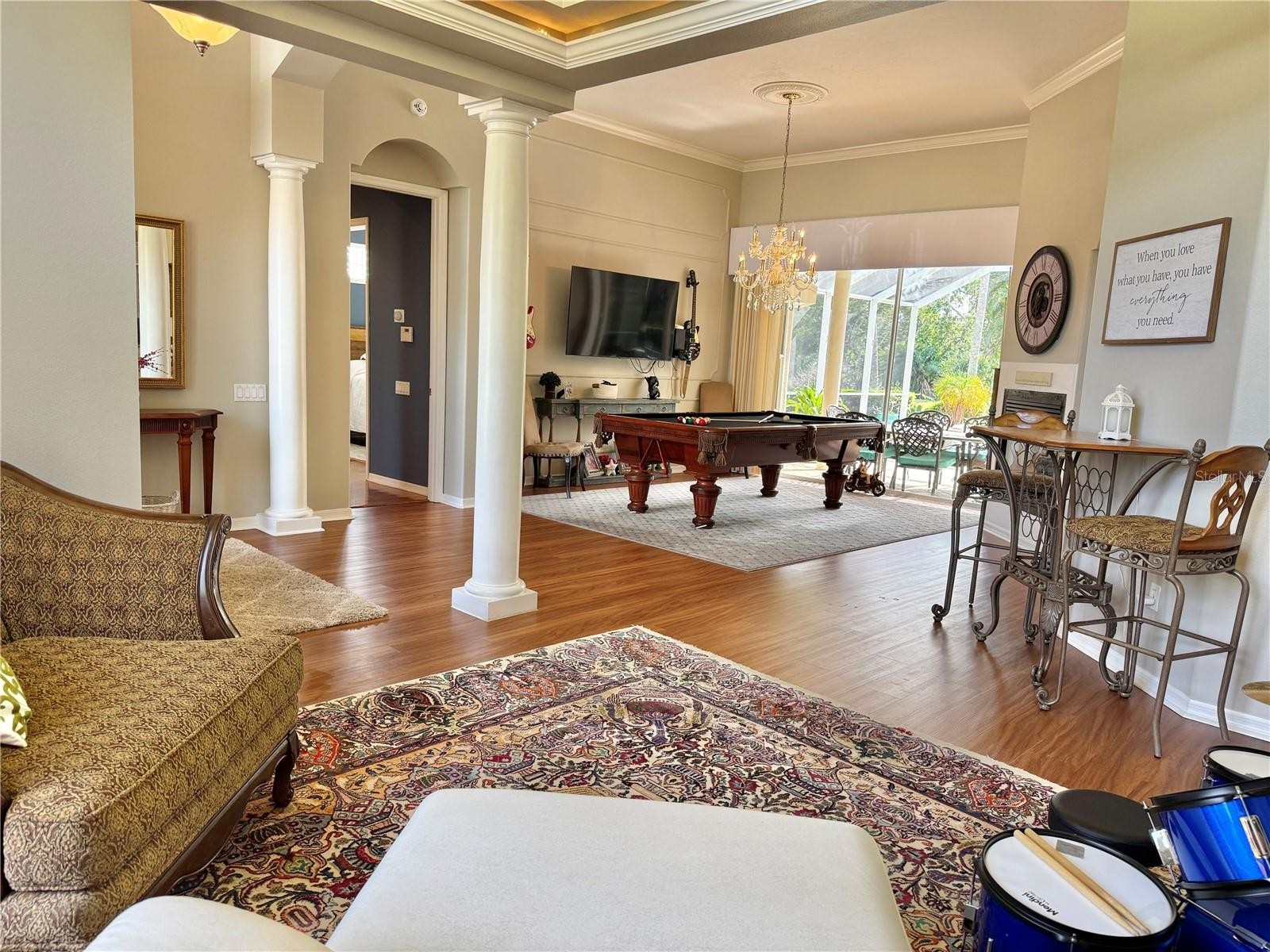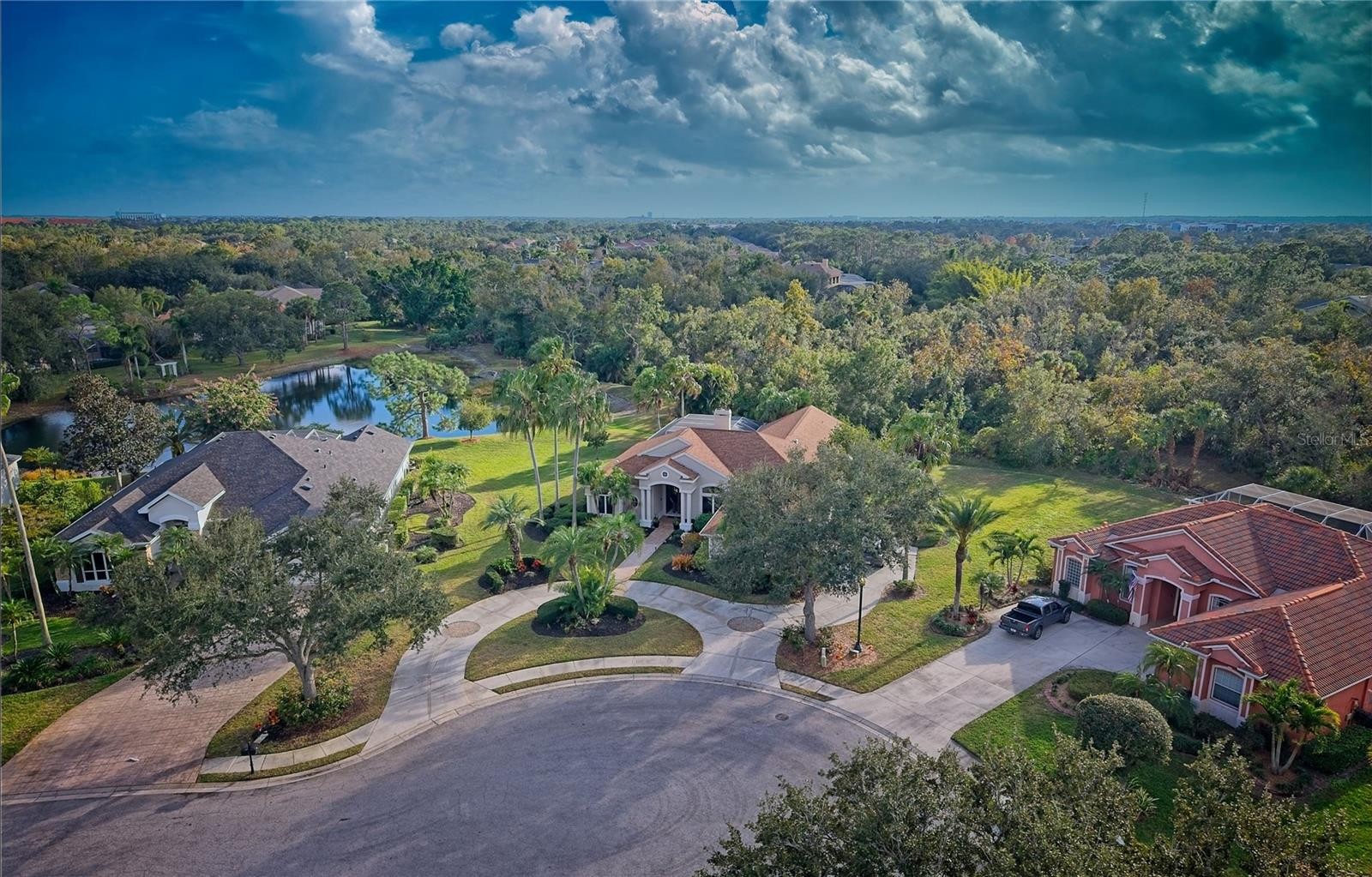 This former model home, custom built by Todd Johnson, is located in the heart of Lakewood Ranch's sought-after River Club community. This exceptional home offers the perfect blend of privacy, prestige, location and convenience—with no CDD fees. Mere minutes from Lakewood Ranch's Main Street, which offers premier dining, shopping, and community events, THIS PROPERTY IS TUCKED AWAY AT THE END OF A QUIET CUL-DE-SAC OF ONLY SEVEN LUXURY HOMES. The circular driveway welcomes you to the grand double-door entrance of this beautifully appointed residence featuring: tray ceilings, crown molding, and an expansive layout with 4 bedrooms, 3 bathrooms, an office/bonus room, and a 3-car garage. Set on OVER HALF AN ACRE, enjoy serene lake and preserve views from all major rooms and the private pool and spa. Separate living and family rooms provide ideal spaces for both formal entertaining and everyday living. The luxurious primary suite includes a sitting area, direct access to the pool and spa, and a spa-like en-suite bathroom with dual vanities, a soaking tub, and a walk-in shower. Step outside to your private retreat, where the expansive screened lanai and cabana frame a sparkling pool and spa—perfect for year-round relaxation and entertaining. Recent updates include a new roof (2020) and Kohler back-up generator (2021). River Club is known for its lush landscaping, championship golf course with optional golf membership, low HOA fees, and well-kept homes on generously sized lots. Conveniently located near top-rated schools, Lakewood Ranch Hospital, The Mall at University Town Center, and I-75. World-famous Gulf beaches, SRQ International Airport, and Sarasota’s vibrant arts and cultural scene are within a short distance this remarkable home offering you an unparalleled lifestyle in one of Florida’s most desirable communities. Schedule your private showing today! **THIS PROPERTY QUALIFIES FOR A 1% LENDER INCENTIVE IF USING PREFERRED LENDER. INQUIRE FOR MORE DETAILS.*