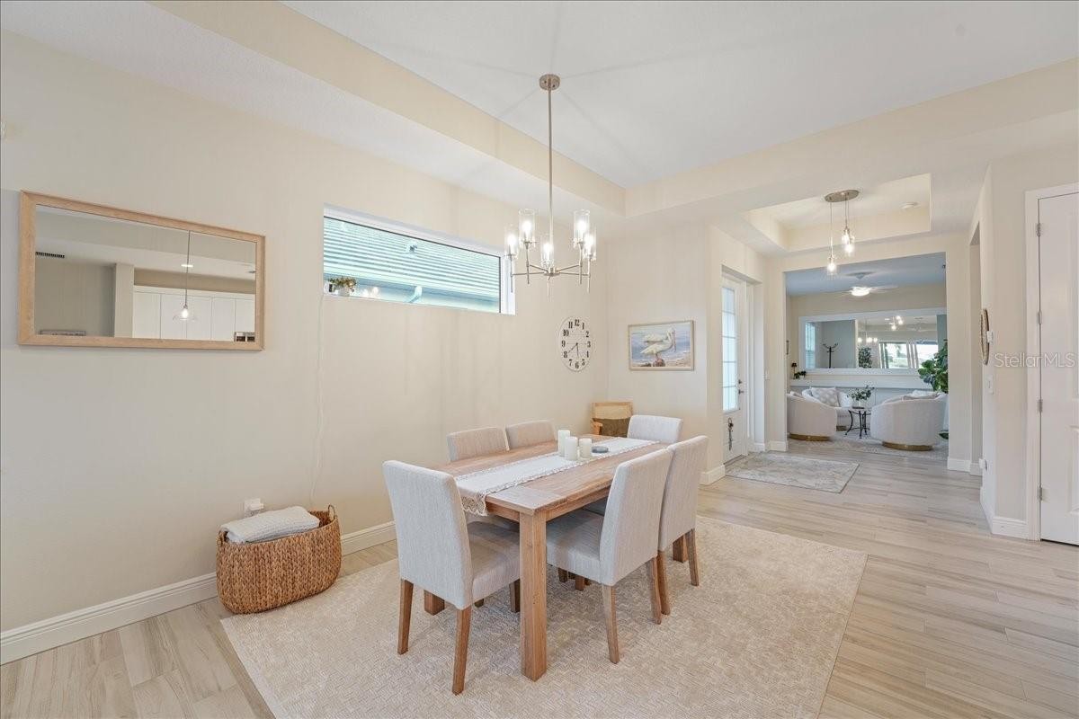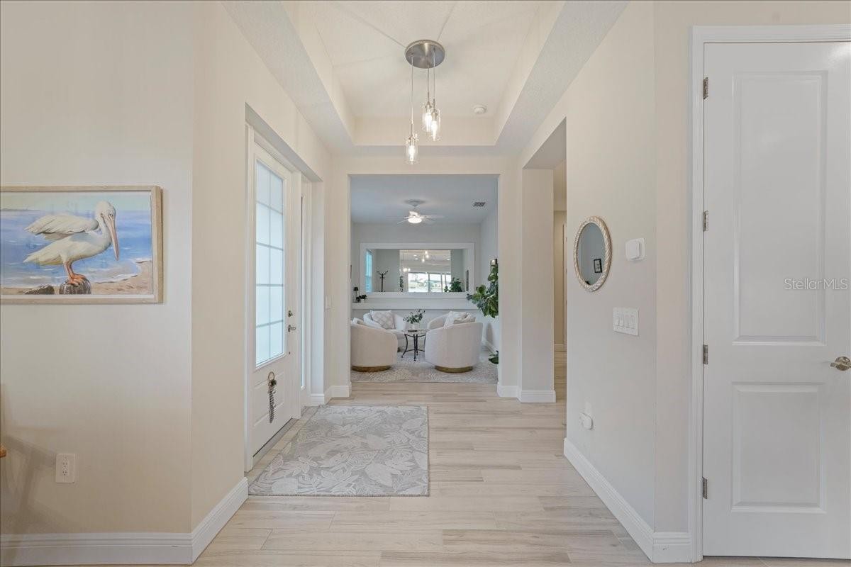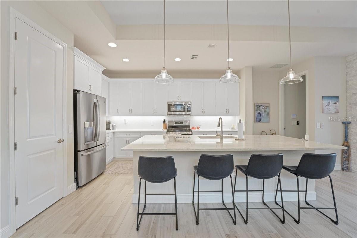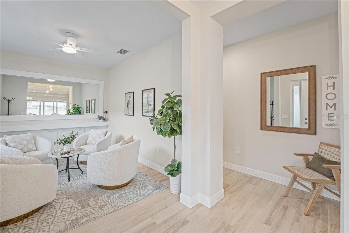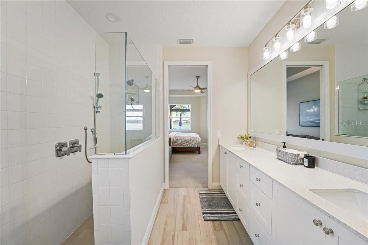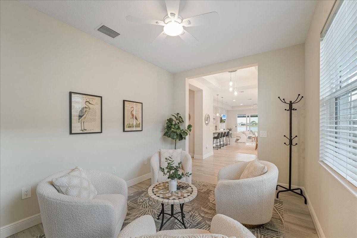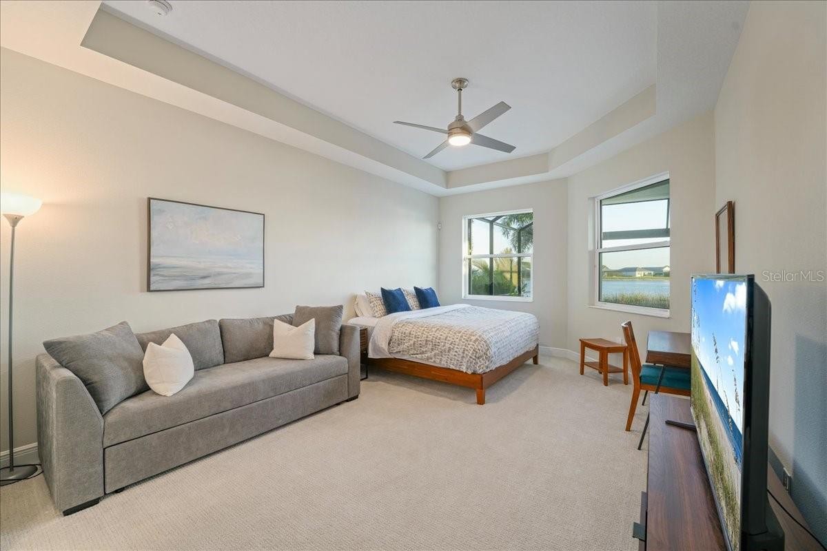 Under contract-accepting backup offers. Wake up to shimmering lake views and unforgettable sunsets in this beautifully designed waterfront residence at Lakehouse Cove at Waterside. Thoughtfully crafted in 2022 by Homes by Towne, this 3 Bedroom + Den Skiff floor plan offers the perfect blend of modern elegance, comfort, and effortless indoor-outdoor living. Inside, the open-concept layout is filled with natural light and showcases refined finishes throughout, including quartz countertops, custom cabinetry, under-cabinet lighting, a custom stone fireplace and custom mirror & moldings. The heart of the home flows seamlessly into a spacious living and dining area, creating an inviting space for everyday living and entertaining alike. Step through expansive sliders to a screened lanai that captures wide-open lake views — an ideal spot to enjoy your morning coffee or unwind at sunset. The outdoor setting feels like a private retreat, perfectly positioned for peaceful mornings and evening gatherings. The primary suite offers a tranquil escape with serene water views and a spa-inspired bath featuring dual vanities and elegant finishes. Two additional bedrooms, two full bathrooms, and a versatile den or home office provide flexibility for guests, work-from-home needs, or creative space. A dedicated laundry room and two-car garage add everyday convenience, while thoughtful upgrades throughout enhance both style and functionality. Lakehouse Cove delivers a true resort-style lifestyle with amenities that include a pool and spa, clubhouse with catering kitchen, fitness center, kayak launch, boating access, pickleball courts, fire pits, and scenic gathering areas designed for both relaxation and connection. Ideally located just minutes from Waterside Place, Lakewood Ranch Main Street, world-class beaches, dining, shopping, and Sarasota-Bradenton International Airport, this home offers effortless access to the best of the Gulf Coast lifestyle. This is a rare opportunity to enjoy waterfront living in one of Sarasota’s most sought-after communities — where every day feels like a getaway.