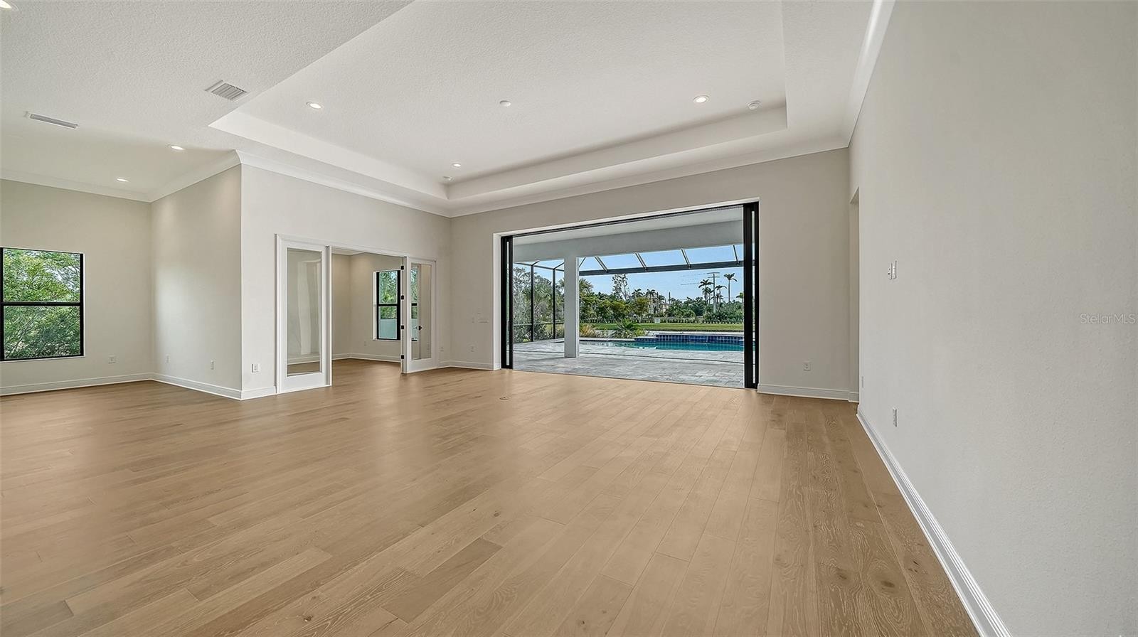 Don’t miss out on a slice of heaven.This is an opportunity to purchase a beautiful new home in NW Bradenton at Tideline by Neal Signature Homes. This 3 bedroom, 3 bath Genoa Feature Home is beautiful, move in ready with WARRANTY. Imagine enjoying the magnificent sunset’s entertaining family and friends in your Great Room which also encompasses your Dining Room and Gourmet Kitchen with massive island to gather around and share a meal and a story. Your pocket sliders open out onto your spacious lanai and gorgeous pool which seems to disappear into the landscape of the lake. Pause for a moment and you may be lucky enough to see one of our resident Bald Eagles or Pink Roseate Spoonbills. It’s all very serene, surrounded by nature, Palma Sola Botanical Gardens, Gearldson Farms and Robinson Preserve….What’s not to Love?