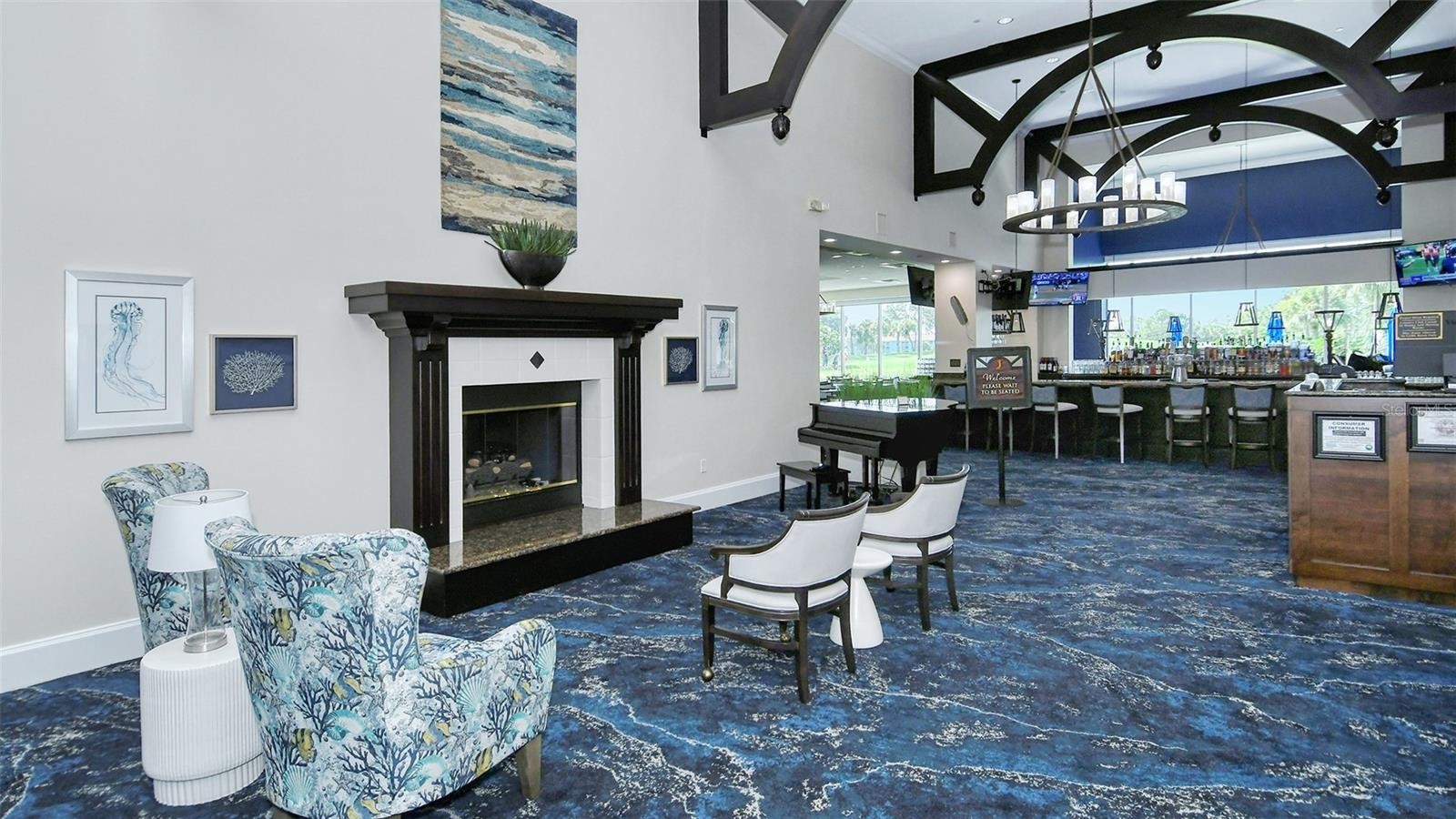A Barrington possessing every great upgrade a Buyer could want! A must see to fully appreciate the fine details this ground floor unit offers. As you enter the open kitchen featuring quartz counters and full quartz backsplash, Café appliances including a wine fridge and separate beverage cooler, Coffee bar, built-in pantry, 2-tone cabinet set, exquisite handle sets, quiet close drawers along with cookware drawers, RO drinking water system. Matching tile throughout the residence! Crown Molding and updated baseboards, high quality lighting and ceiling fans. Living room boasts a built-in fireplace. A must-see walk-in shower with waterfall head and separate hand wand, floor to ceiling decorator tile, twin sinks. Twin walk-in customized closets to keep everything well organized. Bay window over-looking the preserves. Back Lanai is great for entertaining. Remote control blinds on the sliders and decorator blinds on the windows. The twin pocket-doors to the Den with a built-in cabinetry and closet for additional hanging area for visitors. The Guest Bath has a matching shower stall with its own Waterfall head, organized closet in the 2nd bedroom. The laundry is equally impressive with its barn door style bi-fold doors, detailed built-in cabinetry for every detail. Even the garage has an epoxy floor. Community Pool and Tennis Court nearby. Stoneybrook of Sarasota, A premier member-owned country club, is only a short distance from Siesta Key and offers easy access to shopping and borders the Legacy Trail. Ownership in Stoneybrook Golf and Country Club includes a completely updated 18-hole golf course in 2024, clubhouse and restaurant, Har-Tru tennis facility, well-equipped fitness center and additional club pool and spa. Nestled between Downtown Sarasota and Downtown Venice.