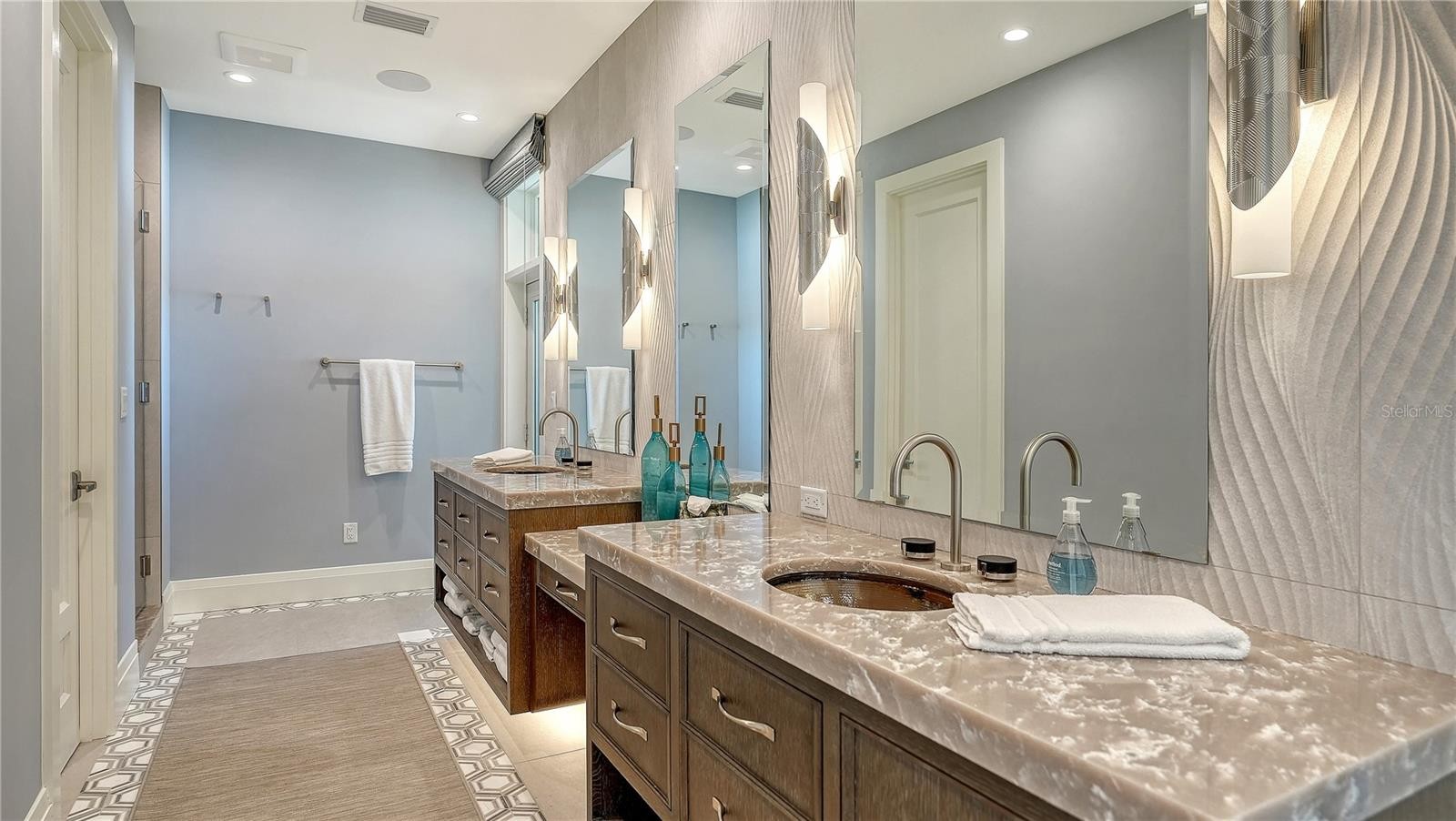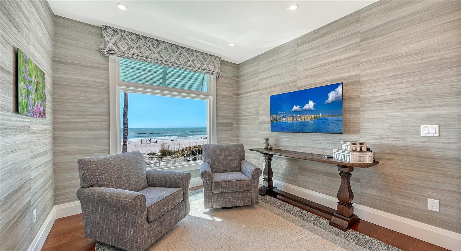 Views abound in this exquisite beachfront retreat in the heart of Anna Maria Island. This 3-bedroom, 3.5-bath Coastal West Indies–inspired residence showcases exceptional craftsmanship, including custom millwork, solid oak flooring, vaulted ceilings, designer draperies, and Roman shades throughout. An open-concept floor plan fills the home with natural light, while expansive windows and glass doors frame picturesque Gulf views and create seamless indoor-outdoor living—ideal for entertaining. The gourmet kitchen is beautifully appointed with solid wood cabinetry, a paneled refrigerator, custom solid-surface countertops, and a Thermador range. The primary suite is a private sanctuary where you’ll awaken to sweeping views of the turquoise waters of the Gulf. The spa-inspired bath features dual vanities and a luxurious walk-in shower with a striking stone waterfall accent. Hand-carved custom wood doors enhance the suite’s privacy, while a private sitting area just outside provides an additional space to unwind. The third level offers two well-appointed guest suites, each with breathtaking views and elegantly finished en-suite baths.On the lower level, a welcoming foyer with a custom staircase and private elevator provides access to all floors. The oversized two-car garage includes built-in storage cabinetry, and a versatile bonus area offers additional space for entertaining or recreation. Set on a lush half-acre lot with mature landscaping and thoughtfully designed outdoor lighting, the property highlights a stunning beachside pool and spa, covered lanai, private outdoor shower, and roll-down hurricane shutters. Multiple decks provide the perfect vantage point for sunset views and tranquil beach watching.Schedule your private showing today and experience the ultimate in beachfront living.