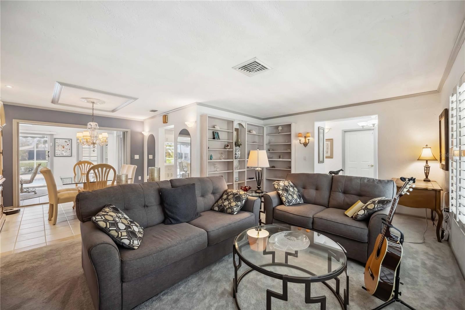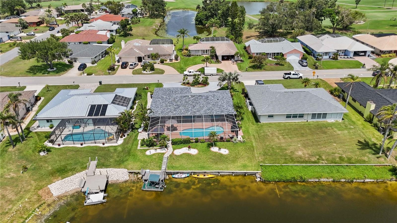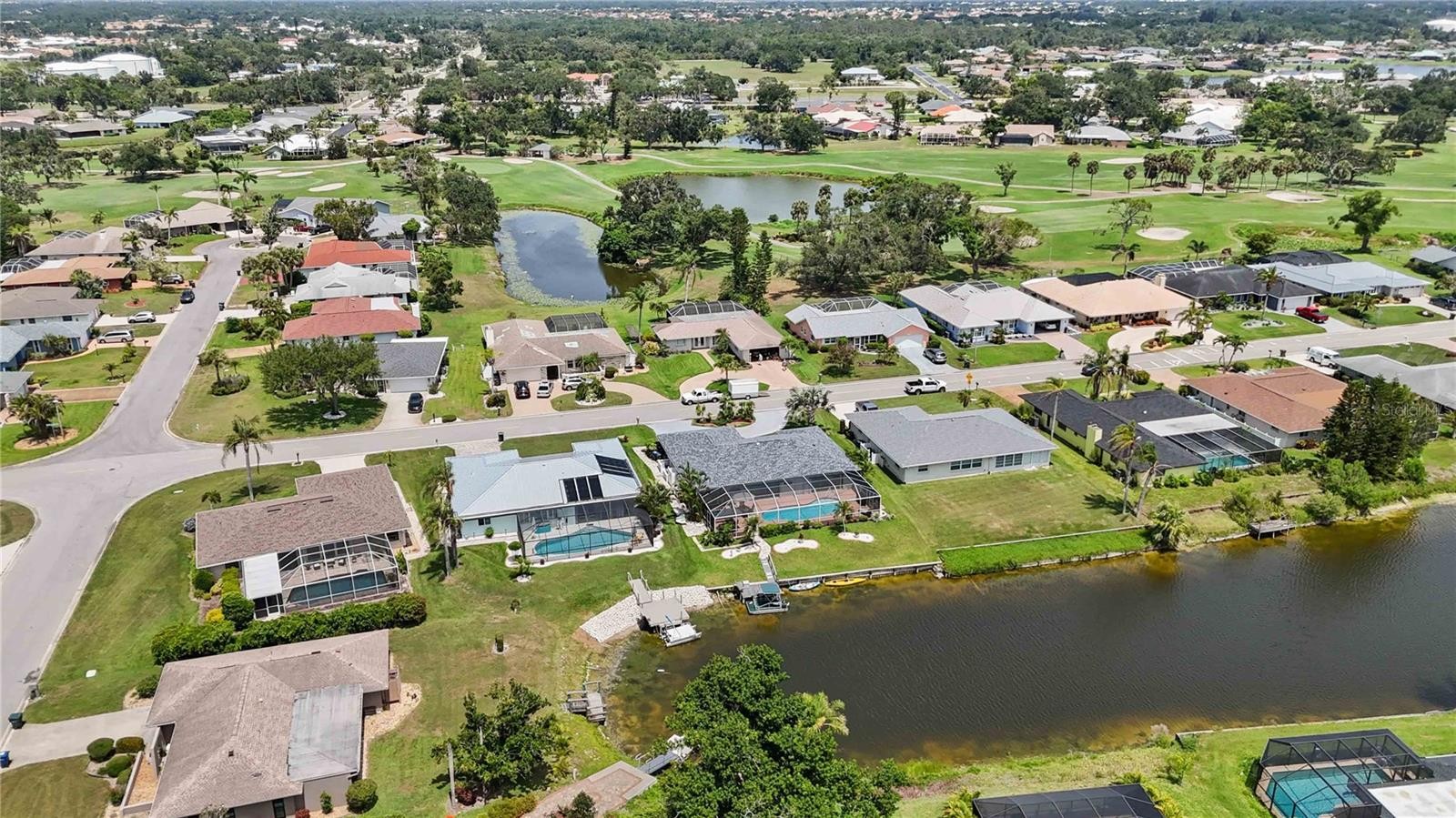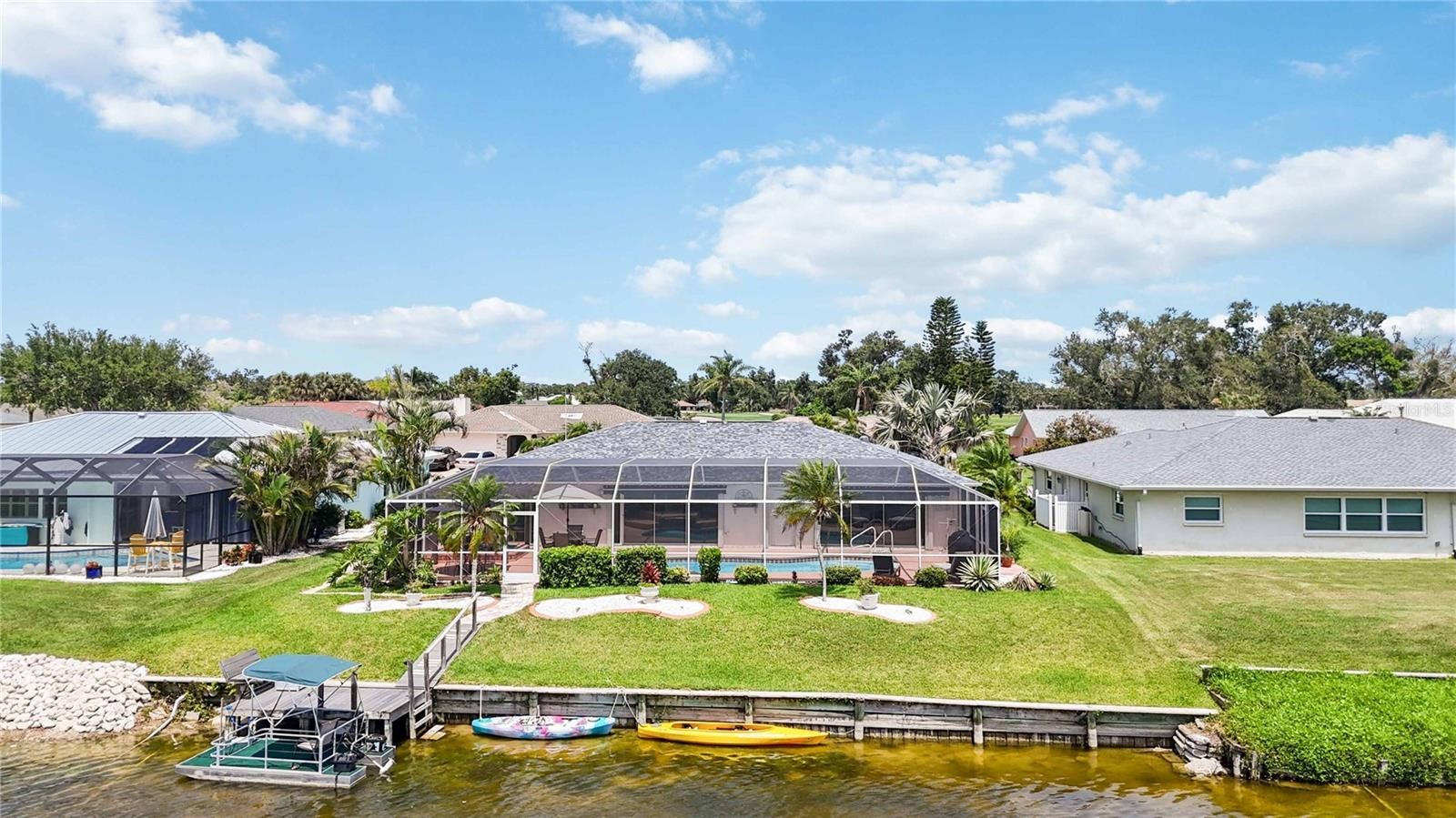 Welcome to your furnished retreat in the desirable Venice Gardens community, within the Jacaranda West HOA. This beautifully maintained 2-bedroom, 2-bath home features a flexible split floor plan offering privacy for both bedrooms, ideal for full-time living or hosting guests. Enjoy peaceful lake views and stunning sunset skies from the spacious Florida Room or while relaxing in your private heated pool and separate built-in hot tub. The outdoor space is designed for both comfort and functionality, featuring retractable lanai awnings, an outdoor shower, and a lake-fed irrigation system. NEW ROOF (FEBRUARY 2025), A/C (2019), HOT WATER HEATER (2019), POOL HEATER (2023), AND NEW HOT TUB PUMP. THE HOME HAS ALSO BEEN RE-PIPED AND INCLUDES HURRICANE-IMPACT WINDOWS. A sump pump drainage system adds additional peace of mind. The kitchen features quartz countertops and stainless steel appliances, offering a clean, modern feel. Additional interior highlights include an inside utility room with a laundry tub and connection to public water and sewer. A standout feature is the private electric boat dock. BOAT WITH BRAND-NEW MOTOR, SPARE MOTOR, AND KAYAKS CONVEY WITH THE SALE, making it easy to enjoy the lake lifestyle right from your backyard. Conveniently located near medical facilities, top-rated schools, the YMCA, dining, shopping, Gulf Coast beaches, and just minutes from Historic Downtown Venice and I-75. Schedule your private showing today and experience the best of Florida living.