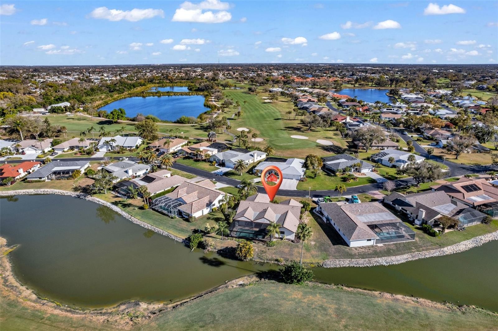 Located in a highly desirable Venice community, this 4 bedroom, 3 bathroom, 2 car garage pool home offers a rare combination of water views, golf course frontage, and impressive privacy. With no direct sightlines to neighboring homes from the backyard, you can enjoy the setting and the view while still feeling tucked away. The property is also located outside of a flood zone, adding long term peace of mind. The home has been meticulously maintained, creating a true move in ready experience. Major improvements include a 2018 roof and full house plumbing relined in 2026. The pool and outdoor living space have also been enhanced with a pool cage replacement in 2023, featuring a panoramic screen that opens up the view and makes the outdoor area feel even more expansive. Inside, the home has been freshly painted from ceilings to baseboards, with the exterior painted as well for a clean, cohesive finish. The garage has been refinished with fresh paint and a new epoxy flake floor, and the carpet throughout the home has been professionally steam cleaned. The floor plan offers four bedrooms and three full bathrooms, providing flexibility for a variety of living needs. Whether you want dedicated guest space, a home office, or room to spread out, the layout supports both everyday living and hosting. Outdoors, the screened pool area becomes a natural extension of the home, positioned to take advantage of the water and golf course backdrop while maintaining privacy. A full irrigation system supports the landscaping and helps keep the property looking its best year round. Conveniently located just minutes from shopping, dining, and easy interstate access, this home is also a short 5 mile drive to the beach! If you have been looking for a pool home with a view, meaningful updates, and move in ready condition in a prime Venice location, this one checks the boxes.