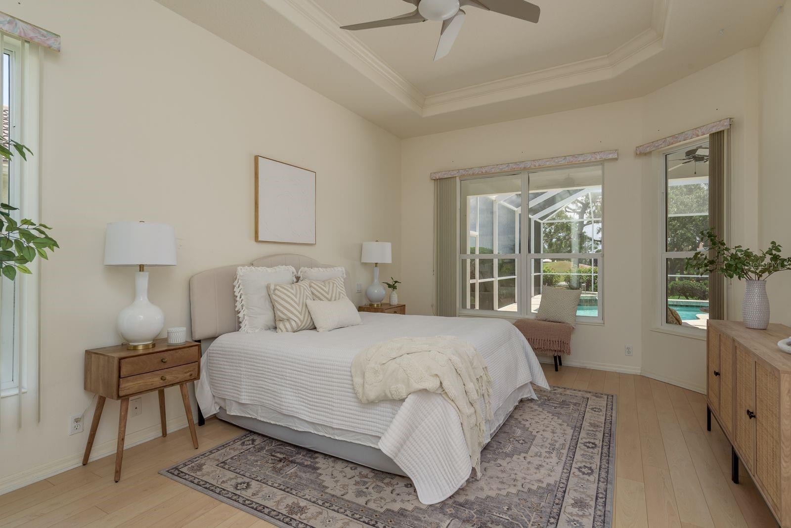 Welcome to the highly sought-after Pelican Pointe Golf & Country Club—an upscale gated community in Venice offering comfort and the true Florida lifestyle. This spacious 4-bedroom (plus an office/den), 3-bathroom home with over 3,000 sq ft features an open-concept Arthur Rutenberg split floorplan along with an oversized 3-car garage. Step through the foyer entry into a bright, inviting layout with two living areas, formal dining room, and private den/office—perfect for working from home. High-end finishes include tray ceilings, recessed lighting, built-in shelving, and abundant storage throughout. The open kitchen offers a ton of cabinetry, a breakfast nook, and sliding glass doors which flood the home with natural light. The spacious primary suite is a private retreat, complete with walk-in closets, an en-suite featuring a soaking tub, two vanities, and a separate walk-in shower. Guest bedrooms are comfortably separated for privacy and functionality and each feature a house bath just outside of the door. The fourth bedroom to the rear is a large space featuring sliders to the pool area and could also be used as a game room, fitness center, playroom or more. Step outside to your own backyard oasis with the ideal backdrop! The screened-in lanai features refreshed pavers, a sparkling pool, and a relaxing jacuzzi, along with a covered outdoor dining area—perfect for grilling, lounging, and enjoying the picturesque golf course and pond views. Ownership includes lawn care, internet, and social membership to the club, which offers resort-style amenities like a clubhouse, heated pool, fitness center, tennis, Pickleball, restaurant and bar. Located just minutes from the YMCA, world famous Gulf beaches, shopping, dining, and more, this is your chance to live where others vacation. Schedule your private tour today and experience Florida living at its finest!