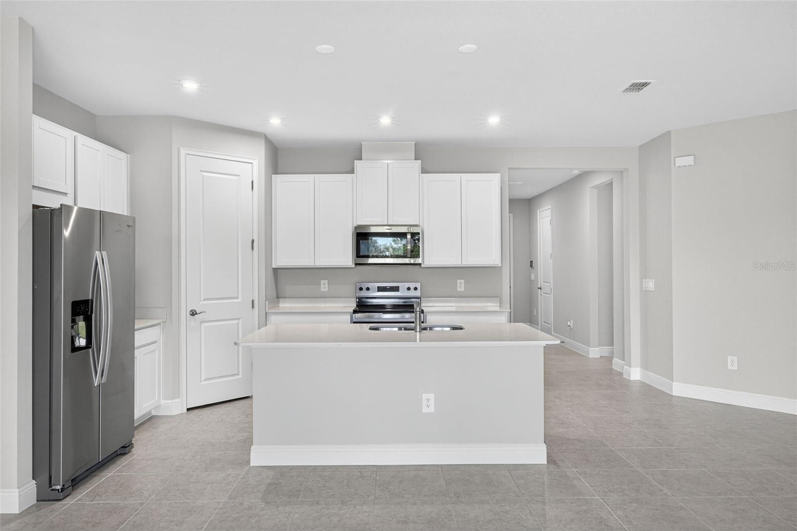Under Construction. Receive up to $20,000 towards Flex Cash & Closing Costs + special interest rates with the use of our preferred lender - now through February 15th. This all-concrete block constructed, one-story layout optimizes living space with an open concept kitchen situated between the living area and dining room. The kitchen, which overlooks the living area and covered lanai, comes with all appliances, including refrigerator, built-in dishwasher, electric range, and microwave. The owner's suite, located at the back of the home for privacy, has an ensuite bathroom. Two additional bedrooms share a second bathroom. The laundry room comes equipped with included washer and dryer. Pictures, photographs, colors, features, and sizes are for illustration purposes only and will vary from the homes as built. Home and community information including pricing, included features, terms, availability and amenities are subject to change and prior sale at any time without notice or obligation.