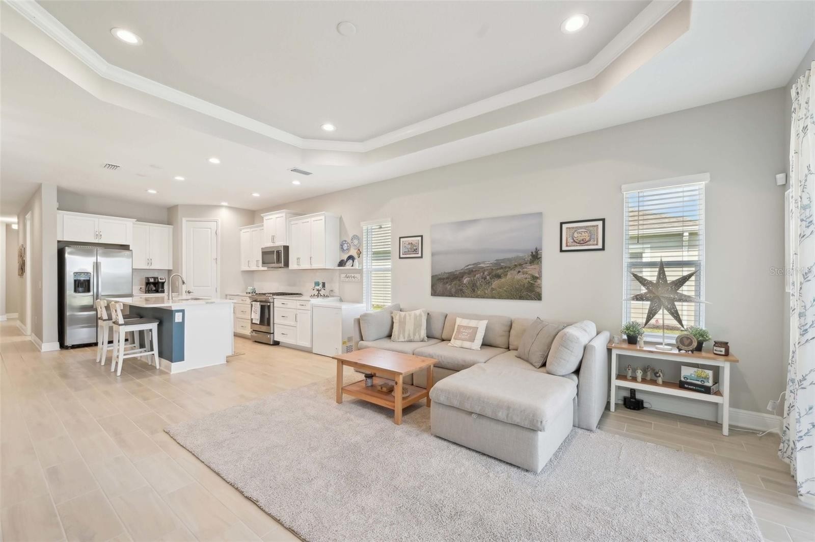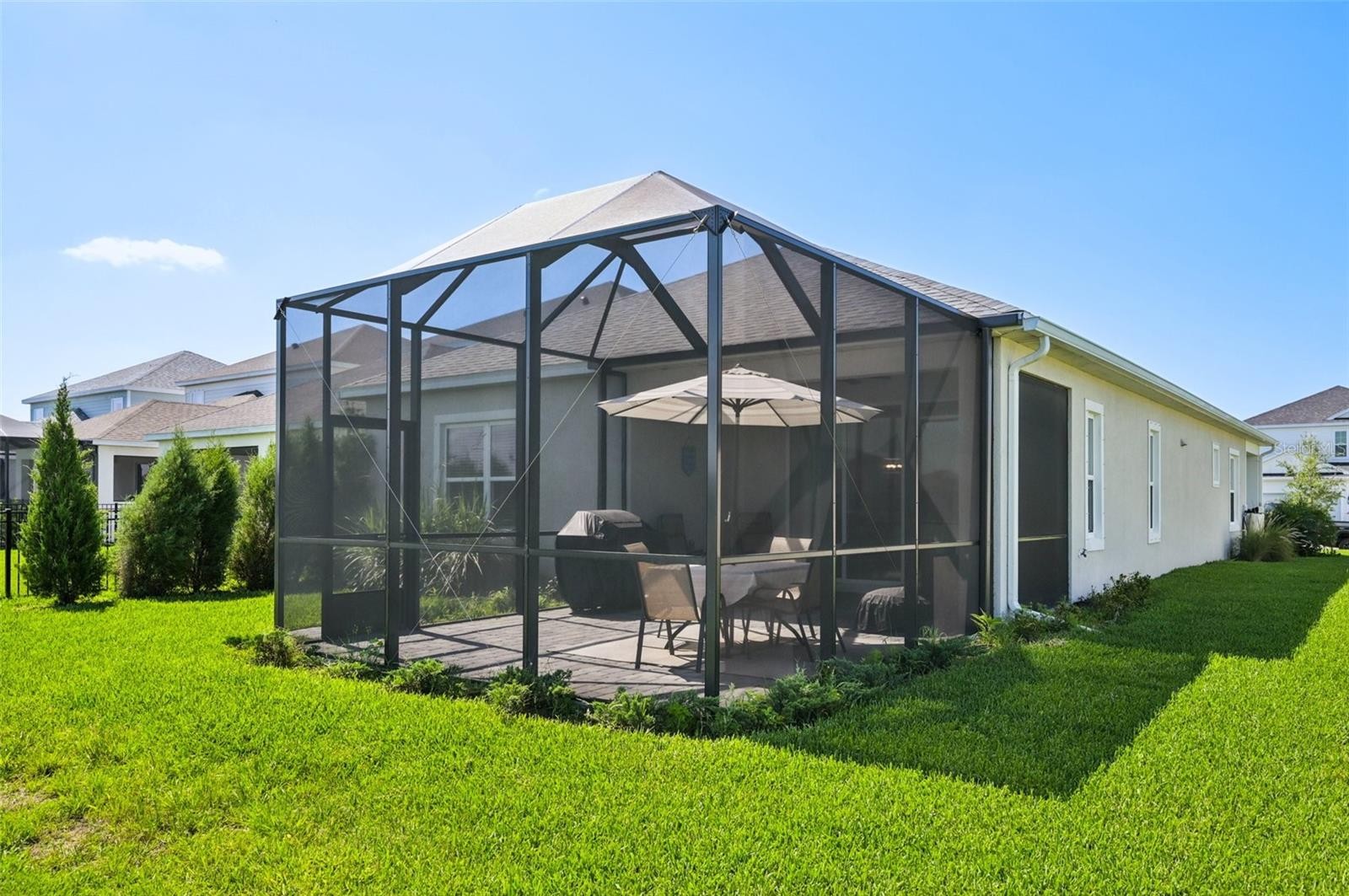 Welcome to your dream home—a single story Neal Communities masterpiece on an oversized lot perfectly situated in the highly desirable Parrish, FL school district. From the moment you step inside, this home exudes warmth and sophistication. With 10-foot ceilings, wood-grain tile throughout, and a seamless open-concept layout, every inch is designed for both comfort and entertaining. The gourmet kitchen is a true centerpiece, featuring stainless steel appliances, a large island with breakfast bar, and gleaming quartz countertops. The great room is flooded with natural light thanks to oversized windows and a three-panel sliding glass door, which opens to an extended covered patio with serene preserve and pond views—a perfect backdrop for morning coffee or sunset gatherings. The owner’s suite is a private retreat, complete with dual walk-in closets, a luxurious ensuite bathroom with dual vanities, a walk-in shower, and a private water closet. Guests will appreciate the split floor plan, offering two bedrooms and a semi-private bathroom for added comfort. Need a home office or creative space? A versatile den/office with French doors and front yard views checks that box beautifully. Located in Wildleaf at North River Ranch, you’ll enjoy access to world-class amenities, including Camp Creek, a 12+ acre center with trails, pickleball courts, BMX bike park, pool with slides, a cozy café, EV charging stations, bike share, and vintage-inspired gathering spaces for neighbors and friends to connect. Whether you're hosting, relaxing, or exploring the community, this home is ready to elevate your lifestyle. Is this your perfect match? Schedule your private tour today and come experience the lifestyle waiting for you at North River Ranch!