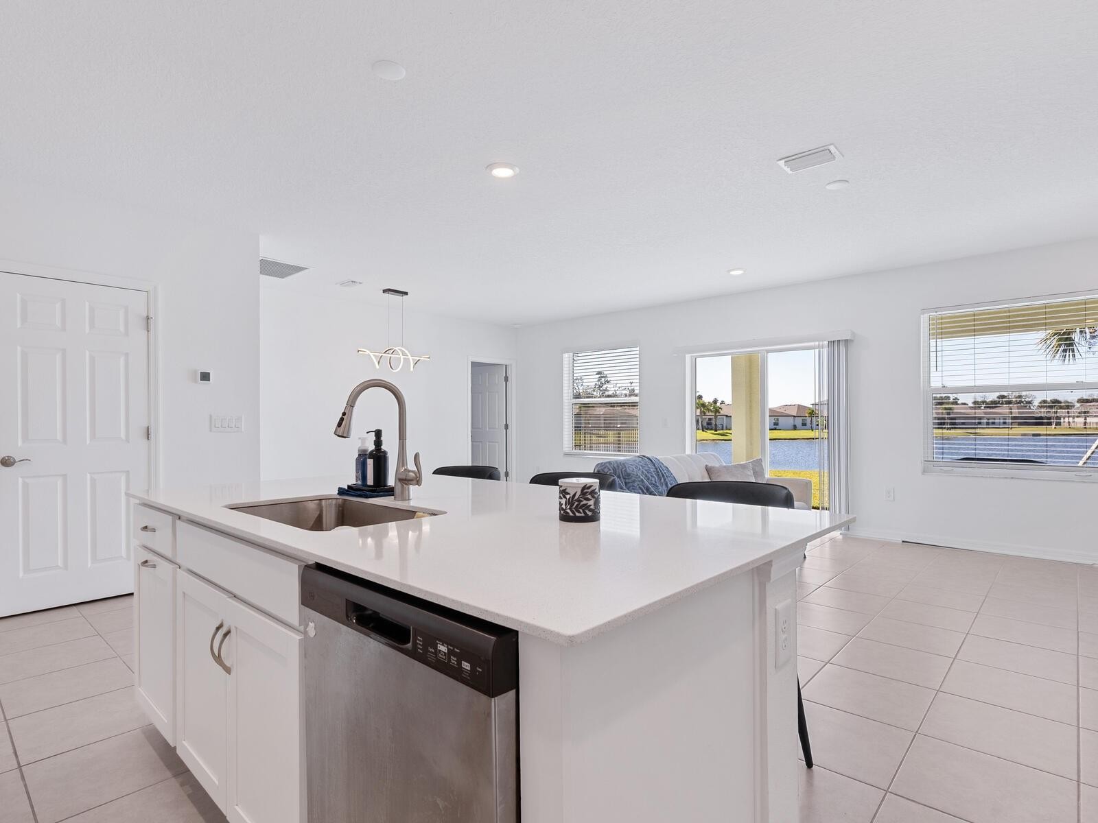 Looking for a newer four-bedroom home with a beautiful water view? Here's your opportunity to live in a newer gated community with the best of family amenities and you don't have to wait to build. This Sentinel C model has everything you can ask for with an owner's suite and den or fourth bedroom on one side of the home and two other bedrooms on the other. Open floor plan for the best of all living and entertaining options. The home sits on a beautiful lot with extended water views and the sunset creates a backdrop you won't often find. Now is the time to start creating memories, and make this well-planned community and this home yours.