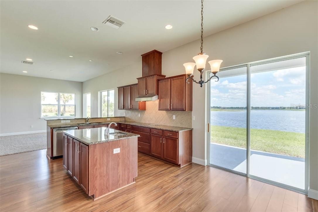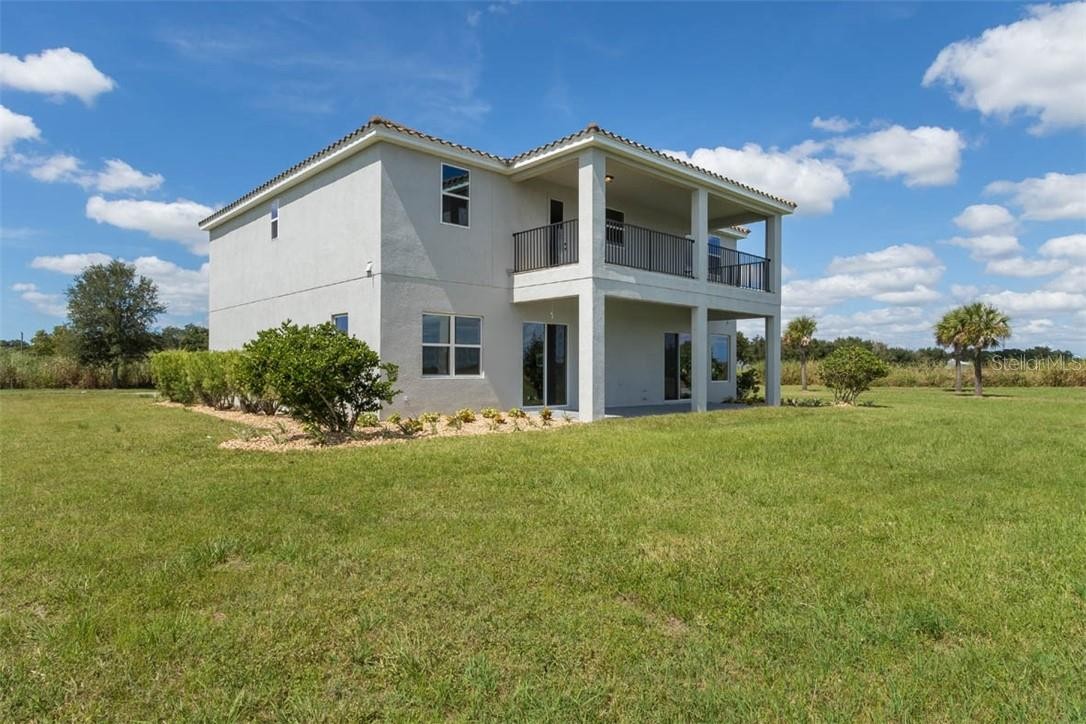 This exclusive estate home offers a rare combination of land, newness, and stunning views. The private 2+/-acre retreat sits at the end of Regent Lake, a deep freshwater lake which provides vistas of stunning open skies and expansive waters. As you enter through the double doors you are greeted by an open concept floorplan as well as a full view of the amazing 25-acre lake. The gourmet kitchen is at the heart of the home and features a kitchen island, ample cabinet and countertop space, large pantry, and a dining nook which has views of the covered lanai and lake. The formal dining room opens into the living room making the home feel very open. The owner's suite is a private retreat with views of the backyard and lake on its own private balcony, tray ceiling, plenty of room for a king-sized bed, huge walk-in closets, and a large bathroom with walk-in shower, garden tub and dual vanities. The Master also features an additional private room which is perfect for an exercise room, office, nursery or studio. Upstairs you will find a large open bonus room/media room along 2 large bedrooms that share a jack-and-jill bath. You will have plenty of garage space with separate 2 car garage and 1 car tandem garage perfect for keeping the boat, golf cart or workshop. Enjoy amazing sunrises in the backyard overlooking spring-fed lake that is full of fish and navigable by boat. The perfect blend of space and seclusion, home yet only minutes to Siesta beach, downtown, and the new UTC mall.