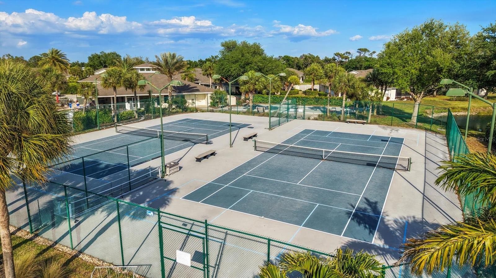 Welcome to Oak Forest Where Your Free Time is for the Beach, Golf, and the Florida Lifestyle! If a simple, low maintenance Florida lifestyle is what you have been looking for, this updated 2 bedroom, 2 bathroom club villa in the gated community of Oak Forest is a great fit. Set on an oversized corner lot in the X flood zone, this home is being sold turnkey furnished, making it easy to settle in and start enjoying Englewood right away. The curb appeal is welcoming with a paver driveway, barrel tile roof, white wrought iron courtyard entry, and mature landscaping that gives the home a comfortable, established feel. Step through the screened front entry and you will find vaulted ceilings, plenty of natural light from the many windows with marble sills, and neutral tile flooring throughout the main living areas, bathroom, and laundry room. The overall feel is clean, bright, and easy to maintain. The layout flows nicely with a great room that opens to the screened lanai through French doors, giving you extra space to spread out or entertain. The kitchen offers wood cabinets with crown molding, stainless steel appliances, granite countertops, a breakfast bar, and a pantry. Just off the kitchen, the oversized breakfast nook works well for both dining and a relaxed sitting area. Updated lighting, including a chandelier in the nook and pendant lights over the bar, adds a nice finishing touch. Both bedrooms feature engineered wood flooring in a warm tone. The primary suite includes a bay window that brings in great natural light, a walk-in closet, and high ceilings. The primary bathroom has a walk-in shower, decorative plant shelf, and a large vanity. The guest bedroom and nearby guest bathroom, with a tub and shower combination and wood vanity, provide a comfortable setup for visitors. The laundry room includes additional cabinetry for storage and connects directly to the two car garage, making everyday tasks more convenient. Out back, the screened lanai is a great spot to relax, with roll down blinds for shade and a ceiling fan to keep the air moving, whether you are enjoying a quiet morning or winding down in the evening. Oak Forest is a maintenance free community that offers a heated pool, clubhouse with fitness center, kitchen, and library, along with a full calendar of activities like potluck dinners, dancing, and card games. For those who enjoy staying active, there are pickleball, tennis, and bocce ball courts, while quieter days can be spent lounging poolside or enjoying time at home. When you are ready to head out, you are less than five miles to Gulf beaches, boating, fishing, and waterfront dining, with golf courses, shopping, medical facilities, and restaurants all nearby. Historic Dearborn Street is also just minutes away, offering local shops, dining, and community events that make Englewood so special. The HOA covers basic cable, exterior lawn care and irrigation, and gate security, allowing you to spend more time enjoying your surroundings and less time keeping up with them. This is a place where everyday living feels easy and everything you need is close by, 1000 Topelis Drive.