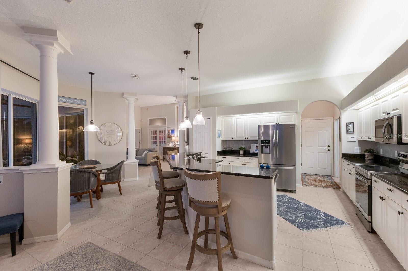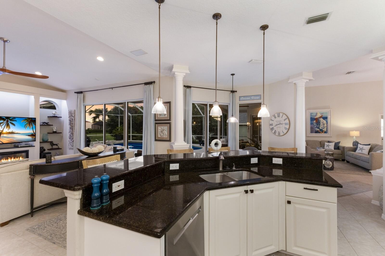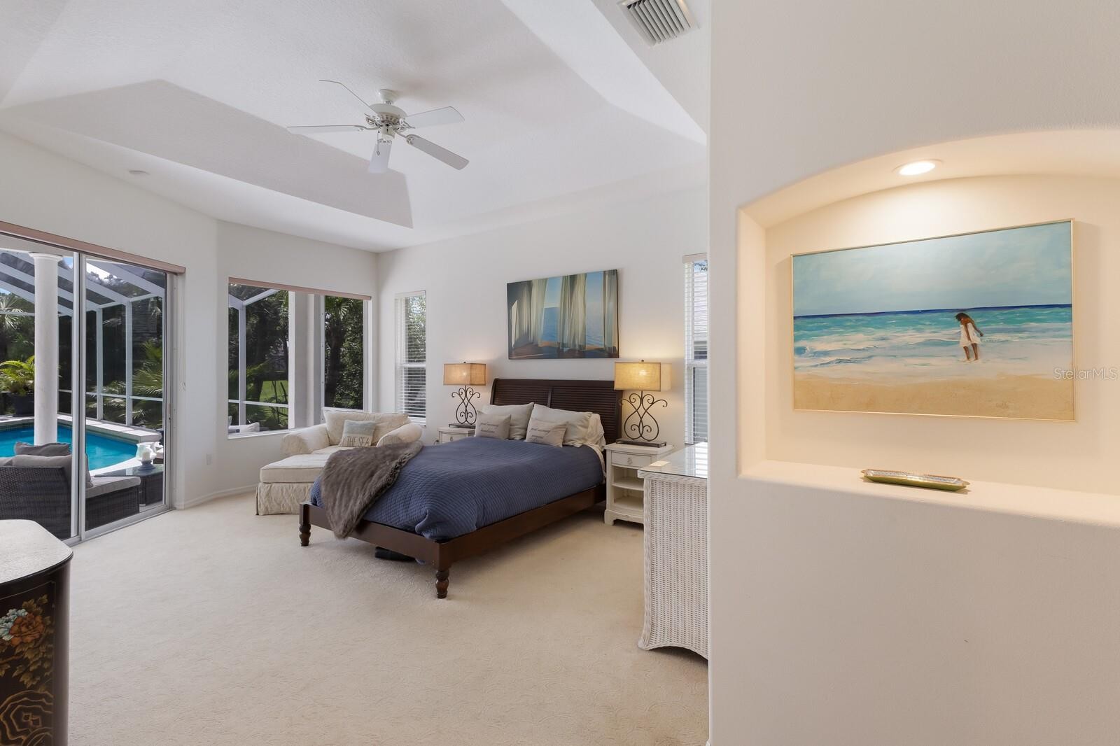 Tucked away on a quiet cul-de-sac in River Club—one of Lakewood Ranch’s most sought-after neighborhoods—this 3-bedroom, 3-bathroom pool home offers 2,679 sq ft of bright, open living space on a private 0.29-acre lot with lush tropical landscaping. Enjoy the best of Florida living with low HOA fees, no CDD fee, and a prime central location. From the moment you step through the double-door entry, you’ll be welcomed by soaring ceilings, an abundance of natural light, and an open-concept layout designed for indoor-outdoor living. Multiple sliding glass doors throughout the home open to the screened lanai with a pool and spa, creating the perfect setting for entertaining or relaxing in total privacy. A den off of the front of the house is the perfect space for an office or home gym. The spacious kitchen features white cabinetry, granite countertops, stainless steel appliances, and a large breakfast bar—flowing into the great room with a fireplace and custom shelving. A separate formal dining room and sunny breakfast nook provide plenty of space for both casual and elegant dining. The primary suite is a true retreat with tray ceilings, views of the pool, a walk-in closet, and a spa-like bath with dual sinks, soaking tub, and walk-in shower. Two guest bedrooms are located on the opposite side of the home for added privacy. Step outside to your own tropical escape, surrounded by mature landscaping. Relax by the pool and spa, dine al fresco under the stars, or simply unwind with the soothing sounds of nature. Enjoy peace of mind with recent upgrades including a new roof (2021), fresh exterior paint (2024), new pool pump (2025), and updated appliances: range (2024), dishwasher (2023), and dryer (2022). New lighting fixtures throughout add a modern touch. Complete with a separate laundry room and an oversized 2-car garage with a golf cart bay, this home combines comfort, style, and location! River Club is centrally located to all that Lakewood Ranch has to offer with a low HOA fee and it is one of the few communities in Lakewood Ranch without a CDD fee. Don’t miss the opportunity to make this River Club residence your own!