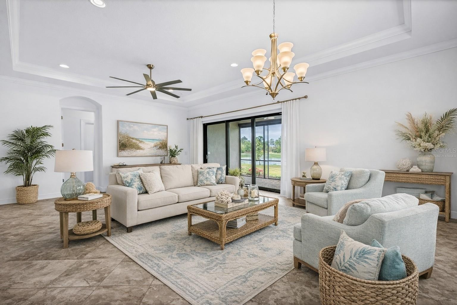 One or more photo(s) has been virtually staged. Welcome to resort-style living in the highly desirable Esplanade at Artisan Lakes, a Taylor Morrison community known for its world-class amenities, lush tropical landscaping, and beautifully maintained surroundings. Perfectly positioned on a tranquil pond homesite, this beautifully appointed 2-bedroom, 2-bath home with office/den offers peaceful water views and a thoughtfully designed layout ideal for both everyday living and entertaining. Inside, you’ll discover a phenomenal open-concept floor plan filled with natural light and seamless flow between the living, dining, and kitchen spaces. The versatile den provides the perfect flex space for a home office, hobby room, or guest overflow, while the split-bedroom design ensures privacy for owners and visitors alike. The spacious primary suite captures serene pond views and offers a relaxing retreat, while the secondary bedroom is well-sized for guests. Hurricane-impact glass adds valuable storm protection and peace of mind. Additional highlights include: • Desirable pond-front homesite with calming water views • Light and bright open living spaces • Flexible office/den configuration • Well-appointed kitchen with ample cabinetry and workspace • Hurricane-impact windows for security and efficiency • Spacious garage with additional storage potential Step outside to enjoy the picturesque setting — perfect for morning coffee, evening relaxation, or entertaining against a beautiful waterfront backdrop. Residents of Esplanade at Artisan Lakes enjoy an amenity-rich lifestyle featuring a resort-style pool, fitness center, clubhouse, tennis and pickleball courts, walking trails, and a vibrant calendar of social activities. Conveniently located near I-75 with easy access to Gulf beaches, shopping, dining, and both Sarasota and St. Petersburg, this home offers the perfect combination of tranquility and accessibility. Experience the best of Florida lifestyle living — schedule your private showing today.