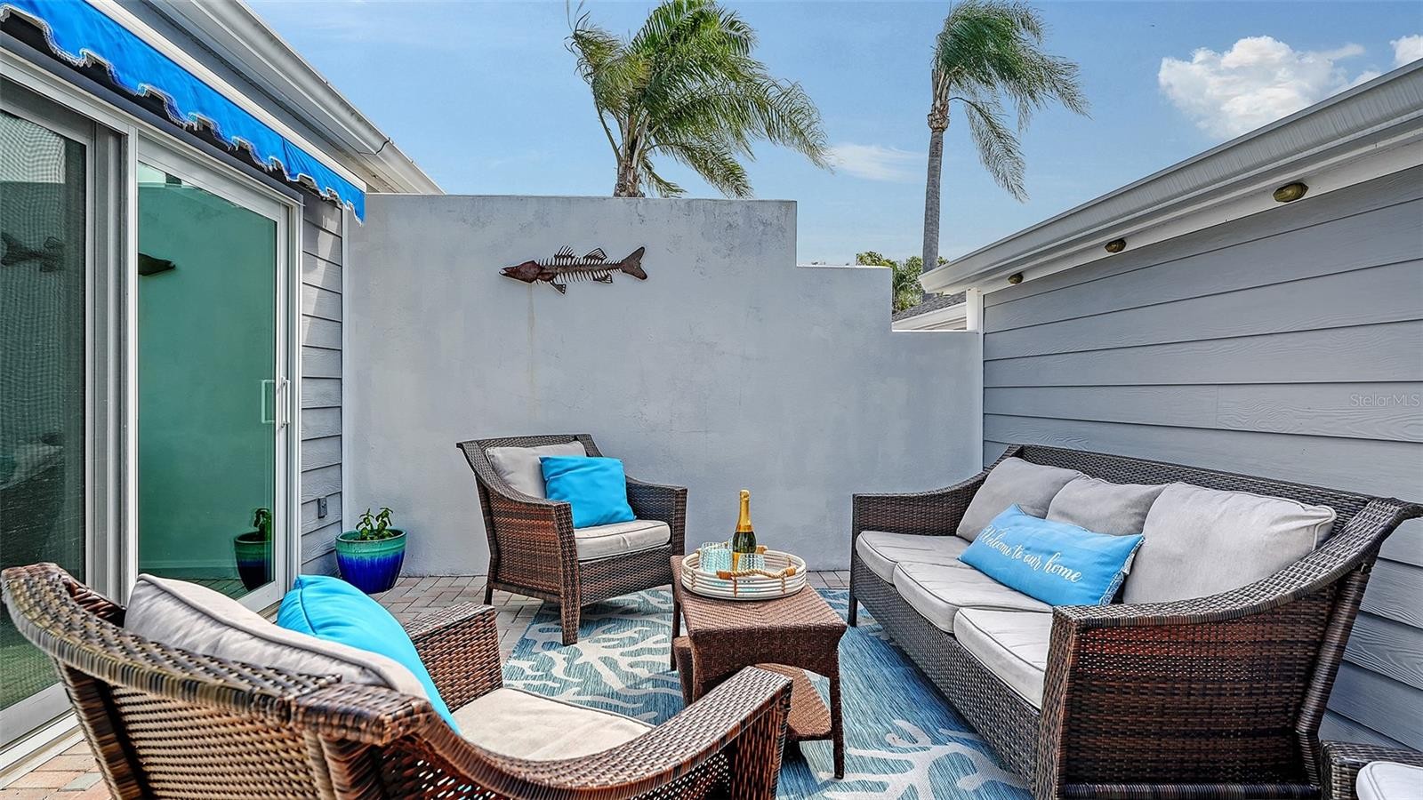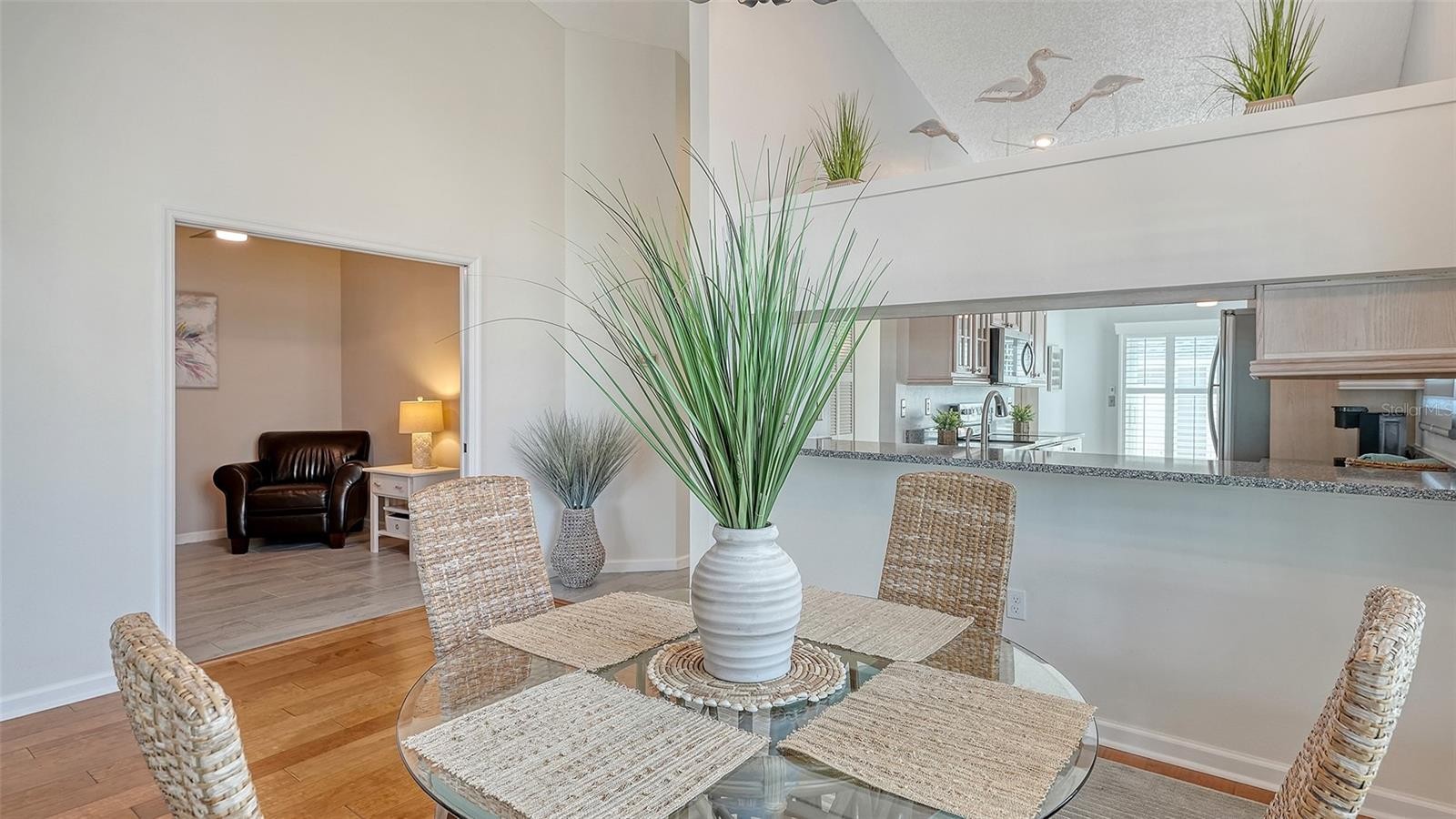 Elegant Waterfront Villa in Perico Bay Club | 2 Bedrooms + Den | 2 Bathrooms Welcome to this beautifully updated end-unit villa in the highly desirable gated community of Perico Bay Club, offering 2 bedrooms, 2 bathrooms, a den/optional third bedroom, and a spacious two-car garage. Perfectly positioned to capture serene water views, this impeccably maintained Grand Cayman model combines comfort, style, and the relaxed elegance of Florida coastal living. The home is filled with natural light thanks to large PGT impact windows and multiple sliding glass doors, while soaring ceilings and an open floor plan create an airy, inviting atmosphere that showcases the tranquil lake views from nearly every angle. Skylights and ceiling fans throughout further enhance the bright and comfortable living spaces. The sun-filled kitchen and breakfast nook are surrounded by large windows with plantation shutters and upgraded window treatments. The kitchen features granite countertops, stainless-steel appliances, under-cabinet lighting, a pantry, and beautiful wood cabinetry with dovetail drawers, offering both elegance and abundant storage. The dining area flows seamlessly into the spacious family room, where 8-foot hurricane-rated sliding glass doorsopen to the large enclosed Florida room. From here, step out onto the new Trex balcony overlooking the peaceful lake, the perfect place to relax and enjoy the natural beauty of the surroundings, including birds and turtles in their serene habitat. The primary suite, located just off the family room, features a lovely bay window that fills the space with natural light. The spacious walk-in closet is custom designed by California Closets, while the updated bath offers wide plank tile flooring, dual vanities, and a beautiful glass-enclosed walk-in tile shower with bench seating. Guests will enjoy the generously sized second bedroom, featuring volume ceilings and sliding glass doors leading to a private front patio with Trex decking, creating a comfortable outdoor space to relax. A Hunter Douglas blackout shade adds both comfort and privacy. The den or optional third bedroom features double doors, high ceilings, a skylight, and a lighted ceiling fan. Currently used as a den, it can easily be converted into an additional bedroom if desired. Other important features include: NEW ROOF-MARCH OF 2023, HVAC-JULY 2017 & HOT WATER HEATER-JANUARY 2022. Residents of Perico Bay Club, a beautifully landscaped gated waterfront community near Palma Sola Bay and the Gulf of Mexico, enjoy exceptional amenities including a fitness center, community pools, tennis & pickleball courts, kayaking, shuffleboard, scenic walking paths, and a fishing dock. This prime location is just minutes from the world-famous beaches of Anna Maria Island and directly across the street from Robinson Preserve, offering miles of hiking and biking trails, kayaking, and spectacular coastal nature views. Experience the very best of Florida waterfront living in this peaceful coastal retreat.