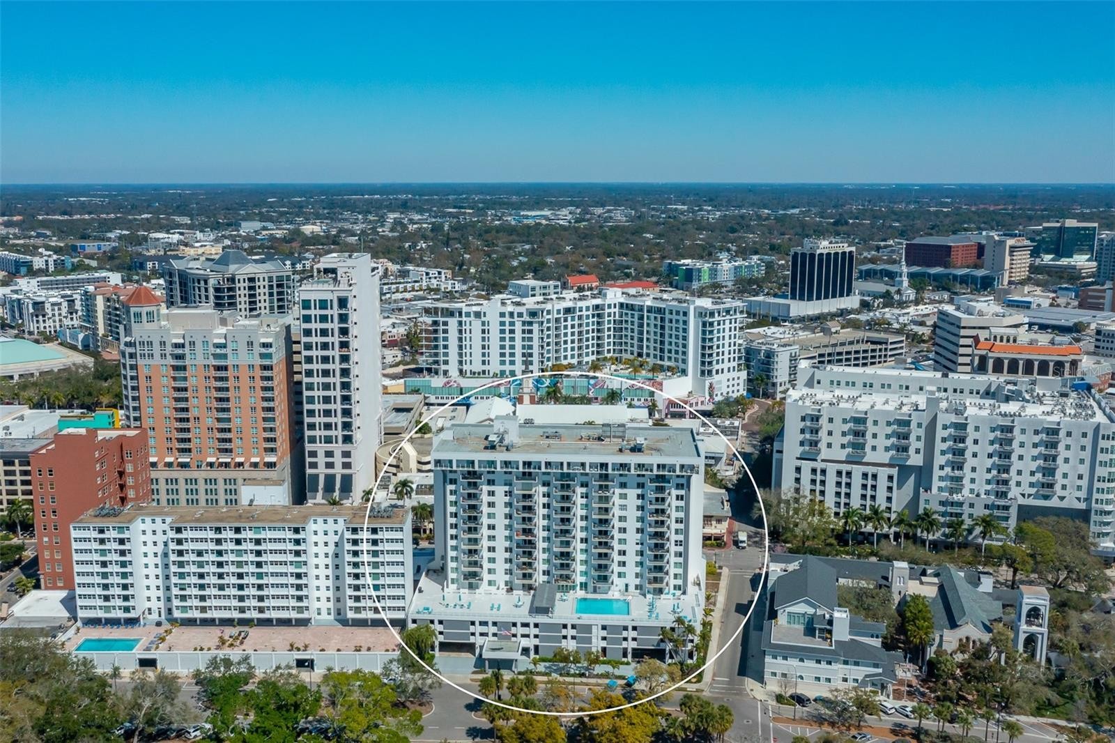 Welcome to Residence 7D at The 101, a beautifully renovated two-bedroom condominium in one of Downtown Sarasota's most structurally sound and well-located buildings, directly across from Sarasota Bay, Marina Jacks and Bayfront Park. Following a comprehensive building modernization that brought the property into compliance with current hurricane and structural standards, The 101 has emerged as a highly desirable downtown residence, offering owners both long-term peace of mind and exceptional value in Sarasota's urban waterfront district. Inside, this thoughtfully updated residence features a bright and open two-bedroom, two-bath floor plan with city views overlooking South Palm Avenue and a private covered balcony perfect for enjoying Sarasota's evening skyline. The updated kitchen is designed for everyday living and entertaining, featuring granite countertops, quality cabinetry with integrated pantry storage and stainless-steel appliances. The primary suite offers a walk-in closet and up-dated en-suite bath, while the guest bedroom and renovated second bath provide comfort with a split floor plan provides privacy. Residents enjoy secured attached garage parking, and this unit comes with 1 deeded parking space and also has access to guest parking. Positioned directly across from Sarasota Bayfront Park and Marina, residents enjoy immediate access to the city's waterfront, walking paths, and sunset views. The building sits just steps from Palm Avenue galleries, the Sarasota Opera House, theaters, restaurants, cafés, boutique shopping and all that Downtown Sarasota living has to offer. Come and see for yourself the best value Downtown Sarasota has to offer.