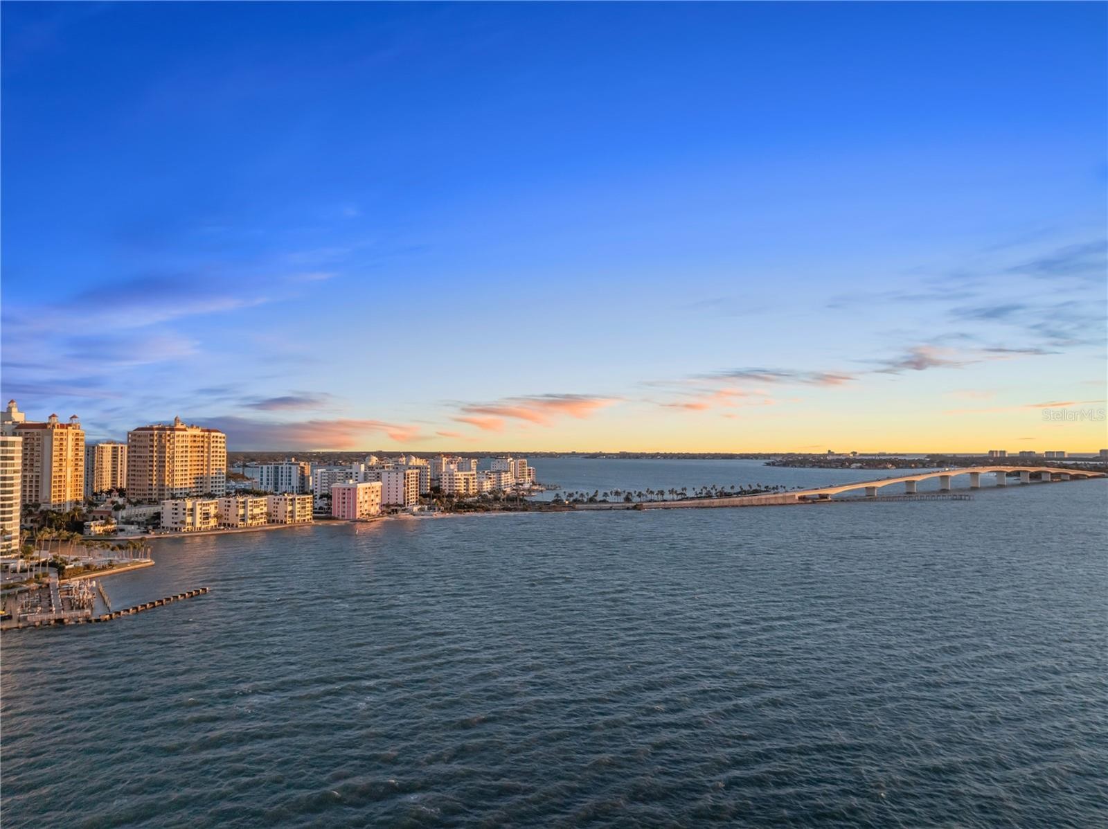 Rare opportunity to own in the architecturally significant Lawrence Pointe community, designed by renowned Sarasota School of Architecture architect Tim Seibert. This spacious fourth-floor residence offers over 2,000 square feet of living space featuring three bedrooms and three bathrooms within a light-filled floor plan designed to capture tranquil Sarasota Bay views while providing comfortable everyday living and effortless entertaining. The open layout includes a wet bar ideal for hosting, as well as a convenient office nook perfect for remote work or study. The third bedroom is currently configured as a flexible living space, easily adaptable as a guest suite, den, media room, or home office to suit your needs. A generous utility room includes a full-size washer and dryer, laundry sink, and additional storage, adding practicality rarely found in condominium living. The boutique, waterfront community offers a heated bayfront pool, secure entry, and covered parking, all just minutes from downtown Sarasota’s dining, shopping, arts, and marina district. Lido Key and St. Armands Circle are only a short drive away, offering the perfect blend of urban convenience and coastal lifestyle. A timeless waterfront residence in one of Sarasota’s most desirable and architecturally celebrated locations.