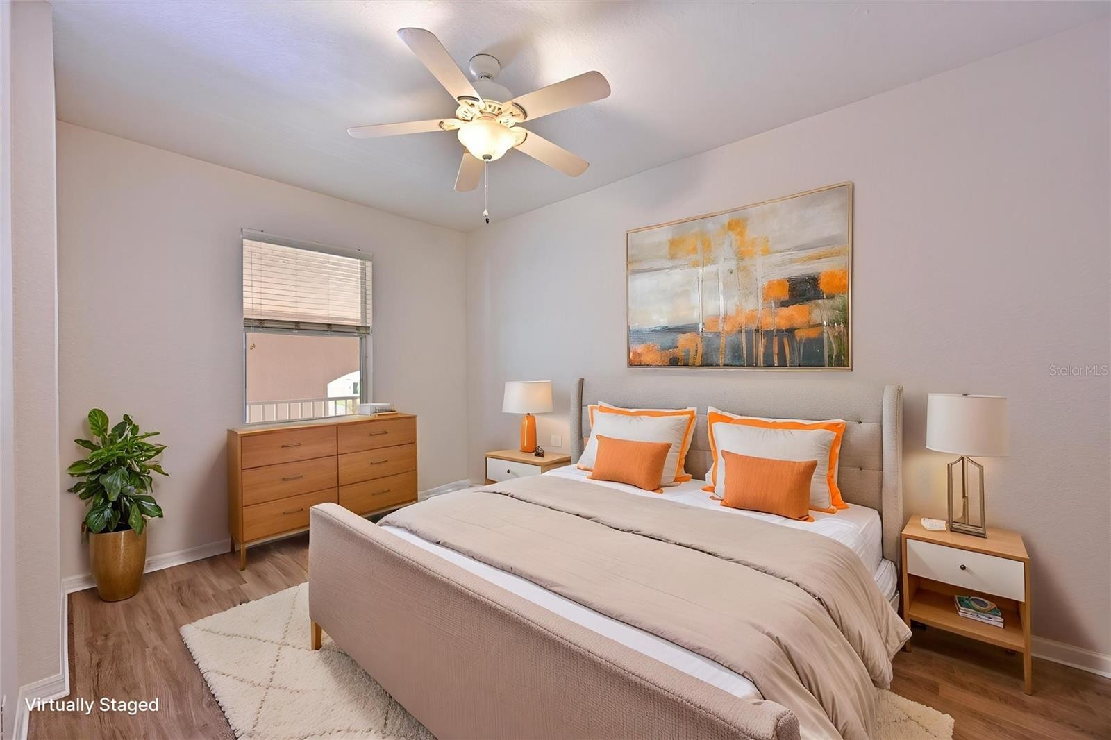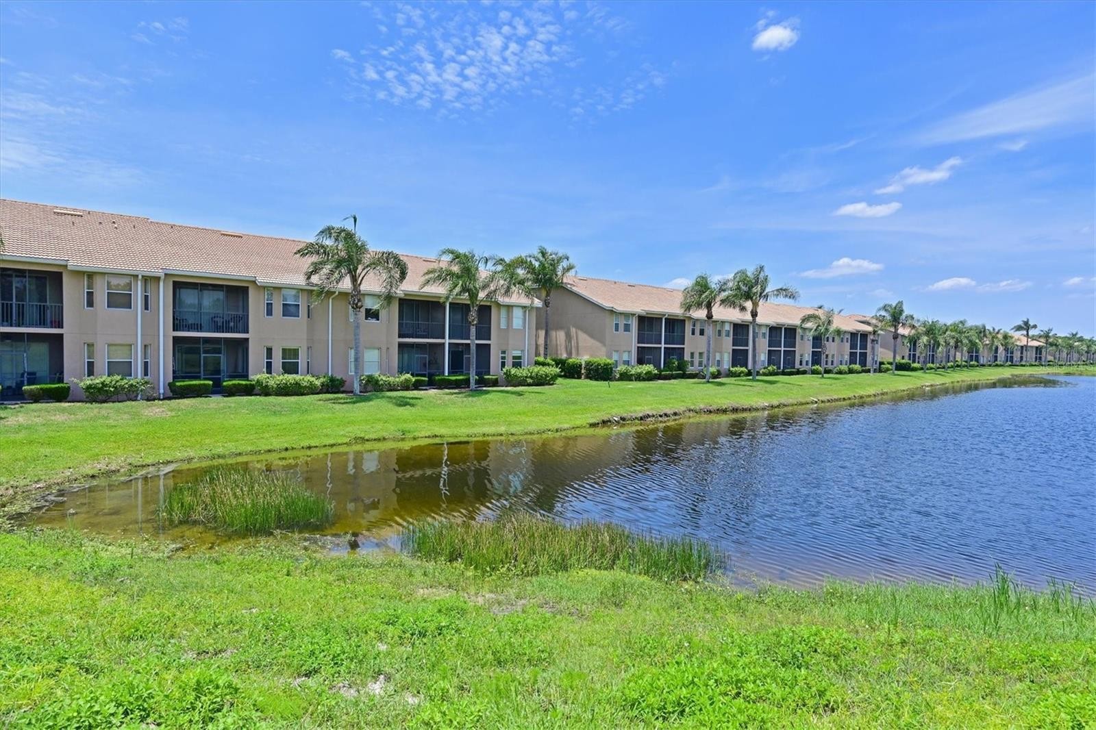 One or more photo(s) has been virtually staged. Golf course living with water views and affordability just became your reality! This newly painted unit features an open concept with soaring ceilings and new luxury vinyl flooring in the bedrooms. All you need to do is make the right decision and call this condo yours. One covered, dedicated parking spot sits directly in front of the stairs leading to your front door. Inside, your imagination will bring the space to life. For those looking to acquire an income producer, this unit has a long history of returns that will make any accountant smile, and it’s ready to go. The location feels like it's in the country, yet it's close to everything you need. You will have easy access to numerous amenities, including a clubhouse with a restaurant, a recreation center, a fitness center, and courts for tennis, pickleball, volleyball, and bocce ball—plus two pools and a hot tub. You are also located near highways that afford easy commuting to Tampa, St. Pete, Sarasota, and Lakewood Ranch. Enjoy a short drive to multiple world-class beaches like Anna Maria Island and Siesta Key. There are plenty of shopping options, from Costco and Target to the new Whole Foods (opening soon), Aldi, and more! New restaurants open weekly, and several medical facilities are just minutes away. Make sure to come check this one out!