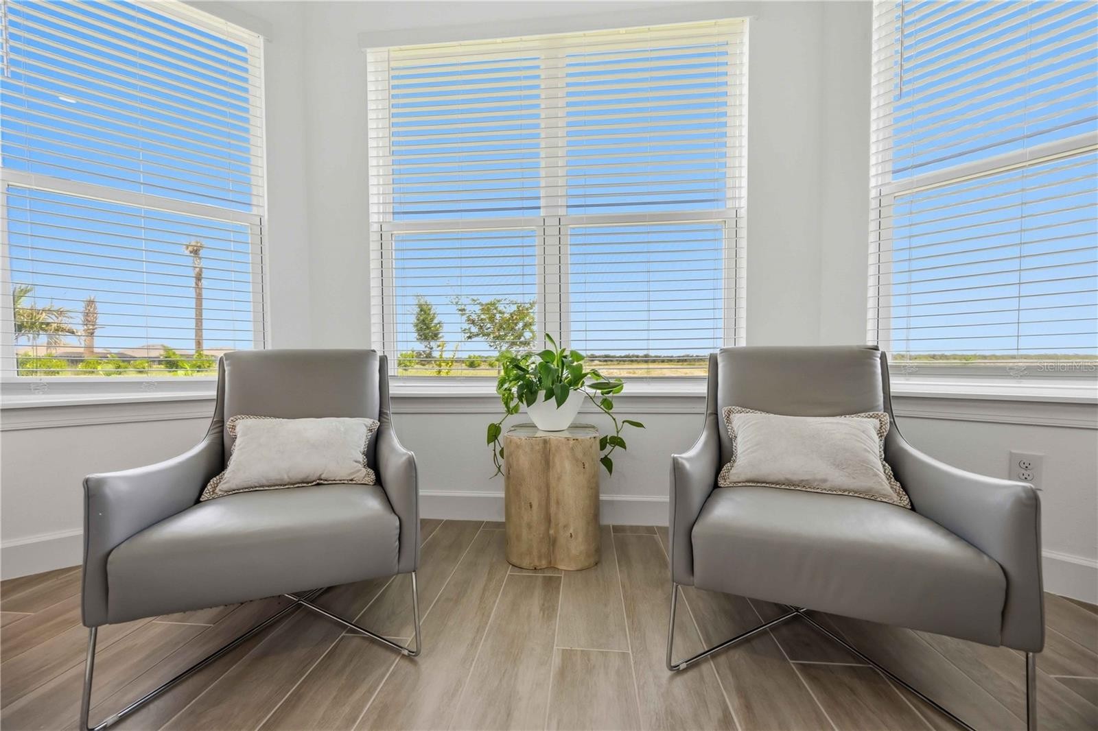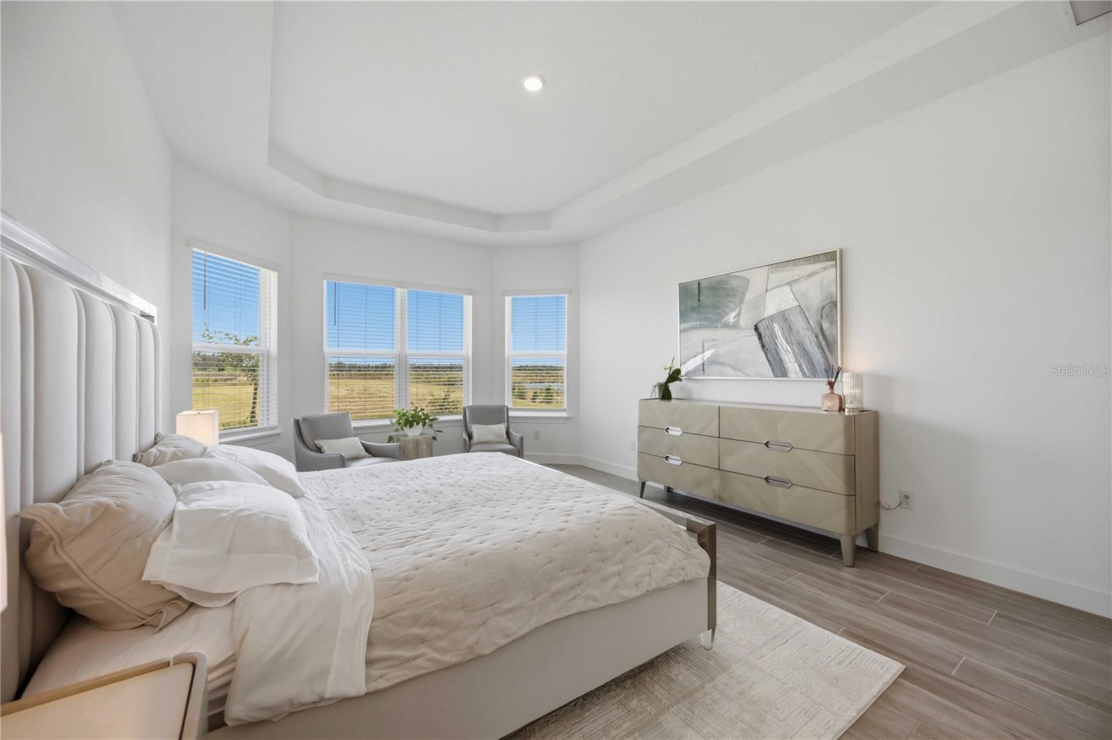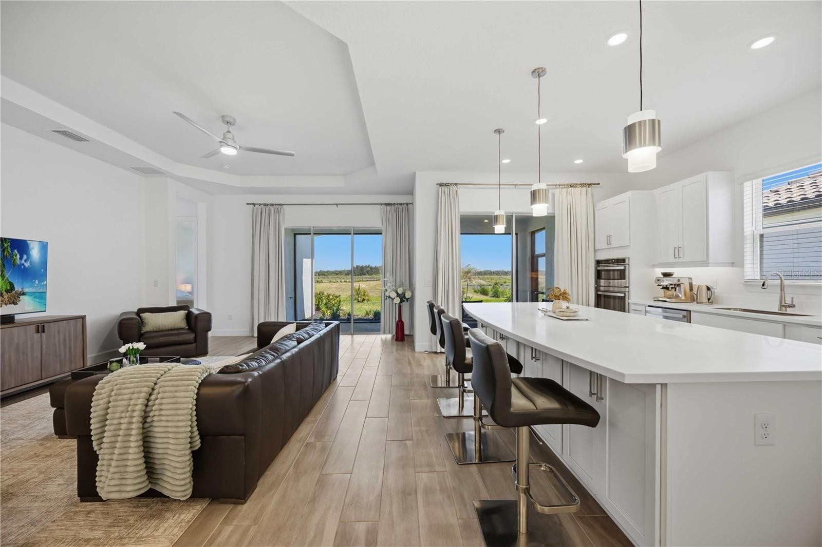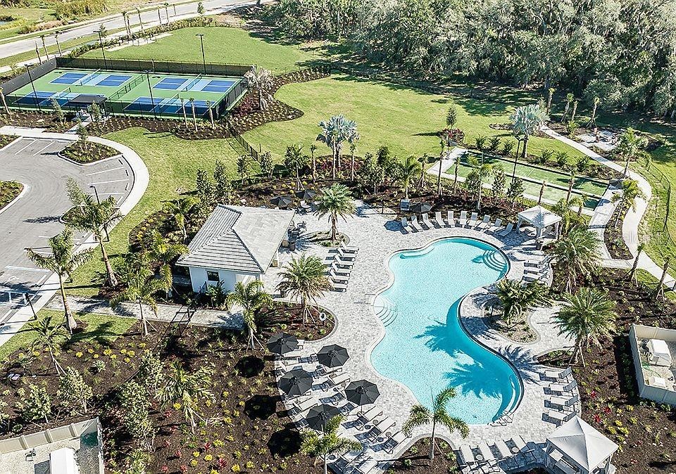Spacious and bright Lazio model home available for long-term lease in Esplanade at Skye Ranch in Sarasota. Three bedrooms, three full baths, a large office with pocket doors, and an oversized tandem garage — all on one level with porcelain tile flooring throughout. The living, dining, and kitchen areas flow together in a layout suited for both everyday living and entertaining. Two of the three bedrooms have en-suite baths; the third is steps from the home's third full bath. Spacious and bright office — can be used as a fourth bedroom, home office, or sitting room. The office sliding pocket doors provide extra privacy. The screened lanai overlooks a peaceful preserve. Has hook-ups for outdoor TV and grill. The tandem garage fits two vehicles plus room for a golf cart, extra storage, or a workout setup. Residents have access to three amenity areas within the community. Rendezvous Park — just steps away — has a pool and spa, private cabanas, fireside seating, bocce and pickleball courts, a bark park, and an event lawn. The Hub is a 25,000+ sq ft amenity center with a zero-entry resort pool (also called beach pool), a junior Olympic lap pool, a hot tub, a splash park with a slide, a 24-hour access fitness center, an indoor basketball court, pickleball courts, a dog park, and miles of trails through lakes and natural preserves. A full-time lifestyle director runs events year-round. Coming soon, The Venue will add a third pool and spa along with a Bahama Bar & Grill, fitness center, bocce courts, bark park, and fireside seating. Minutes from Clark Road and I-75. About 25 minutes to Siesta Key Beach, downtown Sarasota, and UTC Mall. Available unfurnished.