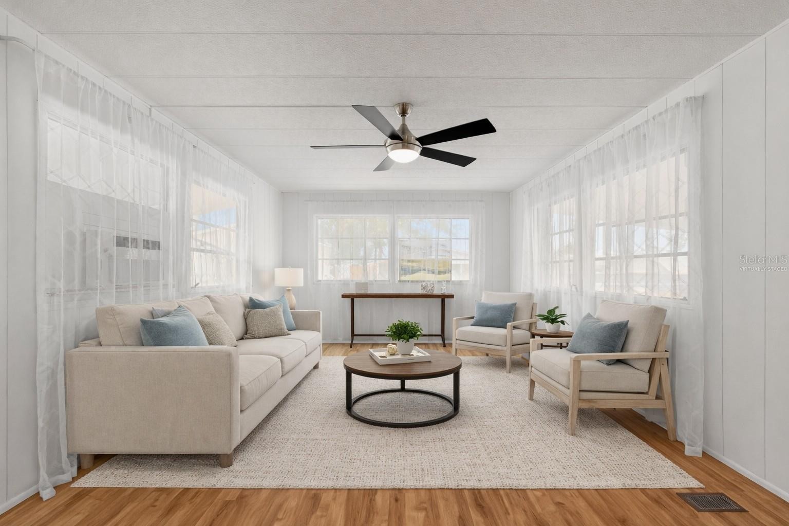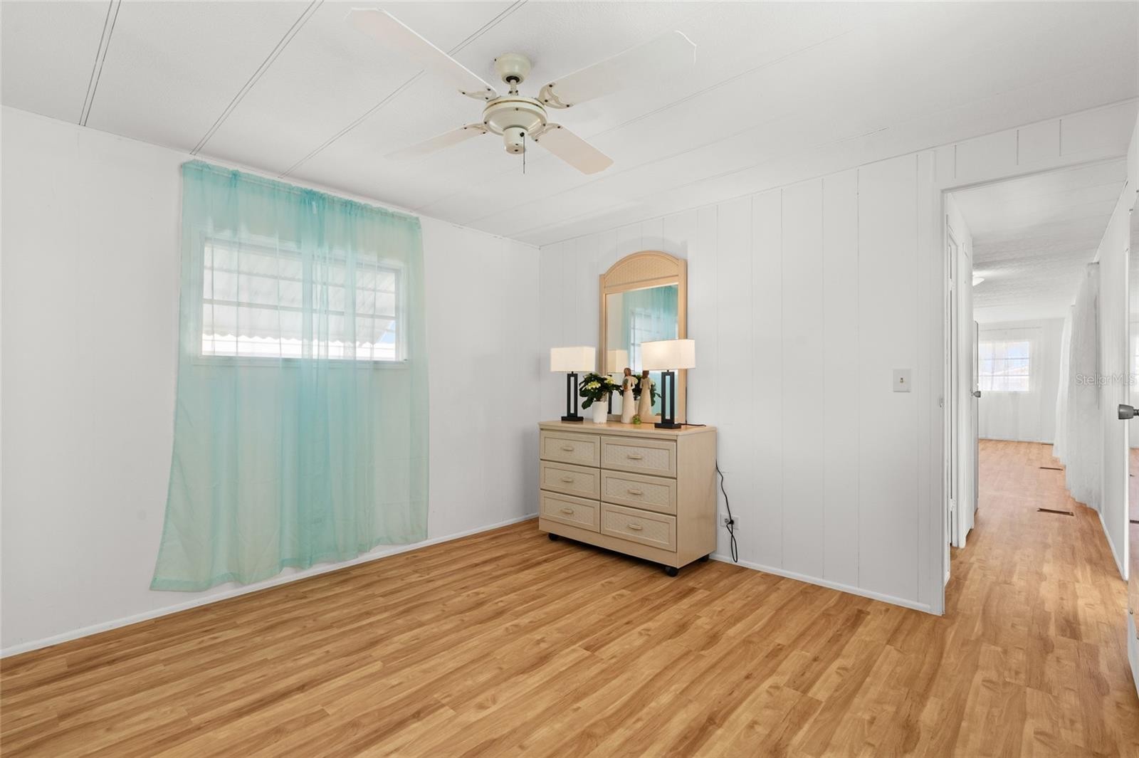 One or more photo(s) has been virtually staged. Welcome to 1012 50th Ave Plz West! Excellent opportunity to purchase this beautifully maintained, 2 bedroom / 1.5 bathroom home in a community with NO HOA, NO age restrictions, and land ownership - no lot rent! This mortgagable manufactured home features a conveniently split floor-plan and has newer light fixtures, creating a clean, updated feel throughout. Brand new luxury laminate flooring enhances the bright living space, while the functional kitchen and spacious layout provide everyday comfort. Bedroom 1 offers two closet spaces for ample storage. Bedroom 2 includes a closet/utility area with an attached half bath, adding flexibility and convenience. Ideally located near popular restaurants, beautiful Gulf beaches, and Sarasota International Airport, this home would be perfect as a primary residence, snowbird getaway, or investment opportunity!