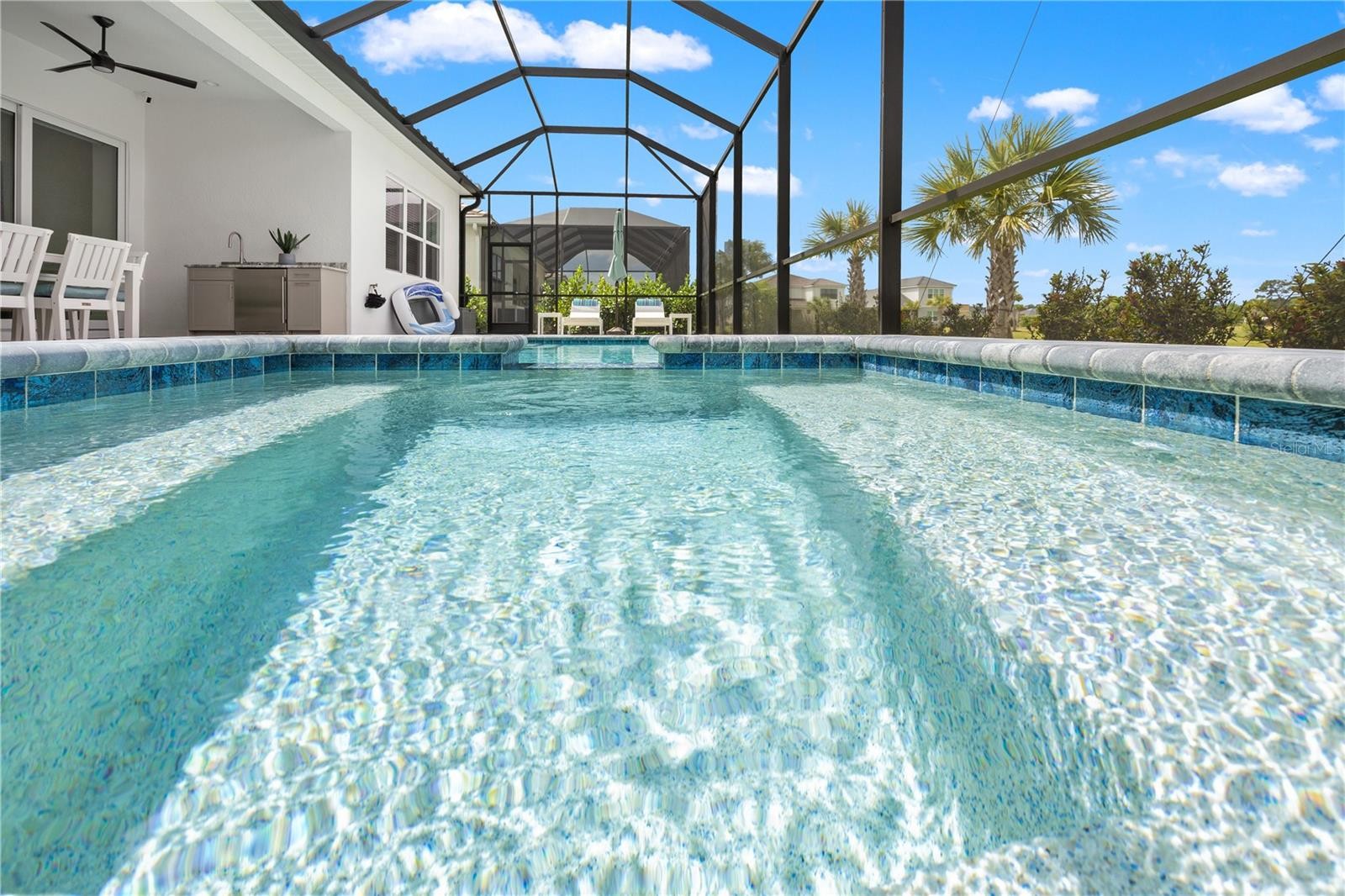 Immaculate and beautifully upgraded, this nearly new residence completed in 2025 in Grand Park offers the perfect blend of luxury, comfort, and immediate move-in convenience—why wait to build when your dream home is ready now? PRIDE OF OWNERSHIP SHOWS throughout this exceptional Harvest 3 model, featuring designer-appointed finishes from including custom lighting and upgraded ceiling fans and a two station outdoor kitchen convenience for your outdoor entertaining. Thoughtfully designed for both everyday living and entertaining, this home offers 3 bedrooms PLUS a den, 3 full baths, and a half bath conveniently located by the pool area, and a spacious 3- car garage. The split floor plan provides privacy, while soaring 10-foot coffered ceilings and abundant natural light create an open, airy feel. At the heart of the home, the chef’s gourmet kitchen is a true showpiece, complete with a natural gas 5-burner cooktop, built-in wall oven, and an oversized quartz island—perfect for gathering with family and friends. The upgraded gold hardware and upgraded pendant lighting add elegance Step outside to your private outdoor oasis, completed after possession, featuring a custom heated pool and spa powered by natural gas, a brick paver deck, and a spacious covered lanai. The fully equipped outdoor kitchen boasts a professional grill, exhaust hood, granite countertops, ideal for entertaining or relaxing in your own slice of paradise. The luxurious primary suite is a true retreat, offering walk-in closets and a spa-style bath that must be seen to be appreciated. Additional updates and extensive enhancements where many original builder features have been replaced with higher-quality fixtures and finishes. This home truly cannot be replicated at this price. Grand Park is GATED and enjoys WORLD CLASS AMENITIES * 2 Resort-style Pools, Clubhouse, Fitness Center + Aerobics Studio, Pickleball, Sports Court, Tennis Courts , and Dog Park and conveniently located near I-75 to get to WORLD CLASS BEACHES One look—and you’ll fall in love. Happy to give you the tour—make your appointment today