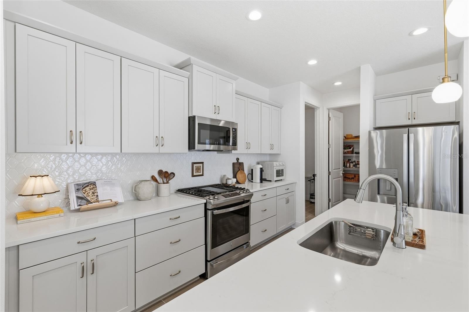 Welcome to this beautifully designed two-story home located in the highly desirable North River Ranch community of Parrish. Thoughtfully laid out for comfort and functionality, this spacious residence features a light and bright open-concept living area where the kitchen, dinette, and main living room flow seamlessly together. Large windows fill the space with natural light, creating an airy atmosphere ideal for both everyday living and entertaining. The kitchen offers generous counter space, modern cabinetry, a large island overlooking the living area, a walk-in pantry, and natural gas connections — a desirable feature for cooking and efficiency. A dedicated laundry room and convenient half bath are also located on the main floor. The primary suite is privately situated on the first floor and includes an en-suite bathroom with dual vanities, a spacious walk-in closet, and a comfortable retreat-style layout. Upstairs, you’ll find three additional bedrooms, a full bathroom, and a large loft space that provides flexibility for a second living area, home office, or media room. Step outside to enjoy the enclosed patio and fenced backyard, offering space to relax or entertain. Additional highlights include a two-car garage, extended driveway, and attractive front views overlooking water and mature trees that enhance the home’s curb appeal. Residents of North River Ranch enjoy a wide range of community amenities, including multiple resort-style pools, clubhouses, parks, playgrounds, trails, recreation spaces, and even a neighborhood skate park, all designed to support an active and connected lifestyle. Conveniently located near shopping, dining, and major commuting routes, this move-in ready home offers modern living in one of Parrish’s most sought-after master-planned communities.
