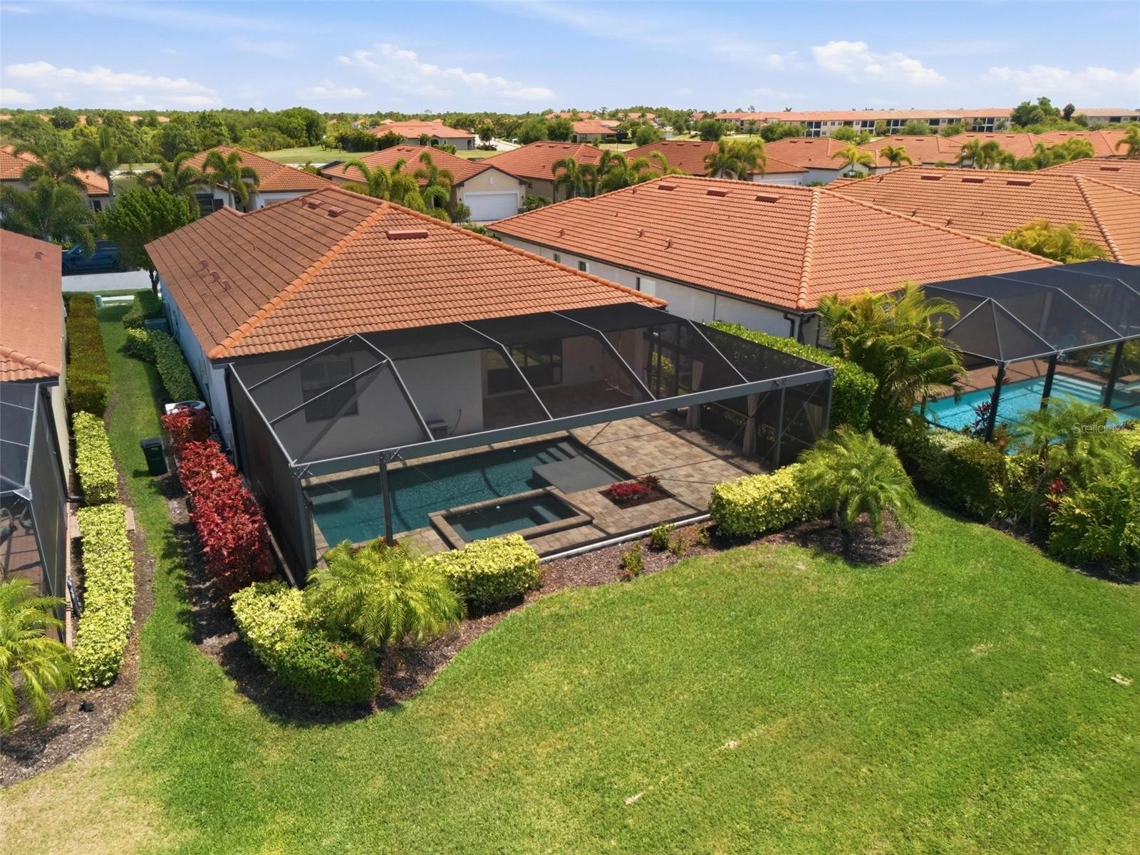One or more photo(s) has been virtually staged. CUSTOM POOL & SPA, ON THE POND WITH SUNSET VIEWS!! What does $599,900 get you at 10157 Colubrina in Sarasota National? A 2020-built, move-in ready pool home with 3 bedrooms, 3 full bathrooms, and 1,855 square feet of thoughtfully designed living space, including a stunning heated pool and spa featuring a sun-shelf and fountain, overlooking a serene pond with unobstructed views of the evening sky (southwestern facing lanai). And no, this home is NOT LOCATED IN A FLOOD ZONE, and no golf membership is required. Since this home was built in 2020, buyers will benefit from modern construction standards, energy-efficient systems, and the kind of peace of mind that newer builds provide. The open floor plan connects seamlessly to an outdoor living area made for Florida's year-round sunshine. The luxe feeling inside is indicative of its crown molding throughout parts of the home, and Plantation Shutters in the windows. The kitchen is large and spacious, featuring a plethora of cabinets for your countertop appliances and cooking tools, among a large walk-in pantry. Stainless Steel appliances are featured in the kitchen, to include a Refrigerator, Range, Microwave, and Dishwasher. The primary suite features two walk-in closets with customized shelving, a view of the backyard, and a beautiful ensuite bathroom featuring a double vanity sink, walk-in shower, and private water closet. Step through the main living areas of the home into the two other living areas of the home, distinctly separated to create bedroom privacy. Bedroom 2 features a full bathroom in the hallway, with extra storage closets for your use. Bedroom 3 features a full bathroom ensuite across the hallway just beyond the laundry room. Washer + Dryer are included in the property sale! ALSO INCLUDED are the Aquasana Rhino Whole House Water Filter, and the Salt-Free Water Conditioner (Descaler) Systems. Stepping outside to the back lanai, you'll notice its large size and a gorgeous panoramic screen enclosure that frames a peaceful pond backdrop, and delivers some of the most coveted sunset views in the community. Whether you are unwinding in the heated spa at the end of the day or hosting friends for a weekend evening poolside, this outdoor space sets the tone for how you will live here every single day. Sarasota National is one of Venice's most sought-after master-planned communities, offering resort-caliber amenities including a lagoon pool, fitness center, on-site dining, tennis, pickleball, and a packed social calendar. This listing does not include golf membership, which translates directly to lower carrying costs while still giving you full access to everything else the community has to offer. The combination of a heated pool and spa, panoramic screened enclosure with direct pond-facing sunset views, a 2020 build, no flood zone designation, and a newly improved price of $599,900 makes this one of the more compelling options available in the community right now. SCHEDULE YOUR SHOWING TODAY!