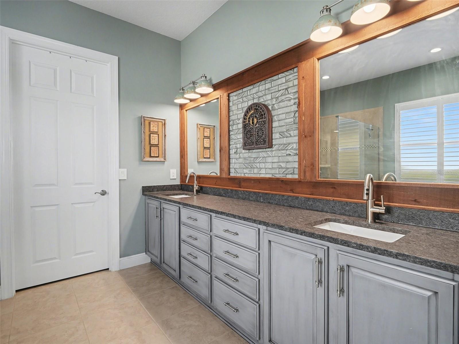 Experience luxurious waterfront living in this extensively updated residence, where nearly every detail has been thoughtfully upgraded. The curb appeal is immediate, featuring a freshly painted exterior, brand-new professionally designed landscaping with accent lighting, and a widened paver driveway leading to a garage finished with epoxy floors and built-in storage. Upon entering, you are greeted by a charming coastal tile accent in the entry niche, setting the tone for the sophisticated interior. Architectural details abound throughout the home, including tray ceilings, intricate crown molding, and updated custom light fixtures and fans. French doors open to a dedicated office space complete with a built-in closet. The heart of the home is the kitchen, which has been beautifully refreshed with updated cabinets and a new neutral tile backsplash. It is fully equipped with granite countertops, a gas range, pantry storage, and a reverse osmosis water system. The living room is highlighted by striking wood beams on the ceiling, while the dining area features a custom wood accent wall and custom plantation shutters. The guest wing is equally impressive, featuring a convenient Jack and Jill bathroom between the second and third bedrooms, updated with new cabinets and granite surfaces. The private primary suite is a true retreat, designed with a focus on relaxation and coastal elegance. The bedroom is defined by a beautiful tray ceiling with shiplap wood detailing and a contemporary ceiling fan, while large windows with plantation shutters offer serene waterfront views. This leads into the spa-like ensuite, which boasts a sprawling double vanity with new granite, grey-washed cabinetry, and custom-framed mirrors centered around a decorative tile niche. The space is completed by a deep soaking tub and a separate glass-enclosed walk-in shower featuring decorative tile accents. The true magic happens outdoors. An extended wall-to-wall slider door opens the living area completely to the expansive lanai, which is protected by upgraded "noseeum" screening and features motorized screens for ultimate comfort. Enjoy the ambiance of an optional water fountain before taking a dip in the brand-new, heated and cooled saltwater swimming pool with a cascading waterfall feature. A new paver walkway leads down to your private waterfront dock, fully equipped with power, water, a fish cleaning station, and a 12000lb lift. For the complete package, the current pontoon boat is negotiable at a $15,000 value. Practical upgrades throughout the property include a whole-home water softener, a utility sink in the laundry room, and an existing connection for a generator (generator negotiable).