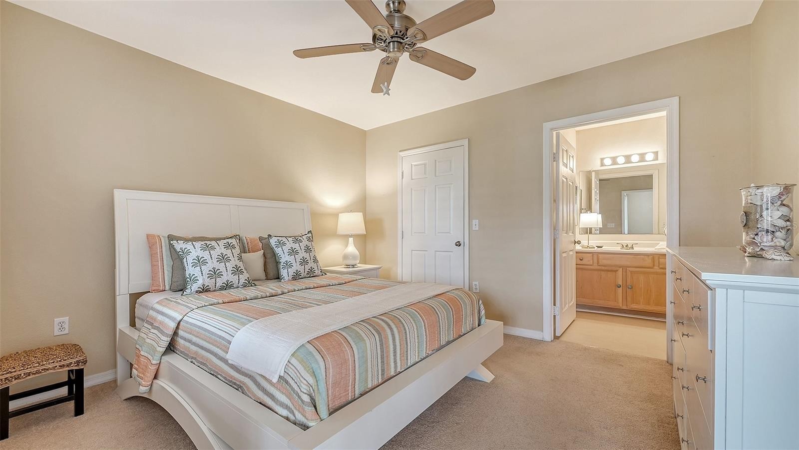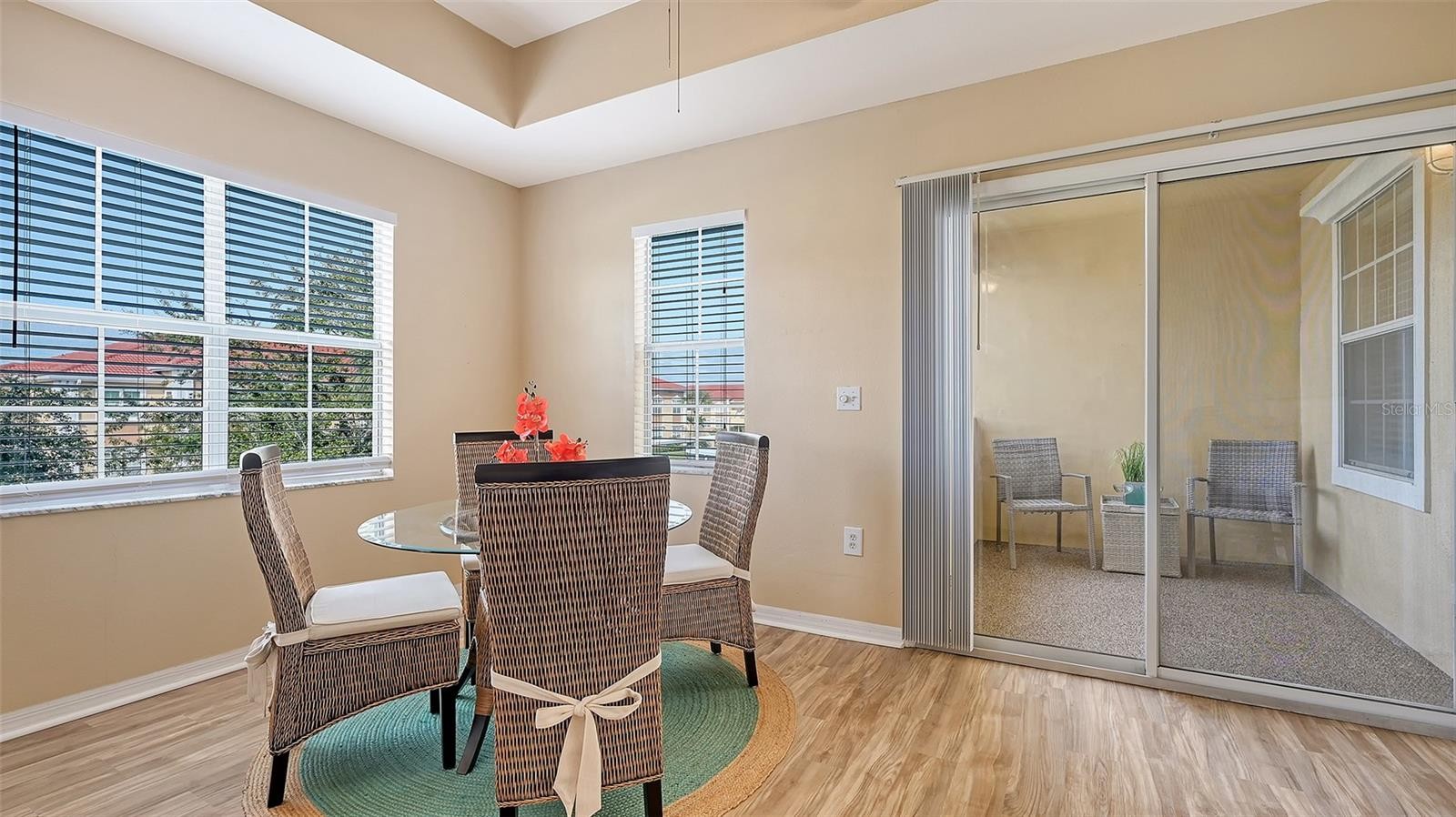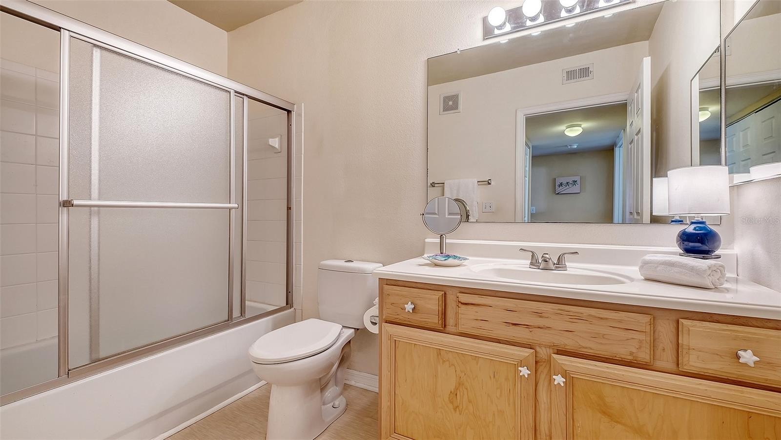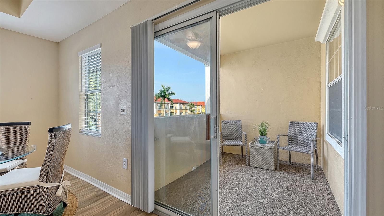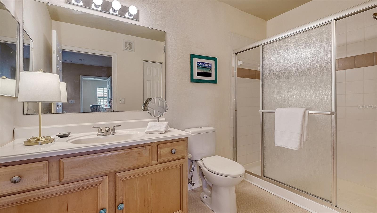 Move right in! A preferred second floor condo completely furnished in the gated desirable community of Villagio. Ideally located right near downtown and the beaches but not the high price!. Relaxed coastal modern decor and natural light-filled great room features warm, neutral tones, tasteful furnishings and an outdoor patio for capturing the fresh Florida breeze with your morning coffee or evening cocktail. The open living, dining and kitchen areas, are perfect for everyday comfort or entertaining. The well designed kitchen offers wood cabinetry, every appliance you will need and a tall pantry next to the refrigerator. Both bedrooms provide generous closets window blinds and bedding. The primary suite includes an en-suite bath and queen size bed. The guest bedroom has 2 single beds, night stand, lamp and bed linens. Located next to the guest bathroom for your convenience and privacy. A condo that is perfect for a full-time residence, seasonal getaway, or investment opportunity. Vacant and Easy to Show!