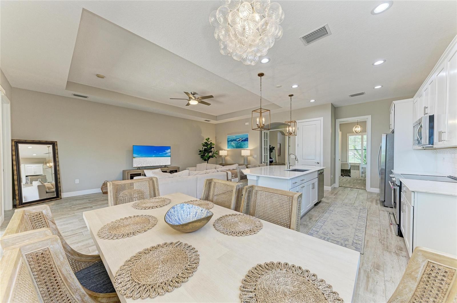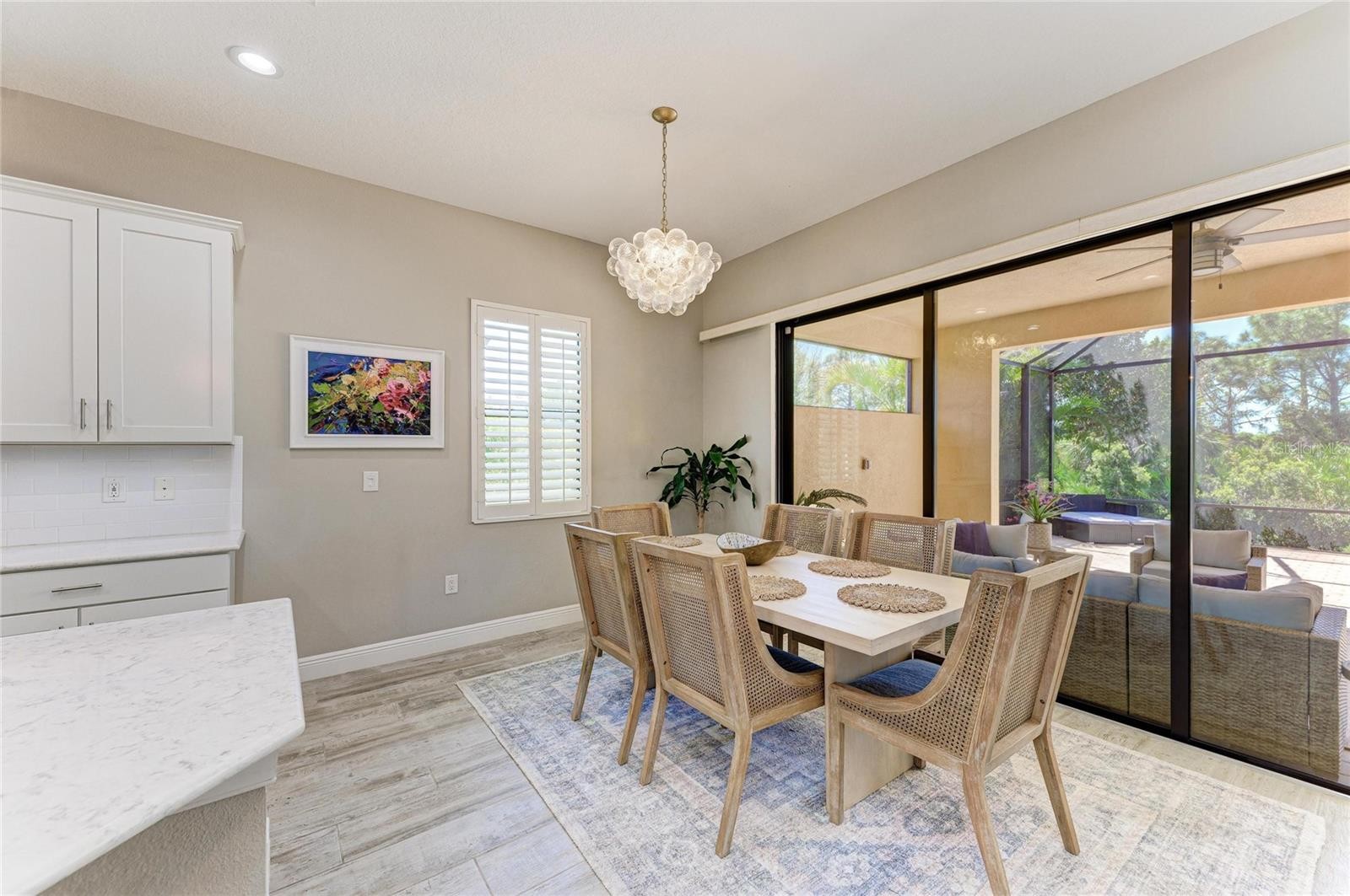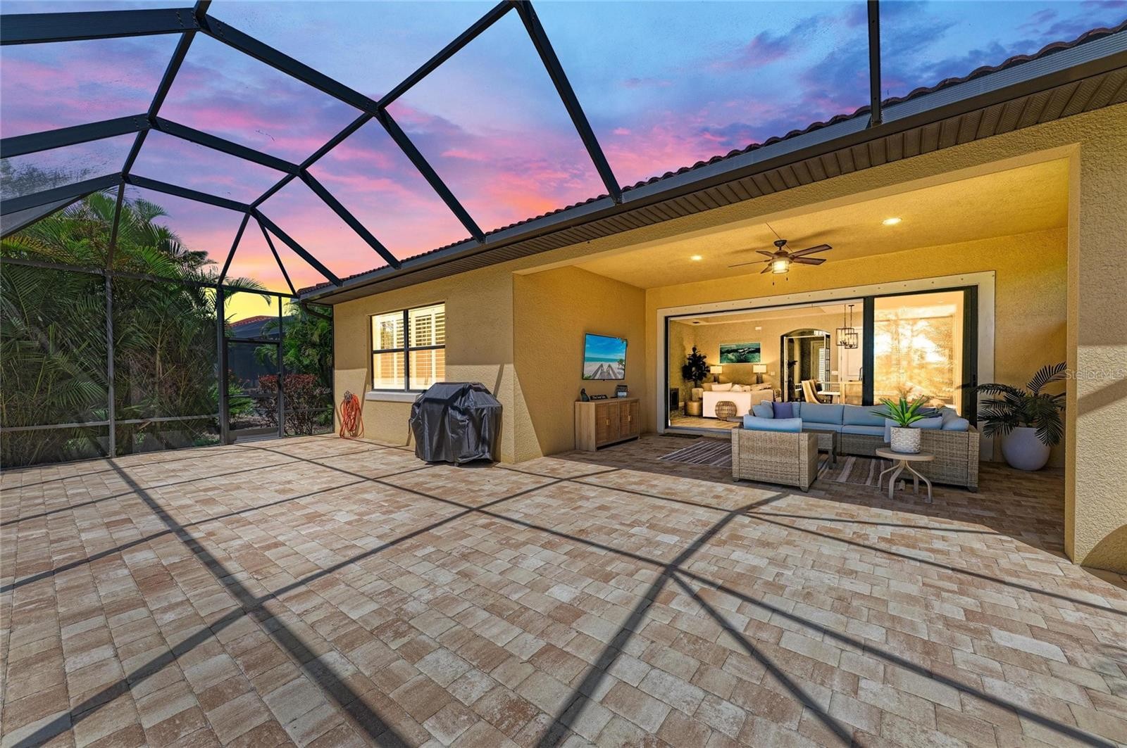 Experience tranquil Florida living in this stunning WCI-built home, perfectly positioned on a premium lot with a private, serene preserve view in an Audubon-certified community. This light-filled residence offers 3 bedrooms plus a den/office with French doors across 2,044 square feet of thoughtfully designed open living space. Elegant upgrades are found throughout, including quartz countertops in the kitchen and baths, wood-look plank tile flooring in the main living areas, solid wood cabinetry with crown molding, tray ceilings, and recessed lighting. The spacious kitchen features stainless steel appliances, a pantry, and a large island that flows seamlessly into the great room—ideal for entertaining. Expansive telescoping glass sliders open to an extended screened lanai with pavers that spans the entire width of the home and is pre-plumbed for an outdoor kitchen—perfect for enjoying peaceful preserve views and abundant birdlife. The primary suite offers a relaxing retreat with a garden tub, separate shower, and dual sinks. Additional features include a whole-house water filtration system, hurricane shutters, a tile roof, paver driveway, and a 2-car garage. Located in a maintenance-free community with no required golf membership, residents enjoy a 30,000 sq. ft. clubhouse with resort-style amenities including a lagoon pool with lap lanes, hot tub, tiki bar, fitness center, tennis, pickleball, bocce, dog park, on-site dining, and a full calendar of social events. All just minutes from top-rated beaches, dining, and shopping—this home offers the perfect blend of luxury, nature, and lifestyle.