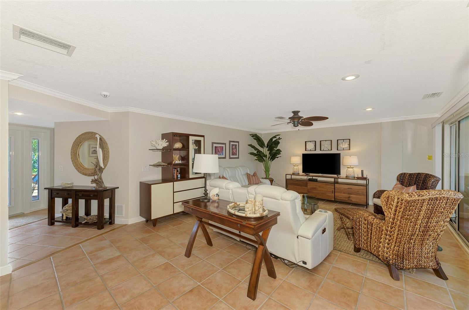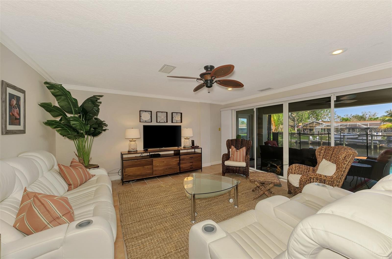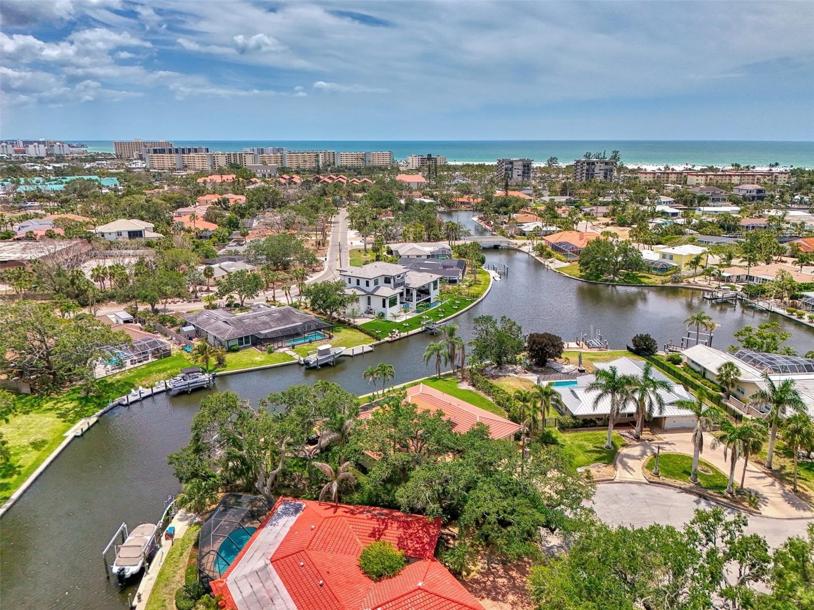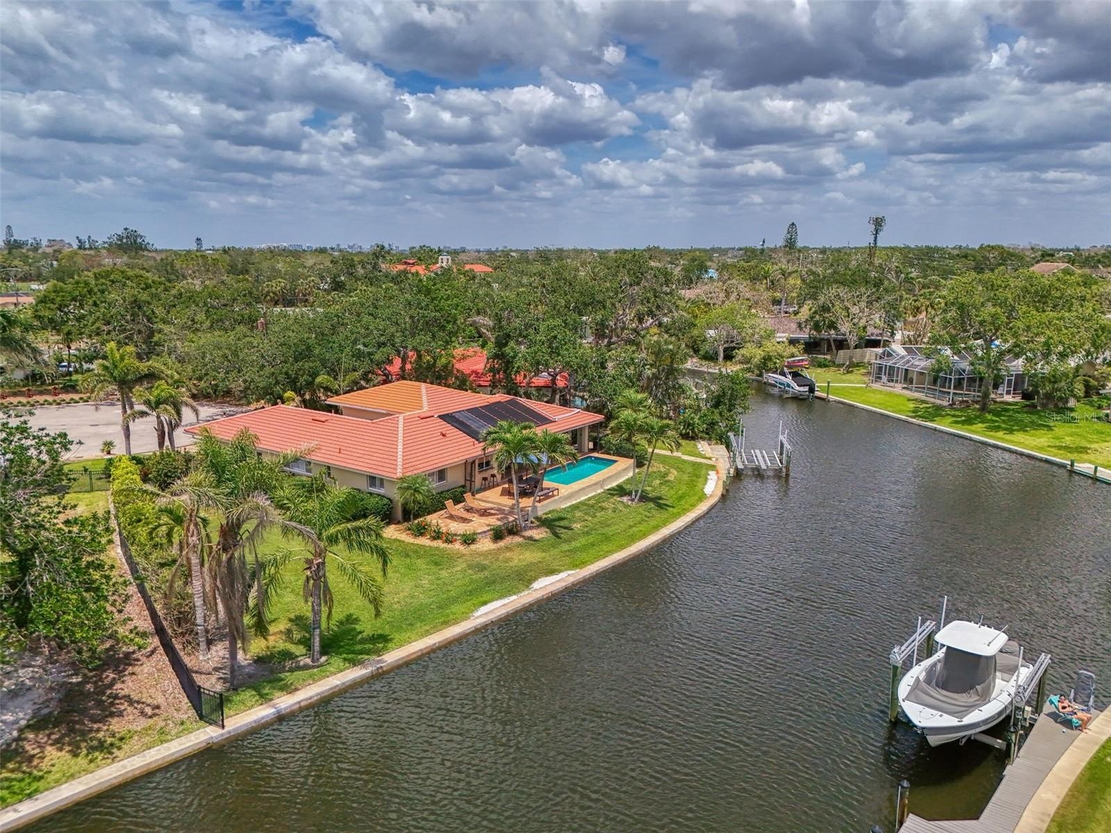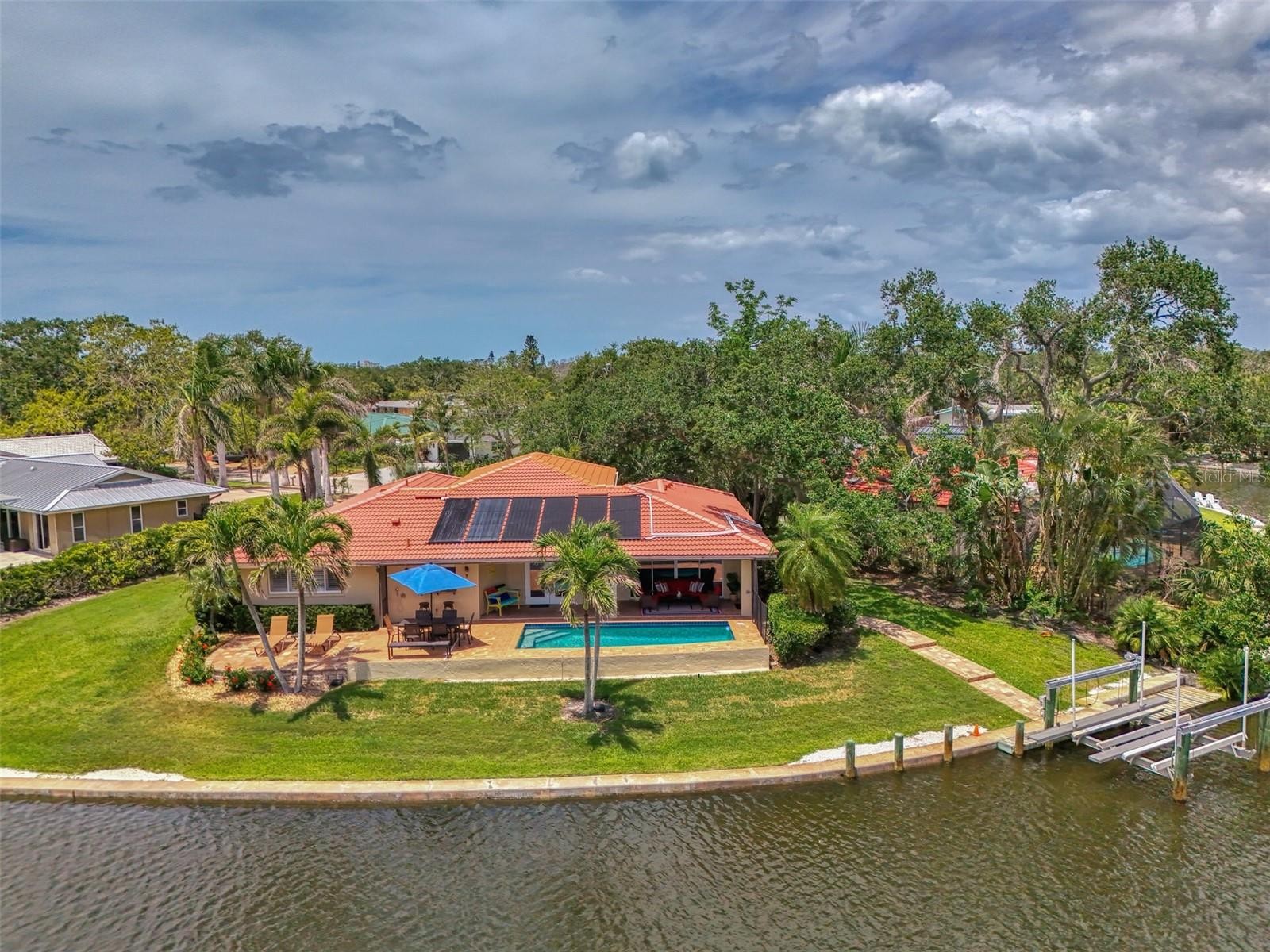 Siesta Key Canal Front Home with 175’ of sea wall on the Grand Canal in the desirable and quaint neighborhood of Siesta Isles. Ride your bike to the Village or the world-famous Siesta Key Beach rated #1 in USA. This beautifully well-kept 3 bedroom, 2 bath Rutenberg built home is located on a quiet cul-de-sac that is a perennial favorite with lush tropical landscaping and great privacy. The home sits high up on almost a 1/3 of an acre. This home was not affected by hurricane damage. Enter thru the charming Spanish style courtyard with its new landscaping, double front doors and wide foyer. Boasting a flowing floor plan with tile floors and crown molding, the living room & dining room open to the custom gourmet kitchen, featuring handsome wood cabinets, granite counters, & tumbled stone backsplash, perfect for entertaining while overlooking the Grand Canal from any window. The master bedroom ensuite with private sitting area is nice to enjoy. A new lanai cage installed July 2025. The lanai area faces southeast . There is a paver sundeck & outdoor dining area along with a covered lanai with rectangular pool, boat lift, dock, and cement seawall. Relax while you enjoy the serene water views and fabulous Florida wildlife, manatee, native birds and many types of fish. You may also enjoy fishing or kayaking from your backyard! Tropical mature foliage in park-like yard. Minutes to the open bay by boat and near Siesta Key Village where you can enjoy shops and restaurants. This truly is Paradise! Isn't this the lifestyle you've been planning? Selling Turn Key! Great Rental Income!