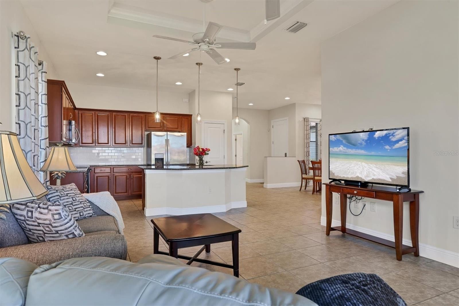 Discover the Charm of the “Medina” Model in Sarasota National. Welcome to this move-in-ready, maintenance-free LAKEFRONT home in the sought-after Sarasota National community. Built in 2016, this beautifully appointed 2-bedroom, 2-bath plus den residence offers a light-filled, open-concept floor plan perfect for both everyday living and entertaining. Step into the heart of the home — a modern kitchen featuring elegant cabinetry, granite countertops, Stainless Steel appliances, and a spacious center island ideal for gathering. HURRICANE RESISTANT WINDOWS AND SLIDING DOORS invite in serene waterfront views while ensuring peace of mind. The cozy den with french glass doors, offers the flexibility to create a private office, reading nook, or guest space but still be a part of the main living areas since it is between the guest bedroom and dining/kitchen areas. Located within an Audubon International Certified Signature Sanctuary, Sarasota National is a nature lover’s paradise with preserved native wetlands and wildlife, including deer, bobcats, a variety of birds, and even the occasional panther or alligator. Enjoy resort-style living with access to premier amenities: Tennis & pickleball courts, Fitness center, Dragonflies Day Spa, Beach-entry resort-style pool with lap lanes and spa, Bocce ball, bike trails & dog park. Enjoy The Palm Club restaurant, bar & lounge to meet new friends, enjoy your family or just take a break from cooking! Whether you're seeking comfort, community, or a connection to nature, this luxury retreat in Sarasota National offers it all. In addition, you are in Wellen Park with a myriad of amenities (restaurants, clothing stores, nail salon, etc.). A little further drive will take you to Venice Beach or Downtown with fabulous restaurants and gorgeous sunsets over the Gulf of Mexico. This is one you will not want to miss! Schedule your showing today before it's too late to live in Paradise!