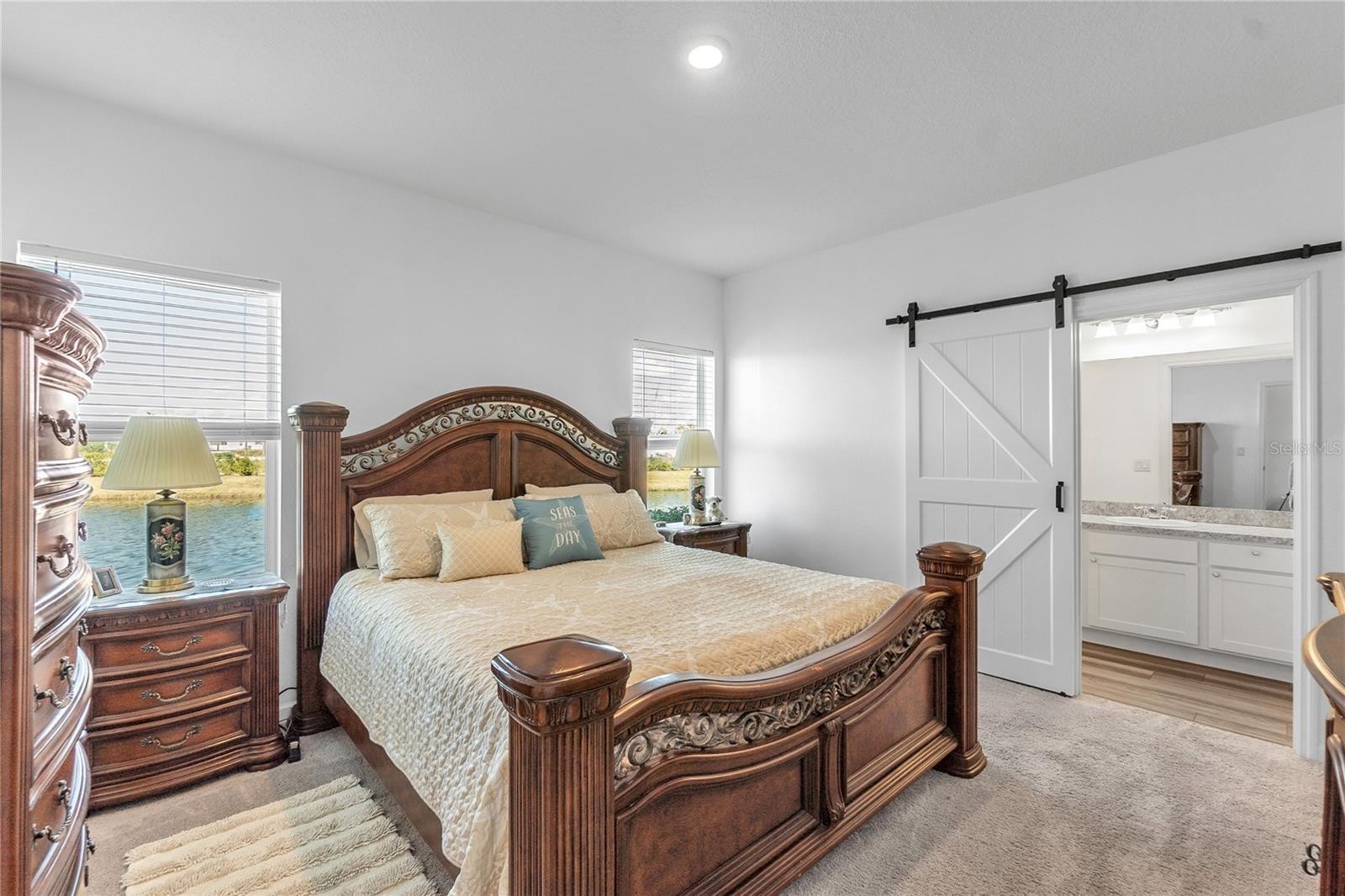 Welcome home to this newly built and absolutely charming 3 bedroom 2 bathroom home in the sought after Summerwoods community of Parrish. This practically brand new home is perfectly sized and an ideal blend of low-maintenance living with a clean contemporary style. Modern comfort meets cozy living in this open floorplan layout. The heart of the home brings everyone together with a family room, kitchen, and dining area combination, creating the perfect space for everyday living and entertaining. Brand new laminate flooring adds a seamless look and durability to the space. The kitchen features granite counter tops, wood cabinetry and stainless steel appliances. Extra shelving has been added to the pantry and closets for additional storage. The primary bedroom, located in the rear of the home is a perfect owner's retreat, featuring a barn door entry to the en-suite bathroom and a large walk-in closet. All bedrooms are generously sized, and all three bedrooms have walk-in closets. Step outside onto your screened in lanai, where you’ll enjoy stunning full water views and daily visits from local wildlife on the expansive pond—Florida living at its finest! This amenity rich community offers low HOA's and convenient access to all that Parrish has to offer. The community features something for everyone with a huge resort style pool, splash pad, walking trails, and playground. Located just minutes from the new Publix at Market Walk, top-rated schools, parks, I-75, and US-301, with convenient access to Lakewood Ranch, Sarasota, Tampa and multiple world renowned beaches.