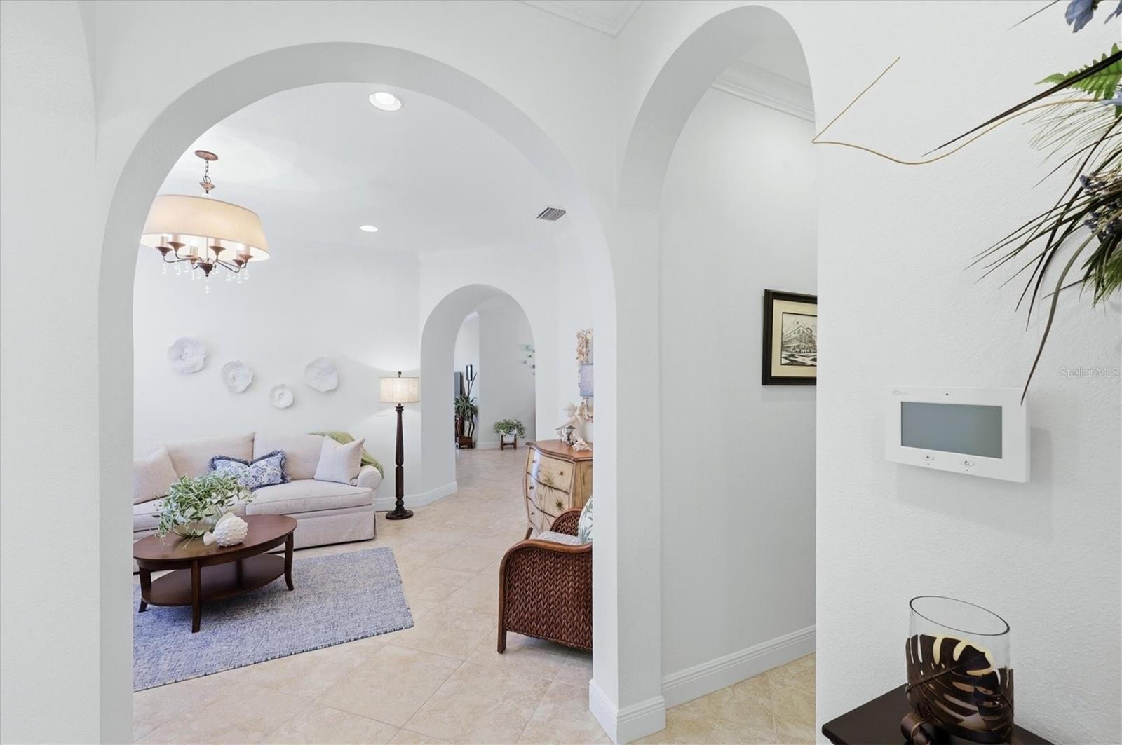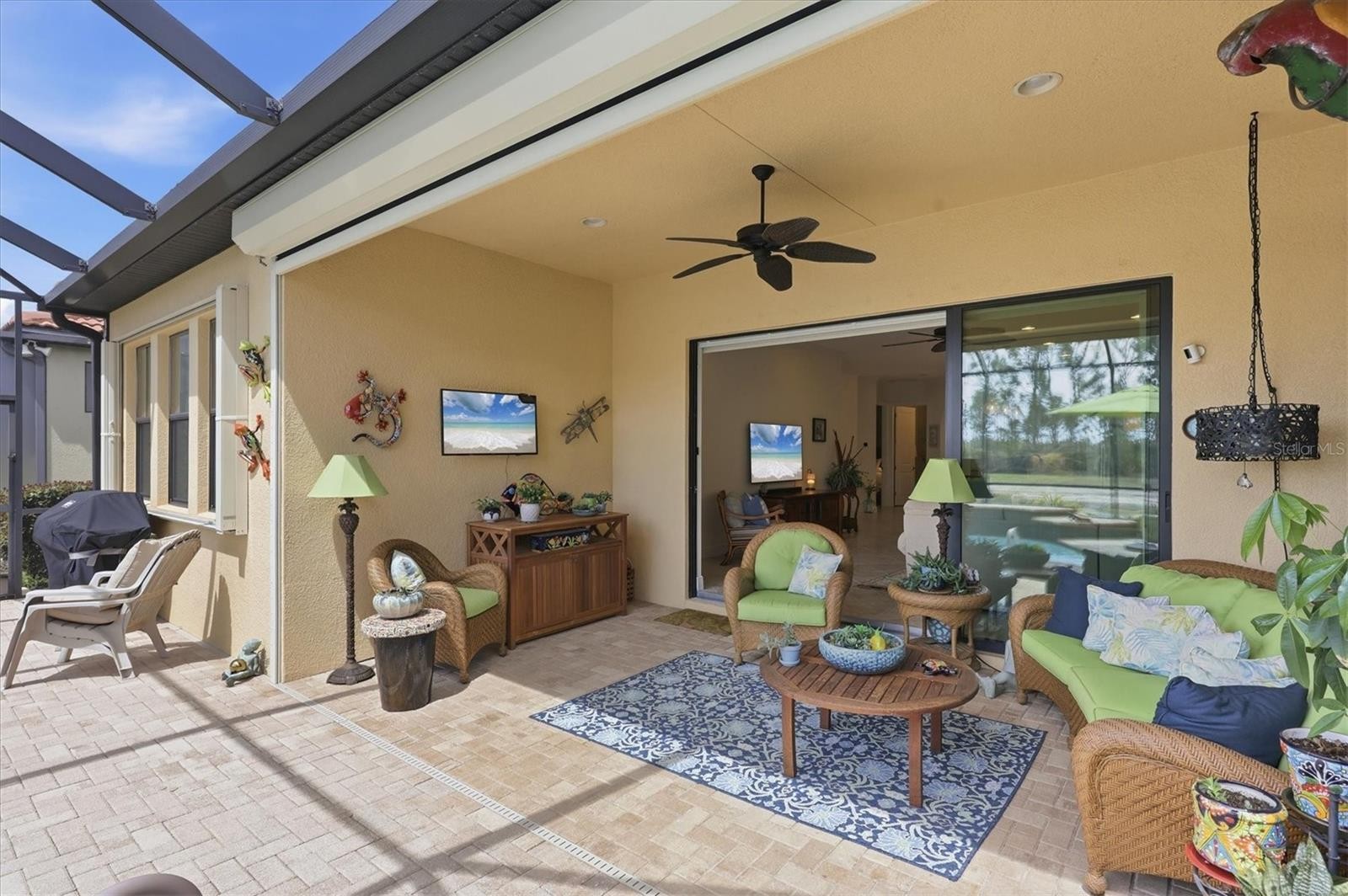 WELCOME to this GORGEOUS home in Sarasota National! This WCI built home is bright and cheery with neutral decor Sitting on a FANTASTIC lot offering PANORAMIC VIEWS of LAKE and PRESERVE and SPECTACULAR SUNSETS! Enjoy the PRIVACY with no homes behind. Your lanai and PRIVATE POOL create a TROPICAL OASIS for casual occasions or entertaining friends. Great curb appeal as you drive up to the home with pavered drive and Tropical Landscaping. Screened in front porch and leaded glass designed front door are highlights. Walk into the foyer which leads to the spacious living room. This flexible space can be used in multiple ways from the current use of living room to office/den/study and everything in between. Through the arched doorway to the heart of the home. The very open great room which combines kitchen, dining, and family room into a functional space of use with elegant designs. BEAUTIFUL kitchen with GRANITE counters, STAINLESS STEEL APPLIANCES, 42 inch white cabinetry, PENDANT LIGHTS, EXTRA RECESSED LIGHTS, AND Center ISLAND with FARMERS SINK. TILE floors throughout the home. PLANTATION SHUTTERS grace all the windows. CROWN MOLDING. Master Bedroom with en suite bath. Dual sinks and Walk in shower with tile to the ceiling, listello, and open glass enclosure. CUSTOM DESIGNED CLOSETS. Guest bed and bath at other end of the home for for everyone's privacy. UPDATED FANS AND FIXTURES throughout the home. Laundry room with cabinets and wash sink. No need to worry about hurricanes. STORM SMART SHUTTERS ON LANAI AND FRONT PORCH. ACCORDION HURRICANE SHUTTERS ON WINDOWS. Come and see this MAGNIFICENT HOME. LIVE YOUR DREAM and FIND YOUR FLORIDA LIFESTYLE. Property is on the NON GOLF side of Sarasota National. NO GOLF FEES OR MEMBERSHIPS REQUIRED. Sarasota National is a VIBRANT AND ACTIVE community with over 1300 acres designated for preservation, conservation, lakes, and open space with amazing views, Proclaimed as an Audubon International Certified Sanctuary, making it the most gorgeous and enjoyable golf course to play at in the area. Offering resort style amenities with huge resort style pool and spa,Tiki Bar to serve refreshing drinks and a bite of lunch, tennis courts, pickle ball, Bocce courts, coffee lounge/library/card room/meeting place, 7000 sq ft fitness facilities offering classes and day spa, and a 30,000 sq ft Clubhouse with dining and spectacular views. 18 Hole championship golf course surrounded by native wetlands and preserves provides an exhilarating and dramatic back drop for your golfing adventure. Minutes away from the new Wellen Park shopping area and Atlanta Braves stadium. Venice Beach and Venice Downtown are just a short drive. Your choice of restaurants and outdoor activities await. DON'T WAIT!! TODAY IS THE DAY YOU FIND YOUR NEW HOME!