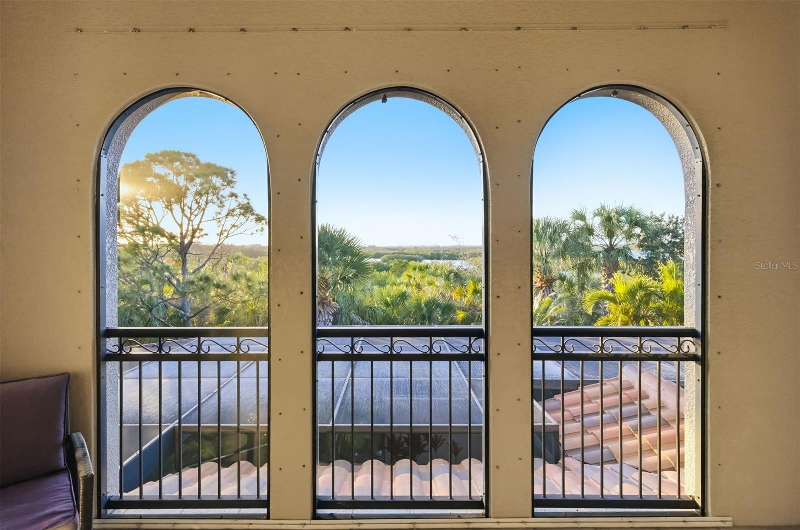 This one-of-a-kind residence in Waterlefe Golf & River Club offers a rare blend of Manatee River vistas and secluded preserve living. Forget the shutters! This gorgeous home just got a major upgrade. With a brand-new roof in 2025 and hurricane impact windows installed, you’re looking at the ultimate "lock and leave" lifestyle. Positioned at the end of a private cul-de-sac, the home was specifically reconfigured to maximize westward-facing sunset views and natural privacy. Inside, artisan woodworking and soaring ceilings define the architectural aesthetic. The layout flows seamlessly from an open-concept kitchen and fireside family room to a dedicated dining area and an expansive pantry with integrated storage. A vaulted bonus room, anchored by a stately chandelier and custom millwork, serves as a refined retreat for hosting, inclusive of French doors that open to one of the home’s three private outdoor escapes. The backyard oasis features a private pool with convenient access to a built-in grill and custom firepit, all framed by lush, undisturbed greenery. Upstairs, newly installed luxury vinyl plank (LVP) flooring leads to a primary suite designed as a viewing gallery for the river. The 35-foot screened balcony provides a quiet sanctuary, combined with an over-the -top primary bathroom - allowing you to escape from the hustle and bustle of daily life - combining to create the perfect vantage point for morning coffee or evening sunsets. Follow the walkway overlooking the lower level to the front of the home which leads to the third bedroom. Featuring French doors and its own private balcony, this space offers elevated views of the saltwater preserve and the 1st and 9th holes of the championship golf course. Waterlefe is more than a home; it's a destination. The renovated River Club serves up resort amenities including a restaurant, fitness center, Tiki bar, and Junior Olympic pool. Intertwined with Waterlefe Golf Club - host of the US Open Local qualifier an unprecedented 8 times! Discover why this "one-of-one" floor plan is the hallmark of the #lefelife.. Taxes include the CDD.