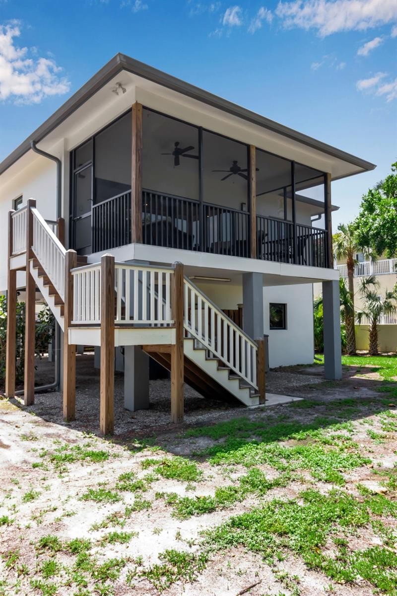 This exceptional 2 bedroom, 2 bath home offers unparalleled energy efficiency and durability. Built by a builder for himself, its construction is above typical standards. With impact resistant windows and doors, and raised well above the flood zone, it sustained no damage during recent hurricanes. OFFERED FURNISHED and ready for immediate occupancy, this home provides a perfect blend of modern features and coastal charm. Whether you're seeking a full-time residence, a vacation retreat, or a rental opportunity, this property meets your needs. Adding to the incredible potential, it is zoned multifamily, allowing for another structure to be added to the property. The open floor plan is thoughtfully designed with luxury vinyl plank flooring throughout. Sliding glass doors in the living room lead to a spacious screened porch, perfect for enjoying coastal breezes. The kitchen, with ceiling fan and breakfast bar, features quartz countertops, stainless steel appliances, and a large pantry. The master suite has a large walk-in closet and an en suite bathroom with dual sinks with quartz countertops, a water closet, and a big walk-in shower. The second bedroom features a spacious closet, and the second bathroom has quartz countertops and a tub-shower combination. Just two blocks from Nokomis Beach, this property is ideally situated near a variety of amenities; restaurants, beach shops, ice cream parlors, and bait shops are all within walking distance. North Jetty Beach Park, with direct access to the Gulf of Mexico, is less than one mile from the property. Covered parking underneath accommodates two vehicles, and a large parking area provides room for a boat, camper, or other vehicles. There is a large concrete storage room that could be air conditioned. An outdoor shower is perfect for rinsing after a day at the beach or on the water. This home is a rare find, combining resilience, energy efficiency, and proximity to some of Florida's most beautiful beaches. Don’t miss your chance to own a piece of paradise in Nokomis!