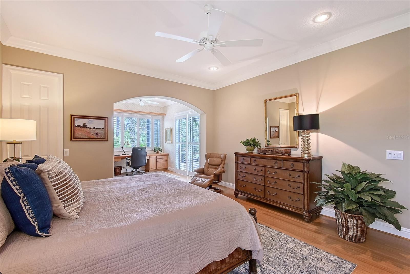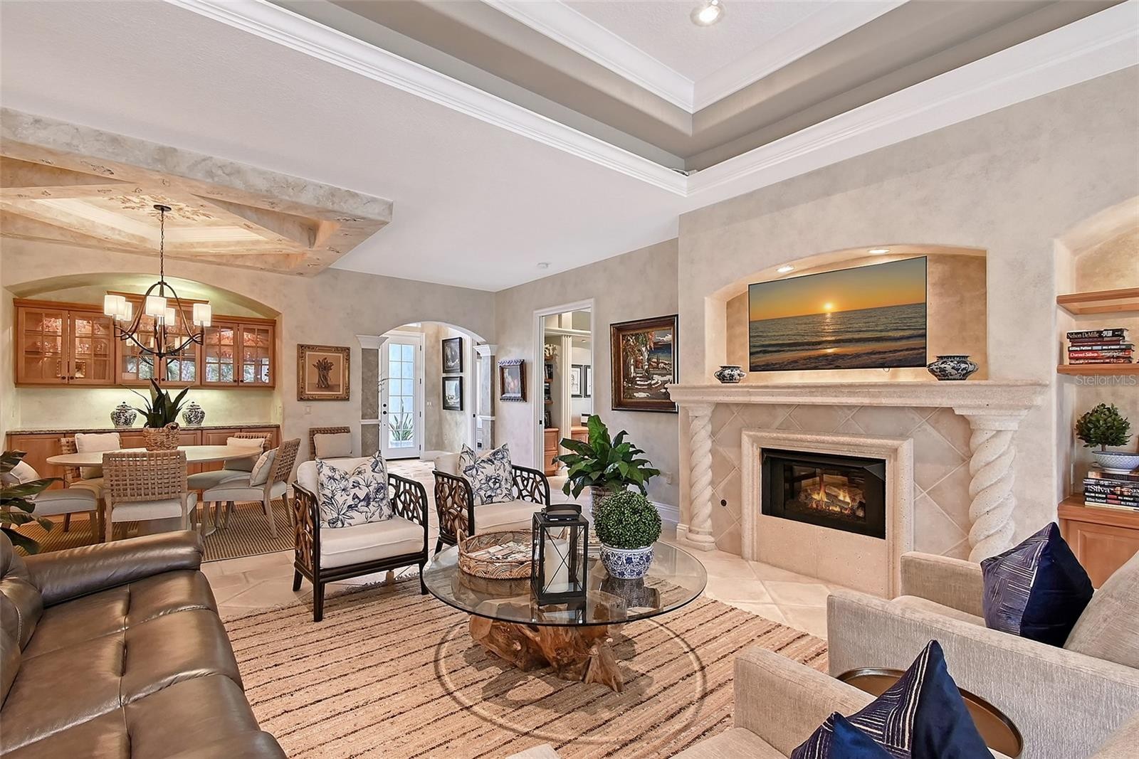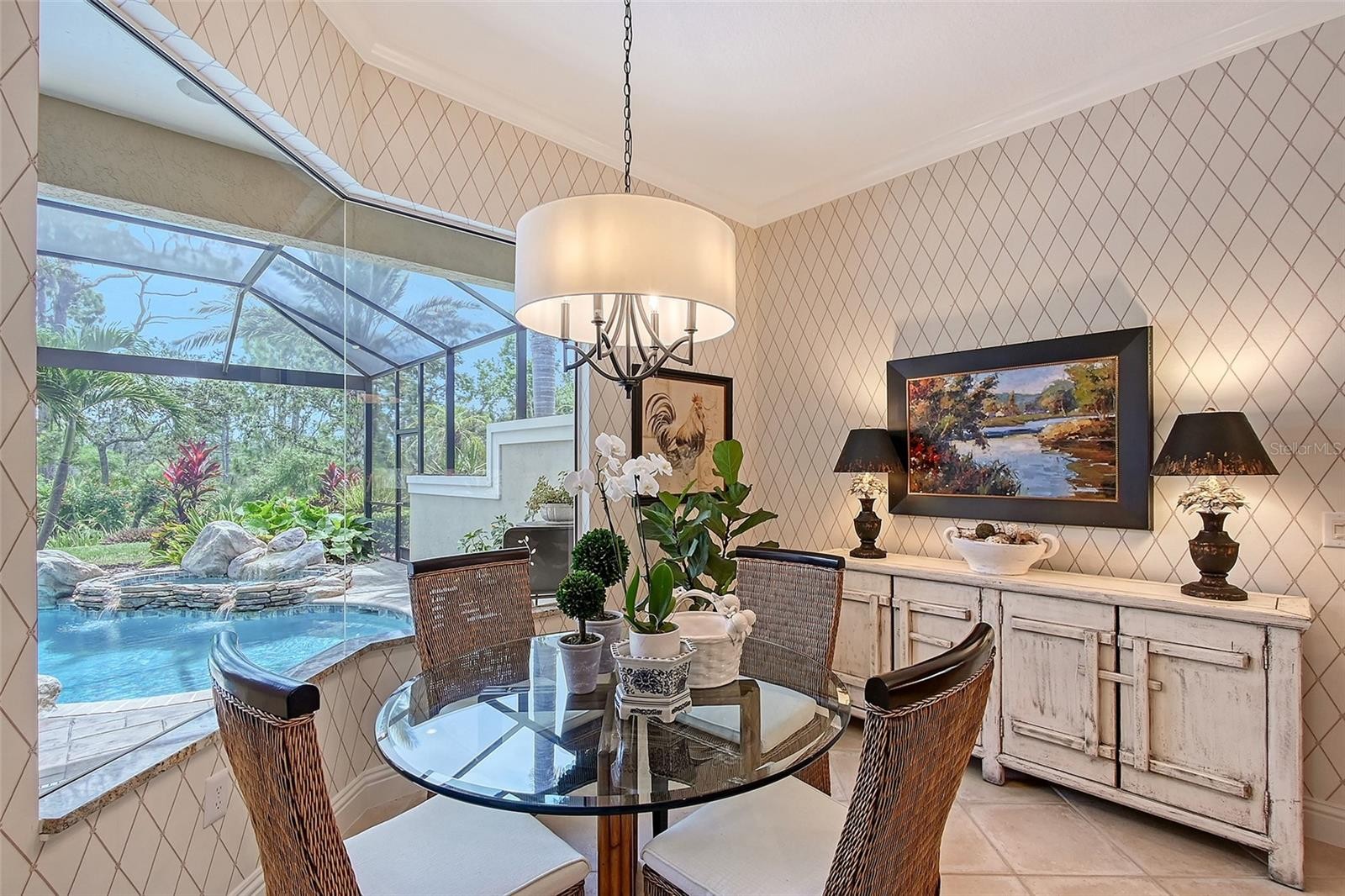 Welcome to Emerald Woods, a desired cul-de-sac within The Oaks Preserve, and this private Lee Wetherington custom home that will check all the boxes, and more. Situated on one of the largest lots and surrounded by preserve for privacy, you’ll find essence and elegance as the color palette interplays with natural light, and the southern facing lanai and pool will be where you can enjoy the maintenance free lifestyle, and the quality of life second to none. Enter the foyer through 8’ insulated front doors with impact glass, and 12’ high ceilings with wide decorative crown molding. Designer exceptional interior and exterior details and finishes are completed and tastefully appointed. The kitchen offers custom 42” wood upper cabinetry with over and under cabinet lighting, granite countertops, a decorative tile backsplash, center island with base cabinetry, a pantry with rollout shelving, stainless appliances (2023), and a seamless glass aquarium window in the breakfast nook. The great room has 17” stone tile flooring, custom built-in cabinetry and a custom designed stone fireplace with electric logs. The open floor plan dining room has a hand painted tray ceiling, and a built in buffet with a granite top and 42” upper cabinets with glass inserts. A fantastic escape awaits when you walk out your sliding glass doors to the outdoor oasis that includes a newly resurfaced custom designed pool and spa with a waterfall feature and a new pool screen and cage with a panoramic view maximizing the enjoyment of the outdoor space. A dry bar/buffet makes entertaining outdoors so easy. The primary suite offers an extended office/owner’s retreat with a custom designed built in desk and cabinetry, handsome bamboo wood floors, two large walk-in closets with built-ins, a primary bath with new vanities, undermount sinks, and designer brass and chrome fixtures. The second light and bright guest suite has wood floors, a bay window with plantation shutters and an ensuite custom designed bath. Additional special features include a new roof (2023) new landscaping and sod, a paver brick driveway, and an oversized 2 car garage with tandem parking for a 3rd car and tons of storage and cabinetry. Experience the best in this move in ready home, and begin your lifestyle at The Oaks Country Club, with the best location in Sarasota County. Centrally located to all the beautiful beaches and offering two 18 hole championship golf courses, tennis, pickleball, croquet, fitness center, dining, and a wide variety of social options. The Oaks is a Platinum Club of America, an Elite Distinguished Club of The World, and best of all there is no waitlist for a golf or social membership! Don't wait to begin your terrific and exceptional lifestyle!
