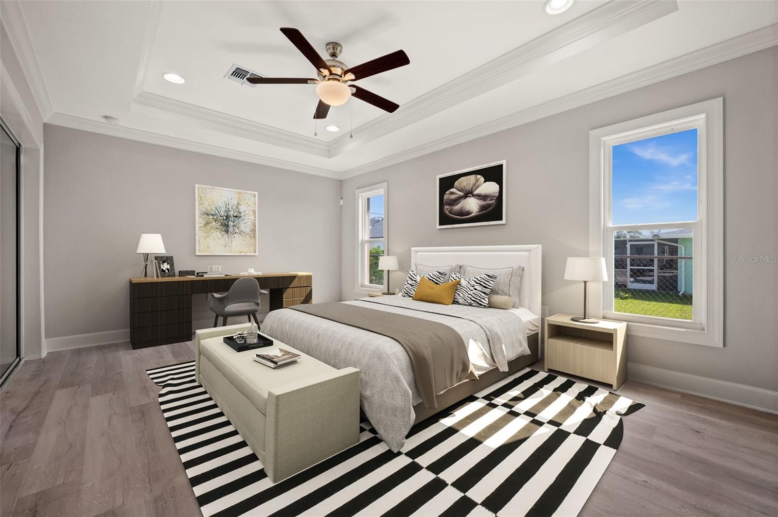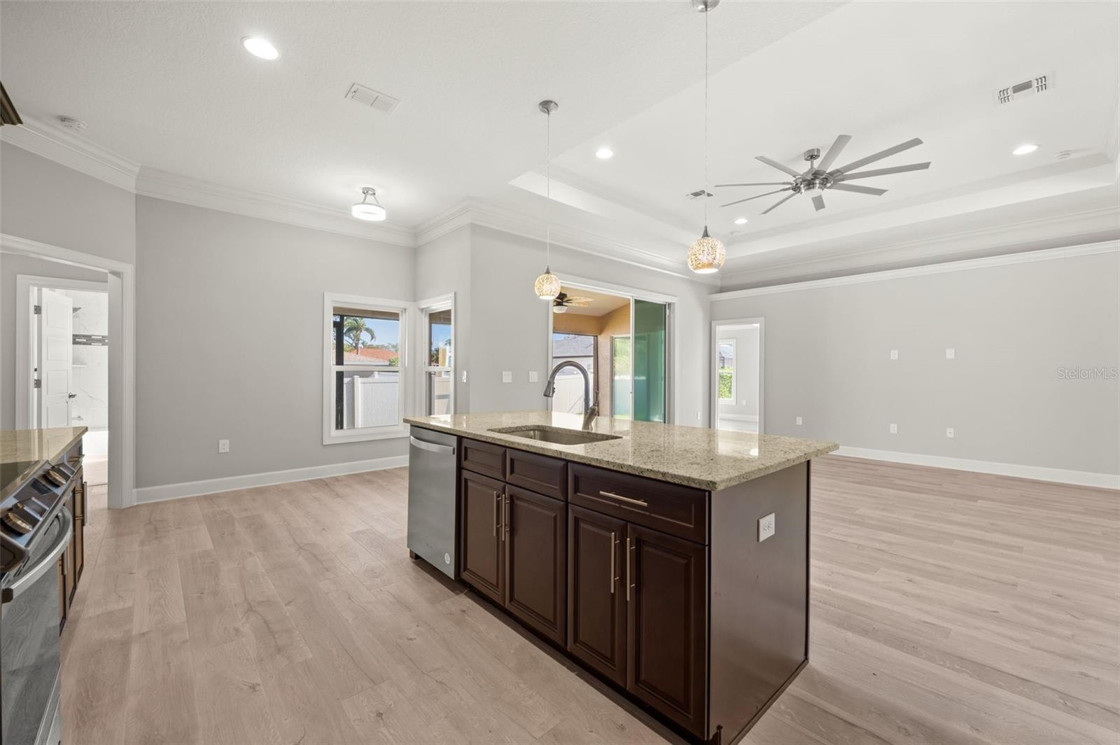One or more photo(s) has been virtually staged. Welcome to this beautifully crafted 2022 new construction home in desirable South Venice, offering 3 bedrooms, 2 bathrooms and 1,840 sq ft of thoughtfully designed living space—with NO HOA and NO CDD fees. Ideally located between Manasota Beach and Venice Beach, this property also provides access to the private South Venice Beach ferry and is just minutes from Legacy Trail and Shamrock Park. This move-in ready home features an open-concept floor plan that seamlessly blends the family room, dining area, breakfast nook and kitchen—perfect for both entertaining and everyday living. The kitchen is equipped with stainless steel appliances, granite countertops, a pantry and an oversized breakfast bar. Elegant interior details include tray ceilings, crown molding and decorative high baseboards in the dining area. Enjoy engineered wood and tile flooring throughout and a split-bedroom layout that provides added privacy. The spacious primary suite offers a large walk-in closet and an en-suite bath complete with dual vanities, a soaking tub, a walk-in shower with glass doors and a linen closet. Additional highlights include a screened-in lanai, separate laundry room with utility sink and a two-car garage. The home is equipped with a new well featuring a softener and purification system, new septic system, sprinkler system, gutters with downspouts and hurricane shutters. The roof is built with 30-year mildew-resistant shingles. Don’t miss this opportunity to own a modern, well-appointed home in a prime South Venice location—schedule your showing today!