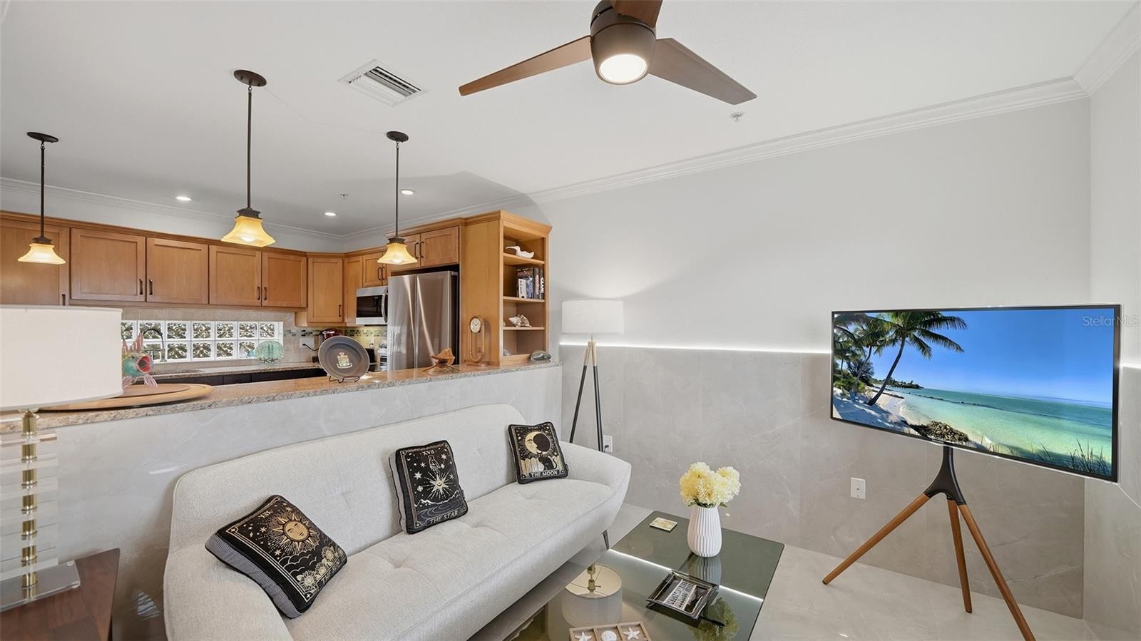 Experience the best of island living in this beautifully renovated 2 bedroom, 2 bathroom villa on Longboat Key. Perfectly positioned on a coveted GULF TO BAY PROPERTY, this residence offers the rare combination of DEEP WATER MARINA access and a PRIVATE DEEDED BEACH, all in the heart of the island 4 mins from Bay Isles Publix shopping center and 14 mins to St. Armands Cir. Completely renovated in 2025, this turnkey FURNISHED villa showcases quality finishes throughout. The kitchen features brand new stainless steel appliances, granite countertops, new cabinetry, and modern fixtures, complemented by new paint, ceiling fans, solid interior doors, and updated hardware throughout the home. Both bathrooms have been fully updated with new vanities and finishes. Large scale porcelain tile flows seamlessly through the home and continues up the walls, installed over cement board rather than sheetrock and treated with Red Gard waterproofing for durability and peace of mind. HURRICANE IMPACT windows and exterior sliding doors provide added security and energy efficiency. The spacious primary suite offers a walk in closet with washer and dryer hookups. Two outdoor living spaces enhance the island lifestyle, including a peaceful rear terrace ideal for morning coffee and a generous front patio designed for entertaining. The front patio features electrically RETRACTABLE AWNINGS and LED lighting, with luxurious pavers leading directly to the deep water marina. Residents enjoy access to newer docks accommodating vessels up to 29 feet, available on a first come, first served basis with annual fees ranging from approximately $400 to $600. On site fish-cleaning station makes it easy to enjoy living on the water after a day of fishing. An additional assigned parking spot can be leased for $180/yr. The community also offers 250 feet of private deeded beach on the Gulf side, allowing for breathtaking sunrises and sunsets with frequent dolphin and manatee sightings. Amenities include a saltwater heated pool and a recreational clubhouse overlooking Sarasota Bay, known for its welcoming atmosphere with frequent gatherings, games, potlucks, and social events. Low association fees cover roof maintenance, pest control, pool, water, sewer, and grounds maintenance, with no pending assessments. Just a block away, the adjacent Bayfront Park offers pickleball and tennis courts, a playground, a public kayak launch, and additional recreational facilities. This is a 55+ community. No pets allowed. Two year ownership required prior to leasing. A rare opportunity to own a fully renovated, move in ready villa offering both boating and beach access on Longboat Key.