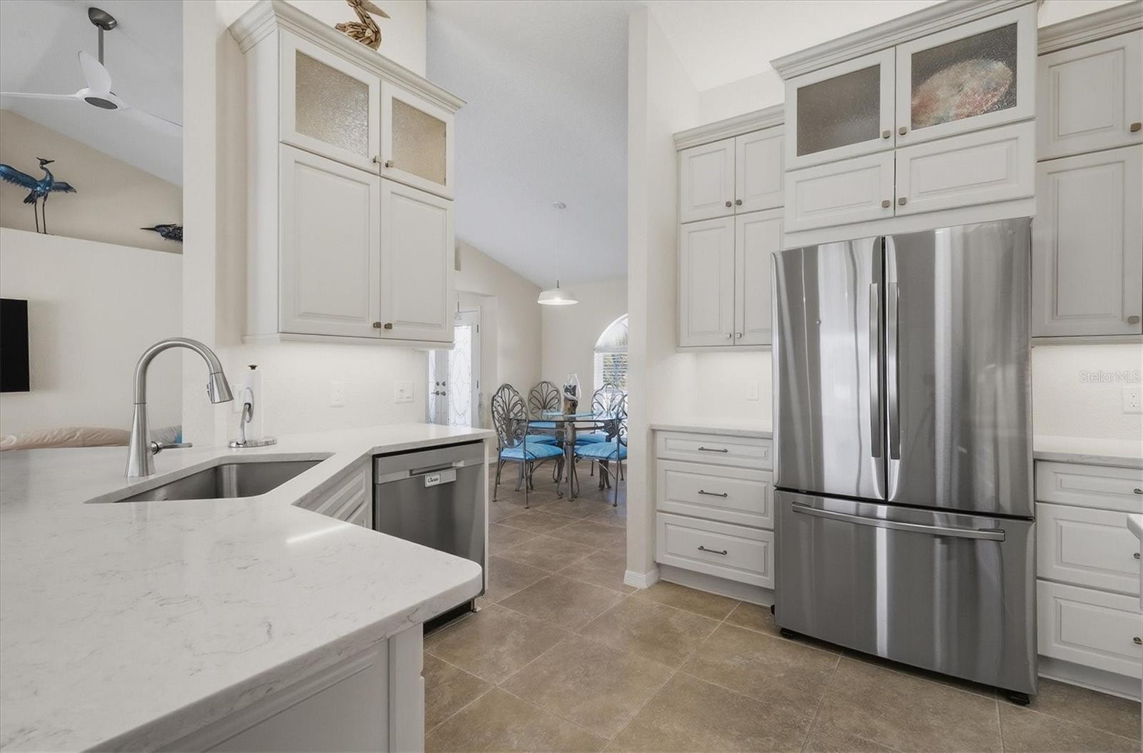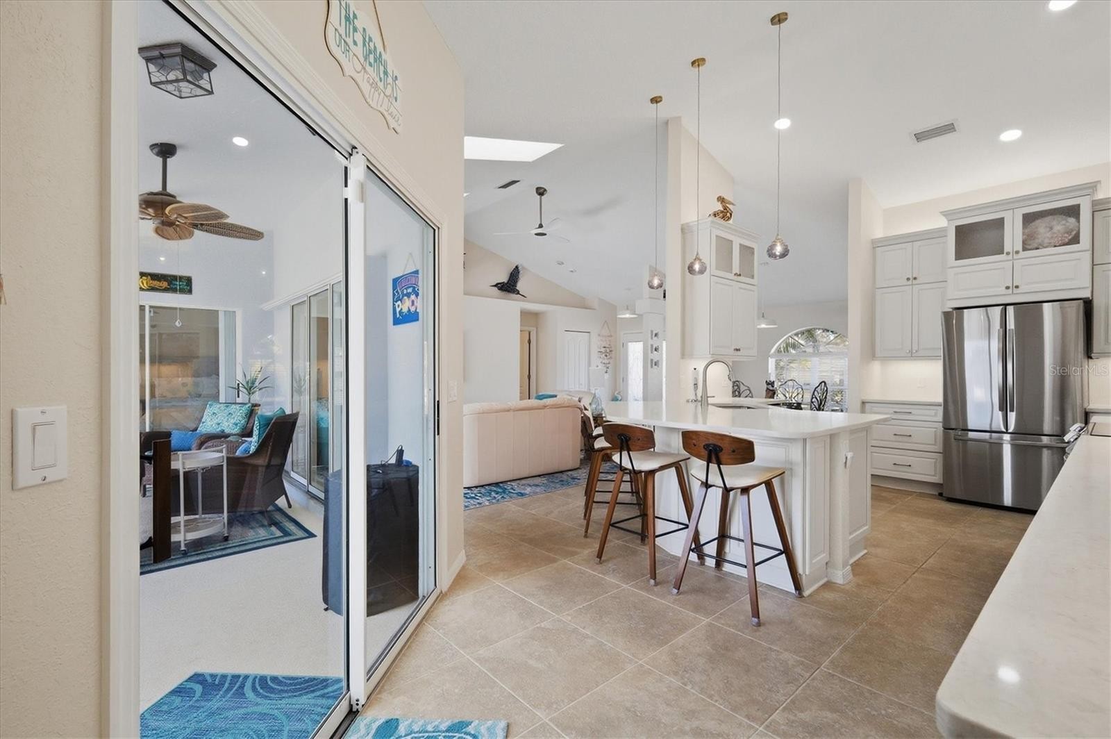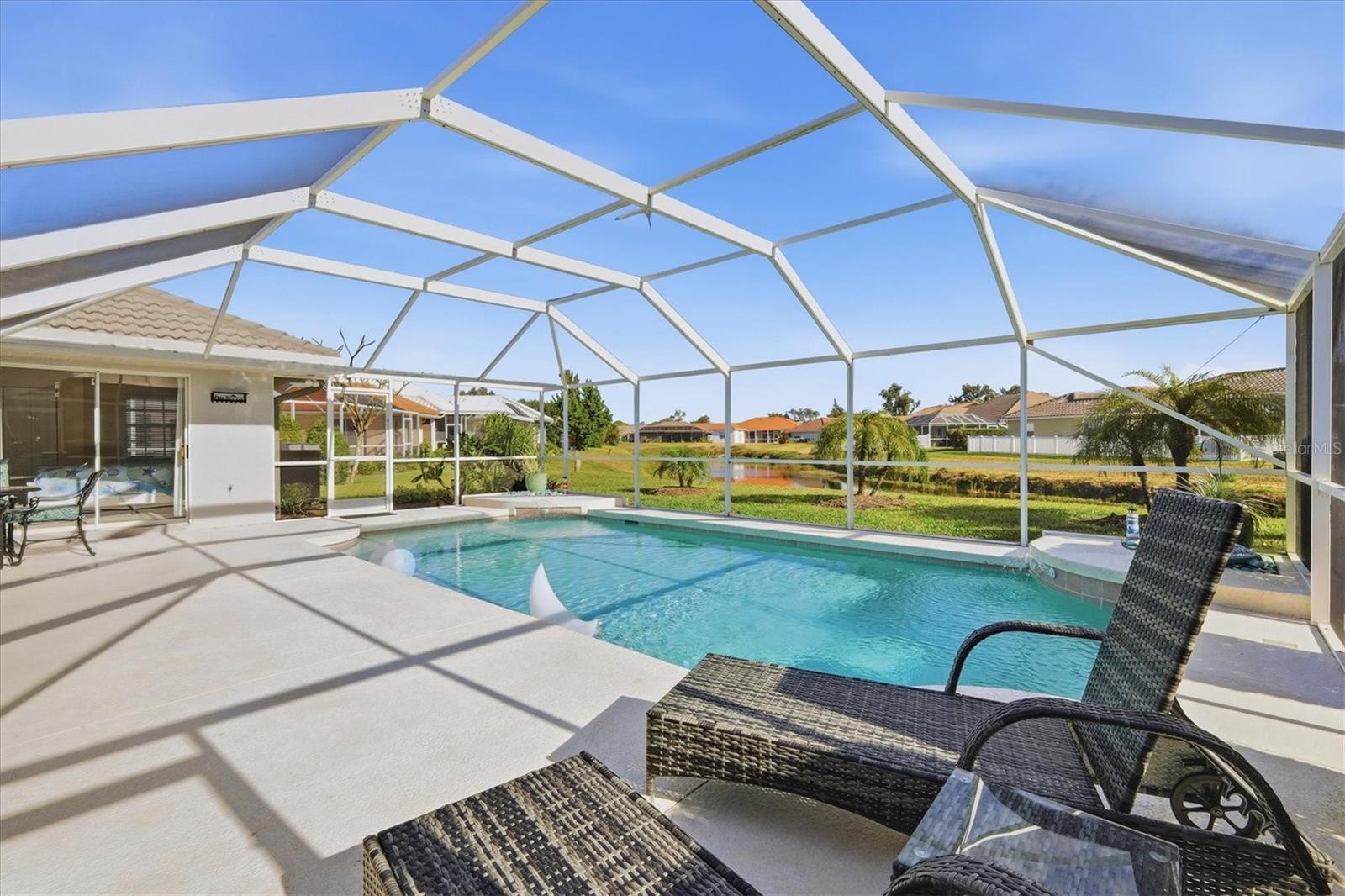 Turnkey and move-in ready! Discover this beautifully updated 3 bed, 2 bath, heated, salt water pool home in the very desirable Laurel Woodlands community. Enjoy the spectacular gourmet kitchen renovation featuring cathedral-height custom solid wood cabinets with under lighting, in cabinet lighting on glass fronted cabinets, sparkling quartz countertops, stainless appliances and exhaust hood, a true cook's kitchen. Adjacent on one end is the cozy breakfast nook and on the other is the dining room. Open to the kitchen bar is the spacious living room with vaulted ceiling and skylights which flood the house with warm natural light. Sliders from the living area and two bedrooms open to the spacious lanai and screened in pool area which overlooks the neighborhood pond, perfect for birdwatching. The large primary bedroom has two closets, a roomy bath, skylight, dual sinks and walk in shower. The two guest rooms on the opposite side of the home offers privacy for all. Meticulously maintained with newer systems: 2020 Trane AC, 2025 pool pump, 2021 pool heater, 2012 roof, 2024 Rainbird irrigation controller and well pump and a 2025 washer and dryer. If awards were given for maintenance, this house would win the prize! Conveniently located to schools, shopping, Nokomis Beach, Oscar Scherer State Park and the Legacy Trail. Make this neighborhood gem your personal slice of paradise. Call to schedule your own private showing.