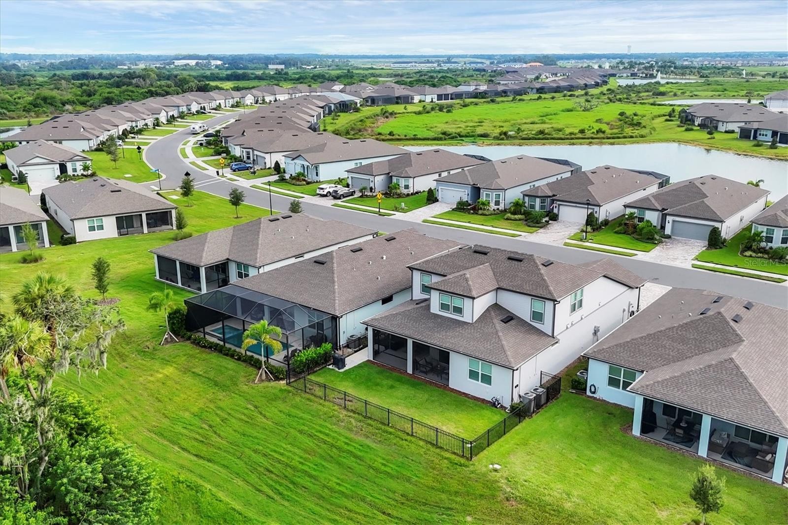 Welcome to your dream home in Del Webb, Parrish’s premier 55+ community! This stunning Mystique Grand model offers 3 bedrooms, 3 bathrooms, and 2,867 sq. ft. of beautifully designed living space. Lightly lived in and meticulously maintained, this home feels like new and is loaded with thoughtful upgrades. Step inside to find luxury vinyl plank flooring throughout the first floor, custom plantation shutters, and upgraded fans and lighting in every room. The open-concept layout flows seamlessly into the chef-ready gourmet kitchen and spacious living areas, perfect for both entertaining and everyday comfort. Enjoy the privacy of being the only fenced home in Del Webb, backing to a quiet, unbuildable preserve for serene views and no rear neighbors. Outdoor living is made easy with a concrete lanai pad and widened driveway, plus the home is pre-wired for a generator, outdoor kitchen, and pool — giving you endless options to customize your oasis. Home was built with an oversized 3-car tandem garage. Additional features include a whole-home water softener and overhead garage storage, maximizing convenience and comfort. Del Webb Parrish offers world-class amenities, including multiple resort-style pools, included a shaded pool, jacuzzi, fitness center, clubhouse, pickleball/bocce/ & tennis courts. The community's lively calendar of activities appeals to every interest.