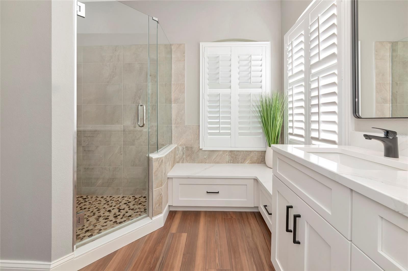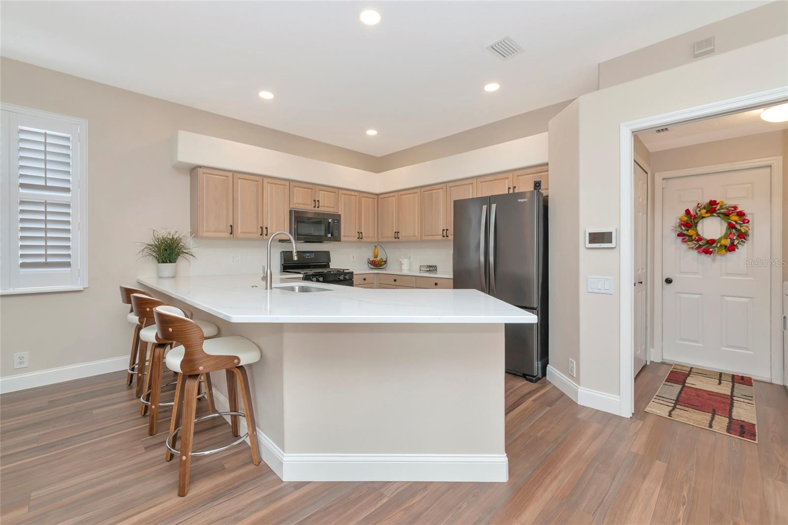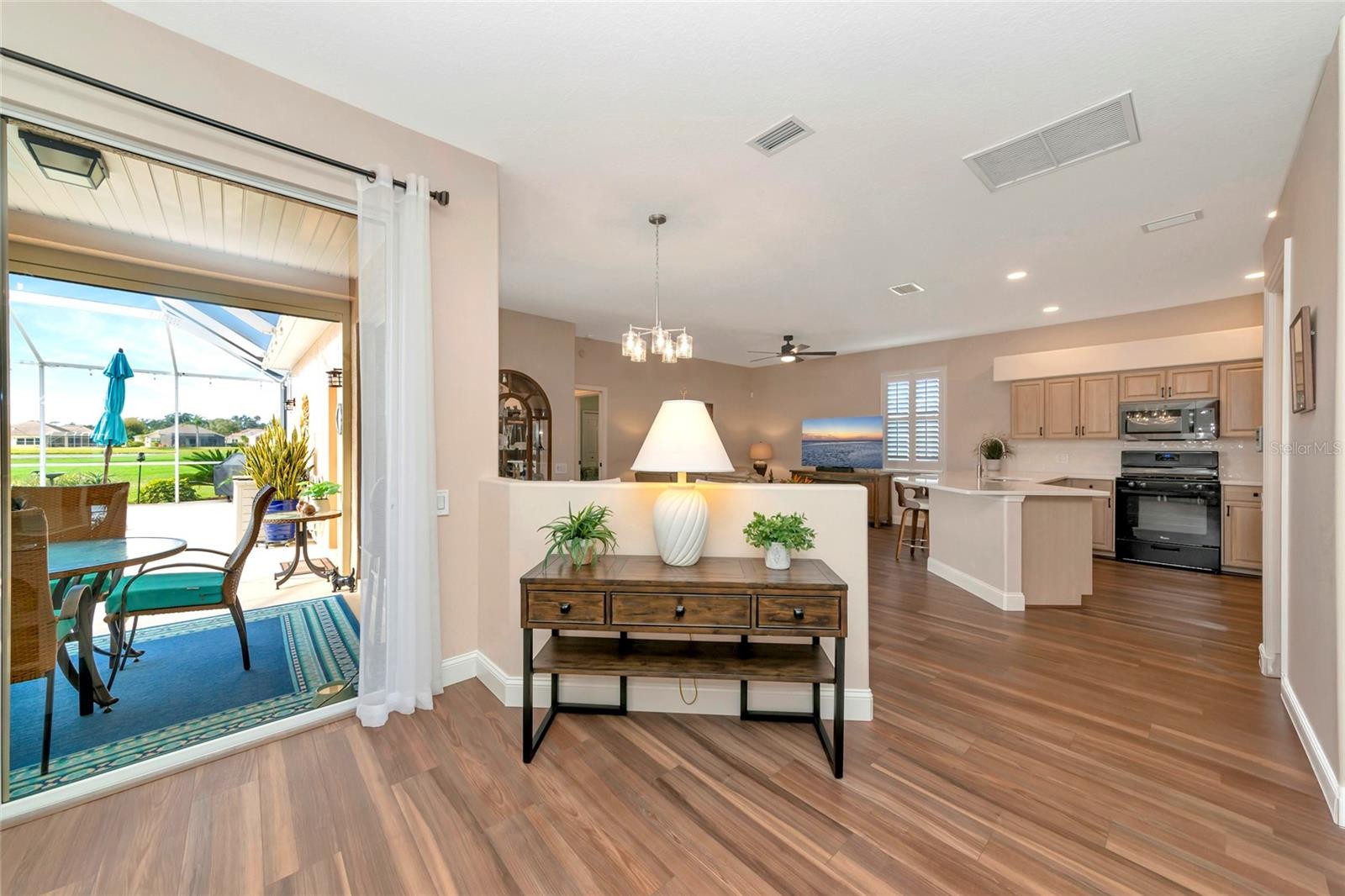Yearly HOA Fee is $510. NO CDD Fees! Welcome home to the beautiful Golf Community of Greenfield Plantation. You won’t want to miss this Meticulously cared for 3 BEDROOM plus DEN, 2 BATH POOL home overlooking the Links at Greenfield Plantation Golf Course and Community Pond. The view is the best of both worlds! The seller has most recently added over $130,000 in Upgrades and Enhancements to this beautiful property, some of which include a Full Kitchen Remodel with New Quartz Countertops, New Cabinetry, Fixtures, Lighting and appliances; a Fully Remodeled Primary Suite Bathroom with a large Walk-in Shower, Quartz Countertops, New Cabinetry, Fixtures and Lighting; Luxury Vinyl Flooring in main areas and New Carpeting in the Bedrooms; Freshly Painted Interior and Exterior; Plantation Shutters; Pool Resurfacing and Tile with New Pool Heater and Pump; New Roof; New Landscaping; Gutters; Upgraded Electrical and 3 Hurricane Shield Lanai Screens. When you enter this home, you will feel like you are walking into a brand new home! The 3 sliders leading from the Living Room, Dining Room and Primary Suite all enter into the spacious screened-in Lanai Pool area. The home is equipped with Clear, Light Weight Exterior Hurricane Shutters which are easy to install and display a clear view of outside during any increment weather. The Links at Greenfield Plantation is a public pay-to-play 18 hole championship golf course which includes a driving range and bar and grill. Membership is optional or pay as you go, making it easy for you and your guests to enjoy! Top-Rated schools are in close proximity along with shopping, restaurants, and the new Marketplace at Heritage Harbour featuring Costco, Target, Hobby Lobby, Restaurants with more to come! Easy access to I-75 and I-275 makes commuting convenient with quick access to Sarasota/Bradenton Airport, Lakewood Ranch, Downtown Bradenton, Sarasota, the exquisite Beaches of Anna Maria Island, the famous Siesta Key Beach, shopping, entertainment, medical facilities and so much more!