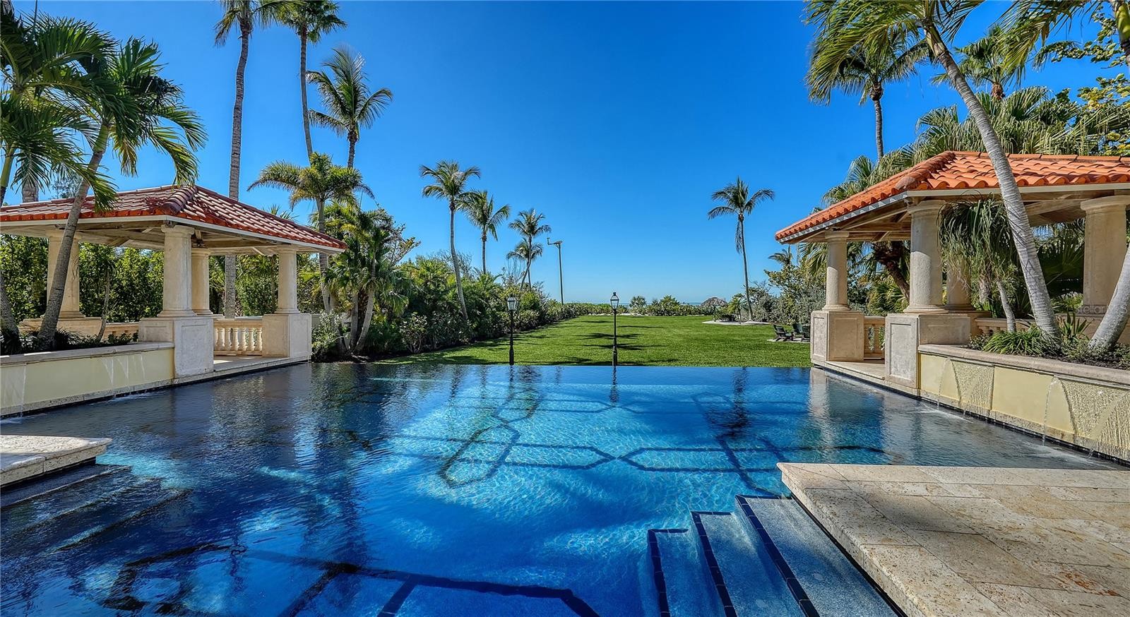 Positioned on the pristine shores of Sarasota’s Lido Key, 1067 Westway Drive presents a truly rare Gulf-front offering—defined by scale, privacy and irreplaceable land value. With over 100 feet of private, direct beachfront, this estate occupies one of the most coveted and increasingly scarce stretches of shoreline on Florida’s West Coast. Parcels of this size are rarely found, positioning this property as both a refined coastal retreat and a generational asset. Designed to embrace its extraordinary setting, the residence unfolds with light-filled interiors, grand architectural moments and uninterrupted turquoise Gulf views from nearly every living space. A dramatic atrium entry and marble staircase lead to expansive rooms where soaring ceilings, bespoke detailing and walls of glass blur the line between indoors and out. The welcoming great room opens effortlessly into an expansive beachfront terrace - offering front-row views of endless sunsets over the Gulf of Mexico. The home is equally suited for elegant entertaining and relaxed coastal living, featuring a sophisticated bar and lounge with a custom glass wine room, a gourmet chef’s kitchen with premium appliances and multiple dining spaces outlined by panoramic water views. Savor resort-style outdoor living - and soak up the sun with unlimited boating, water sports and beachcombing. Experience the lush, tropical landscaping, infinity-edge pool overlooking the Gulf, and multiple rooftop terraces - culminating in a spectacular rooftop entertaining level with sweeping sunrise-to-sunset vistas spanning Sarasota Bay, downtown and the Gulf beyond. The primary suite is a dedicated sanctuary with its own beach-front terrace, spa-inspired bath, boutique-style dressing room and fitness space. Artfully designed for both the owner’s privacy as well as those who visit – the five guest suites are thoughtfully appointed as intimate retreats. And while famous St. Armands’s Circle and vibrant downtown Sarasota is merely minutes away for dining and shopping – there’s no need to leave the grounds when you have a private theater, 2 executive offices, fitness room, family and game rooms, bunk room and multiple rooftop decks for lounging and entertaining. Offering exceptional Gulf of Mexico frontage, uncompromising privacy and a world-class beachfront lifestyle, 1067 Westway Drive stands among the most significant residential offerings on Florida’s Gulf Coast—an estate where luxury, location and legacy converge. (Two adjoining parcels are available to design one of the most private retreats in South Florida.)
